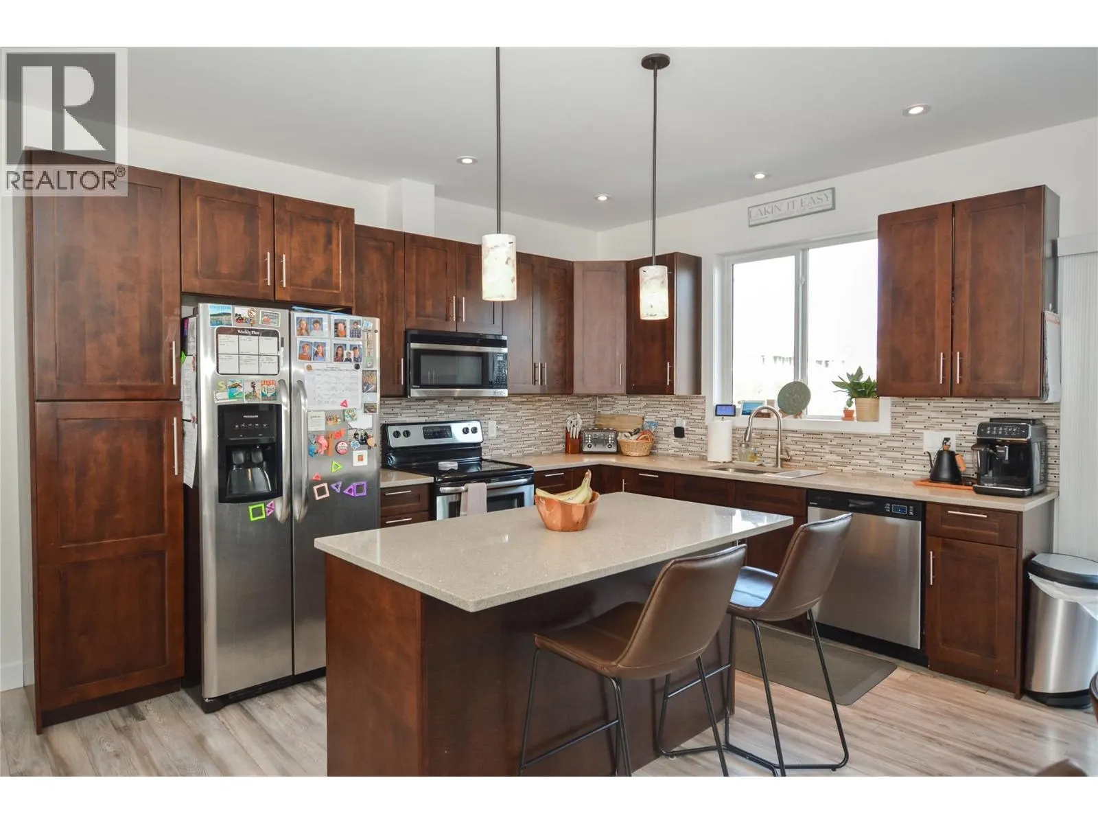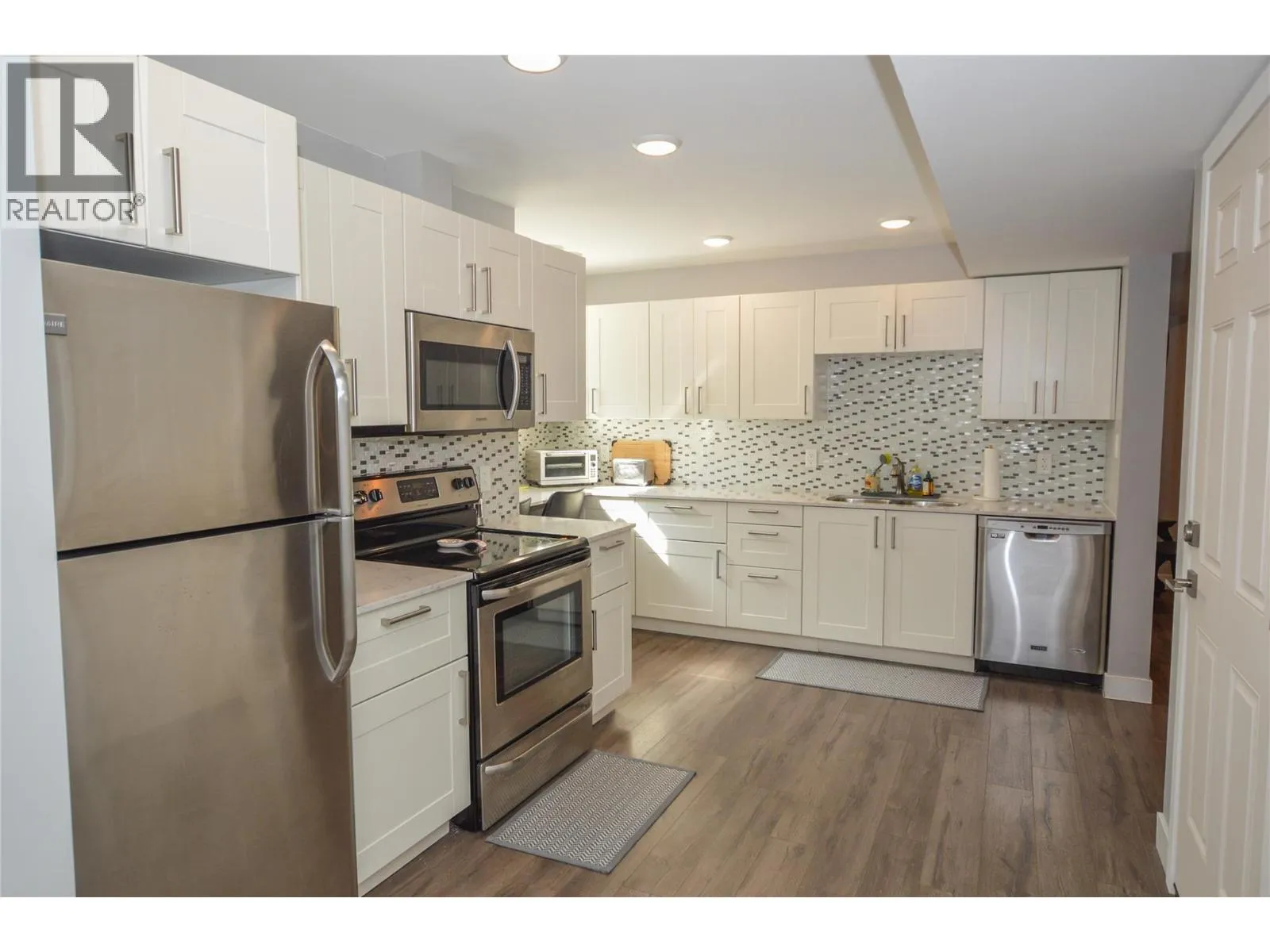 Modern comfort with investment potential in the heart of Summerland. This 2015-built home features a level-entry 3-bedroom, 2-bath rancher upstairs plus a bright, fully self-contained 1-bedroom legal suite down. The main level offers an open-concept design with a welcoming living room, fireplace, and spacious kitchen with island. This is an ideal layout for young families with three bedrooms on the same level. Rec-room below offers additional space for the kids to play. A large utility room provides excellent storage. Downstairs, the suite includes its own modern kitchen, living area, bedroom, bath, and laundry - perfect for extended family or reliable rental income. This space can remain connected to the main home or locked off with its own private exterior entrance. Set on a landscaped corner lot with fenced yard, deck, and patio, the property combines outdoor living with easy-care maintenance. A single attached garage, additional side-yard parking, and garden storage add convenience. Just steps to downtown shops, schools, and amenities, this home offers flexibility for investors, families, or anyone seeking a mortgage helper. Shows beautifully and is move-in ready. (id:27476)