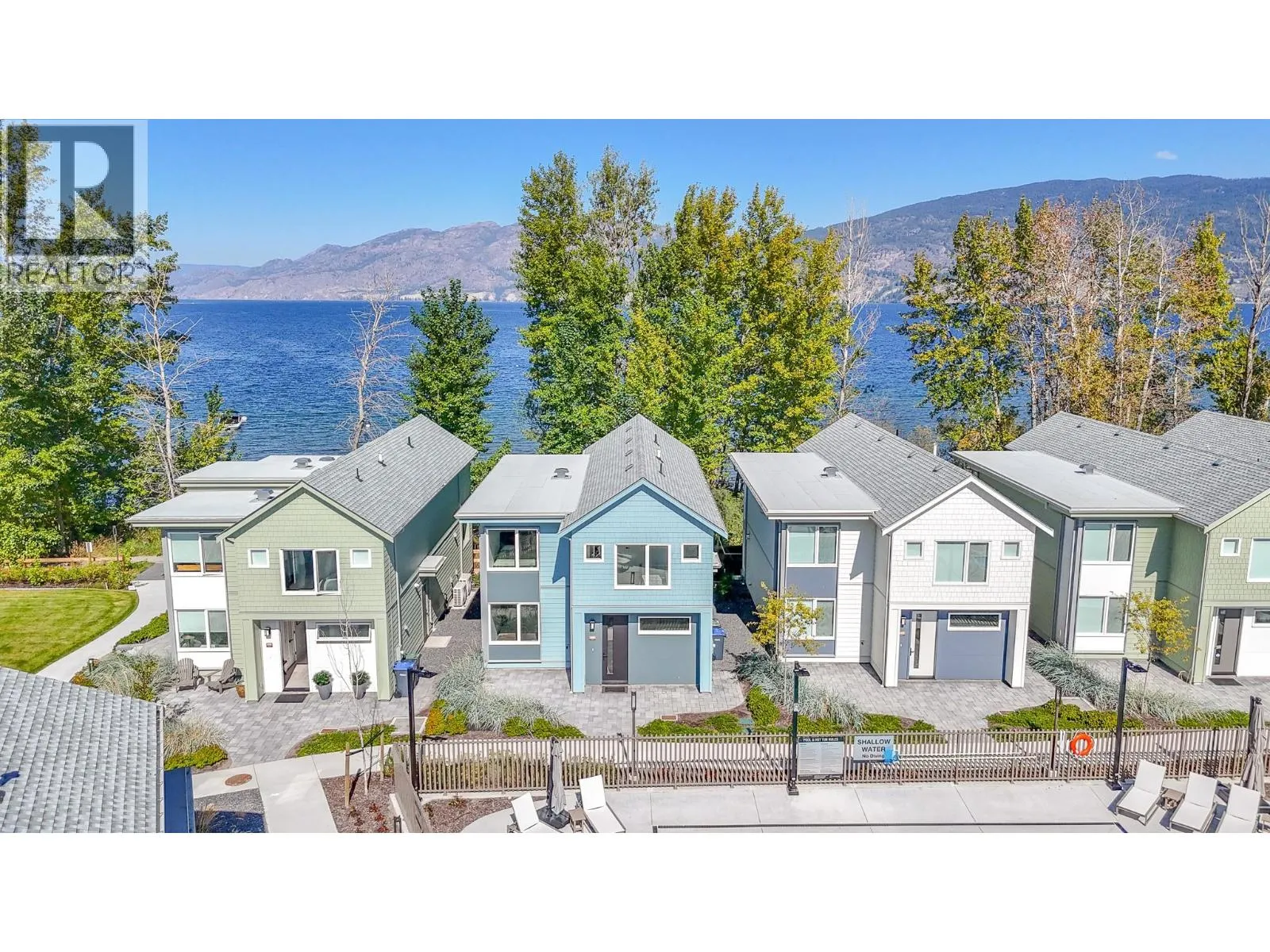 Welcome to Lakehouse at Trout Creekâwhere modern living meets Okanagan beauty. Nestled directly on the shores of Okanagan Lake, 3240 Landry Crescent offers breathtaking lake and mountain views just steps from the beach. This brand-new 1,811 sq. ft. home backs onto a tranquil green space and sandy beach area, placing you mere steps from the water in one of Summerlandâs most sought-after communities. Inside, this two-storey, 4-bedroom, 3-bathroom home showcases open-concept living flooded with natural light. Designer touches include wood grain luxury vinyl plank flooring, a sleek gas fireplace, and a chef-inspired kitchen with premium stainless steel appliances and a statement butcher block island. Seamless indoor-outdoor living awaits with a covered patio featuring a natural gas hookupâperfect for year-round entertaining. Just beyond your patio lies direct access to the lake and manicured pathways throughout the community. As a resident, enjoy exclusive access to the Lakehouse Clubhouse with an outdoor pool, fitness centre, and moreâall within walking distance. With designated parking for two vehicles and a move-in ready interior, this is your chance to experience relaxed luxury in the heart of the Okanagan. (id:27476)