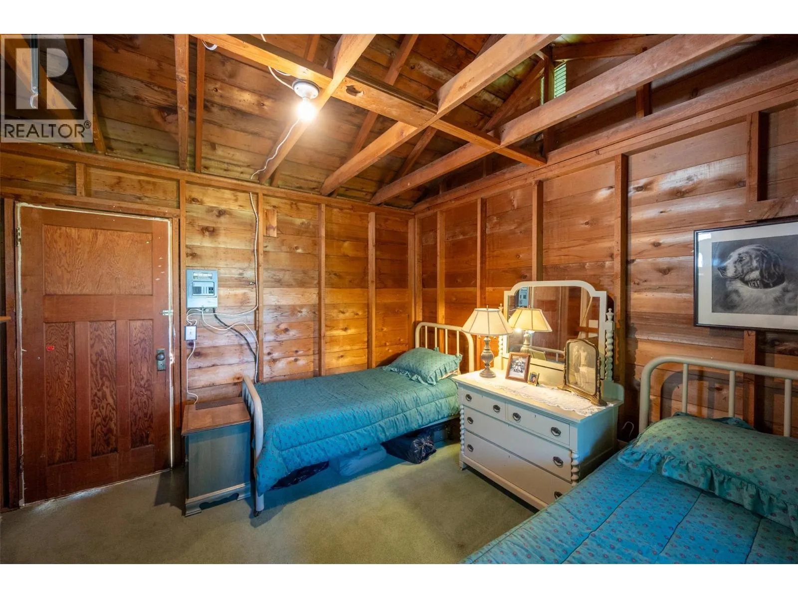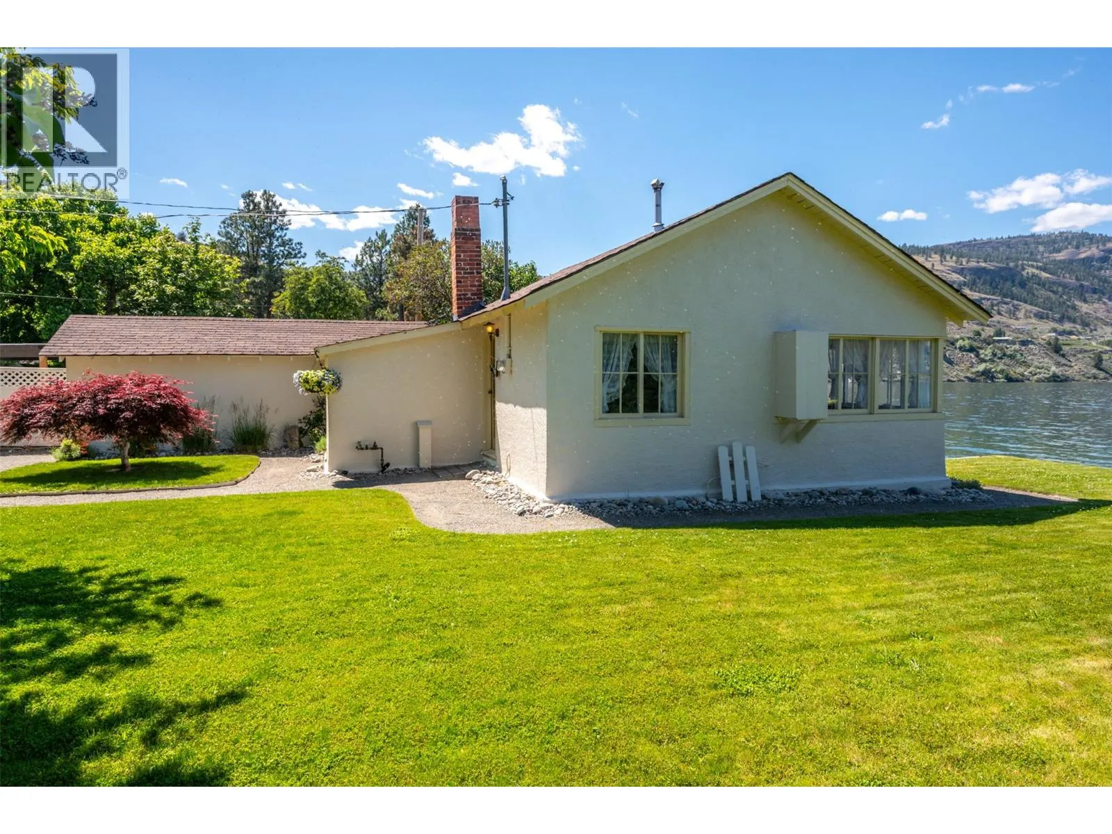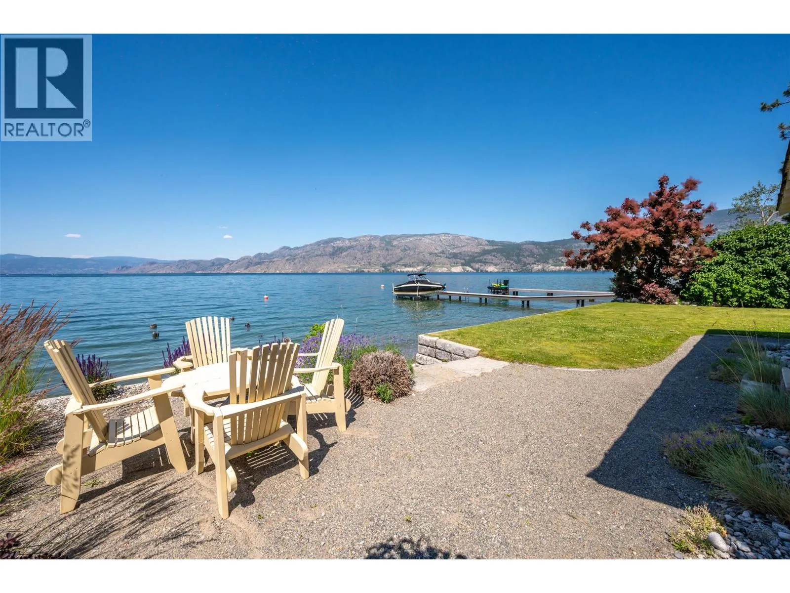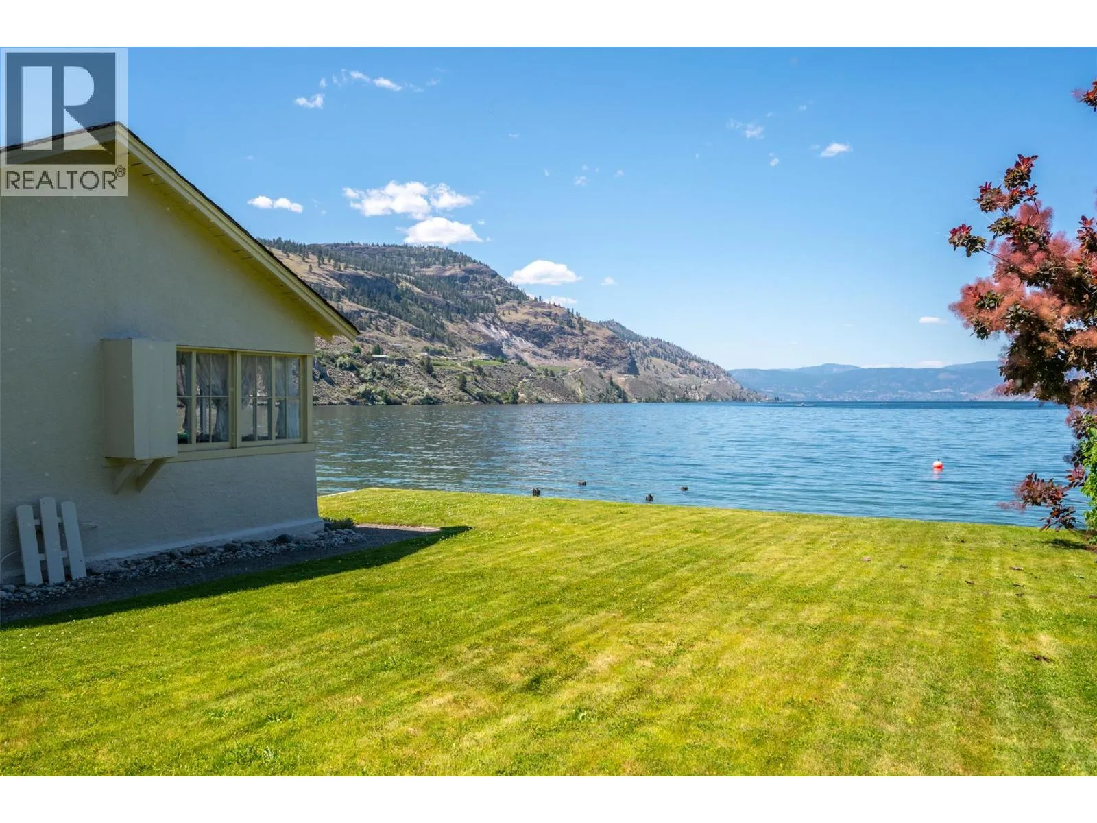 This unique property is a rare find. Located on Crescent Beach, one of the best beaches in the Okanagan, this 75 foot lakefront property offers an exceptional location for a vacation or primary home. The beachfront features crystal-clear water with a gentle, sandy slope perfect for swimming and water activities. The water depth year-round is ideal for docking all types of pleasure crafts. Properties in this beautiful area are situated at the end of a not through road, ensuring a private oasis in a close knit community. The property includes a well maintained, unique cabin style home with 2 bedrooms and a garage/storage area for added convenience. Additionally, this property includes a well constructed, charming secondary building which can service various uses. The manicured landscaping and mature old growth trees add a park-like setting to this longtimefamily property. Just a short distance from downtown Summerland, Crescent Beach is truly a hidden gem along the Lakeshore. This property is perfect for those seeking a quieter, more secluded, and exclusive beach home experience. Included in the pictures are renderings of a 3,000-square-foot home with a double garage. These renderings illustrate the approximate allowable size for a 2 story home. Please note that these concept renderings are a visual aid only and should not be relied upon for accuracy and must be verified with the municipality and professionals. (id:27476)