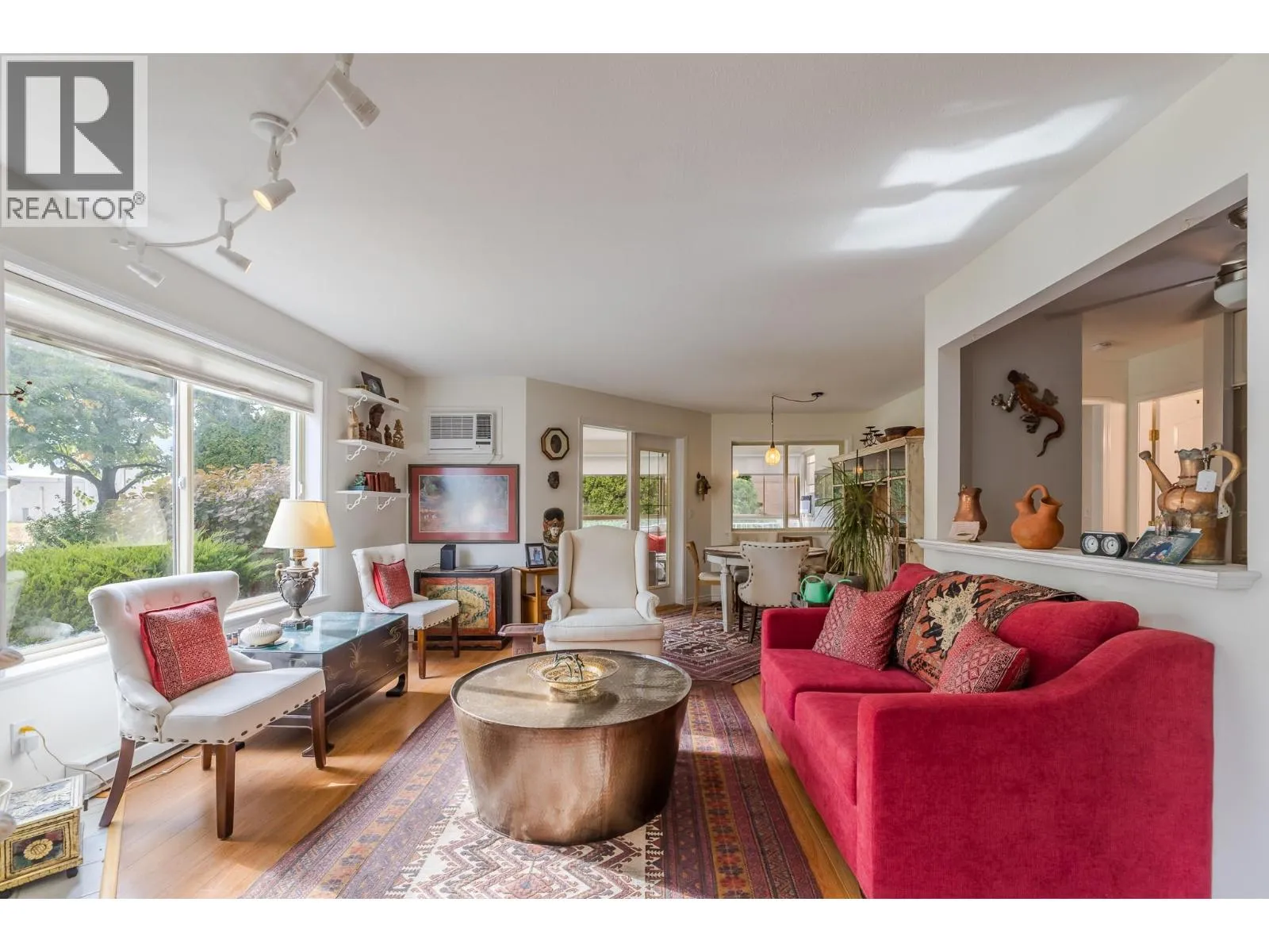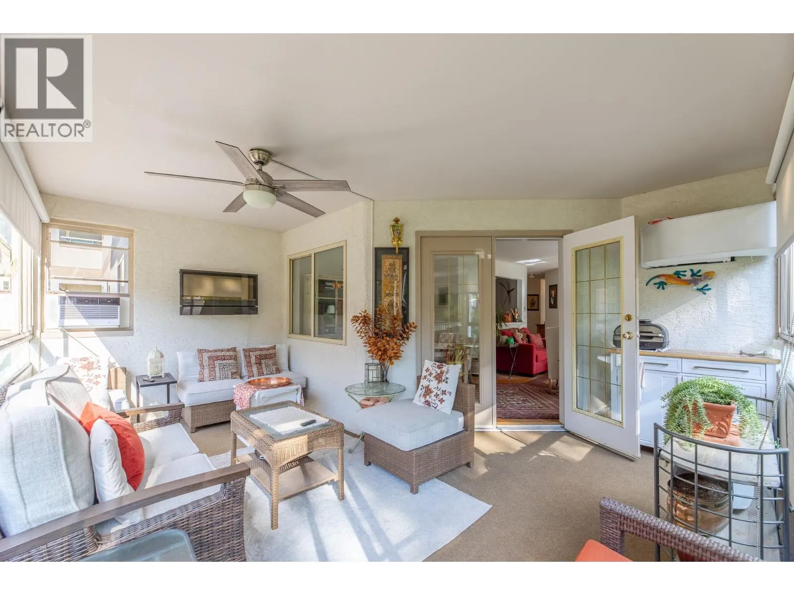 Welcome to one of the most desirable floor plans in the sought-after Silver Birch community! This ground-floor corner unit in Phase 1 offers 2 spacious bedrooms, a den, and a large, enclosed sunroom with sliding glass doors that open to the beautifully landscaped grounds â perfect for year-round enjoyment. Located on the south side of the building, bright and airy unit features an open-concept layout, generous storage throughout, and additional storage just steps down the hall. Thoughtfully maintained with tasteful updates, it provides a warm, move-in-ready space. Silver Birch is known for its well-run strata, lush landscaping, and exceptional amenities including: secure underground parking, workshop, RV parking, recreation hall for family gatherings, outdoor swimming pool with change rooms. The strata fee includes natural gas and hot water. Age 55+ community, non-smoking building, and small pets allowed with approval. Just a short walk to downtown Summerland, this is a rare opportunity to own in a truly unique and well-cared-for home. (id:27476)