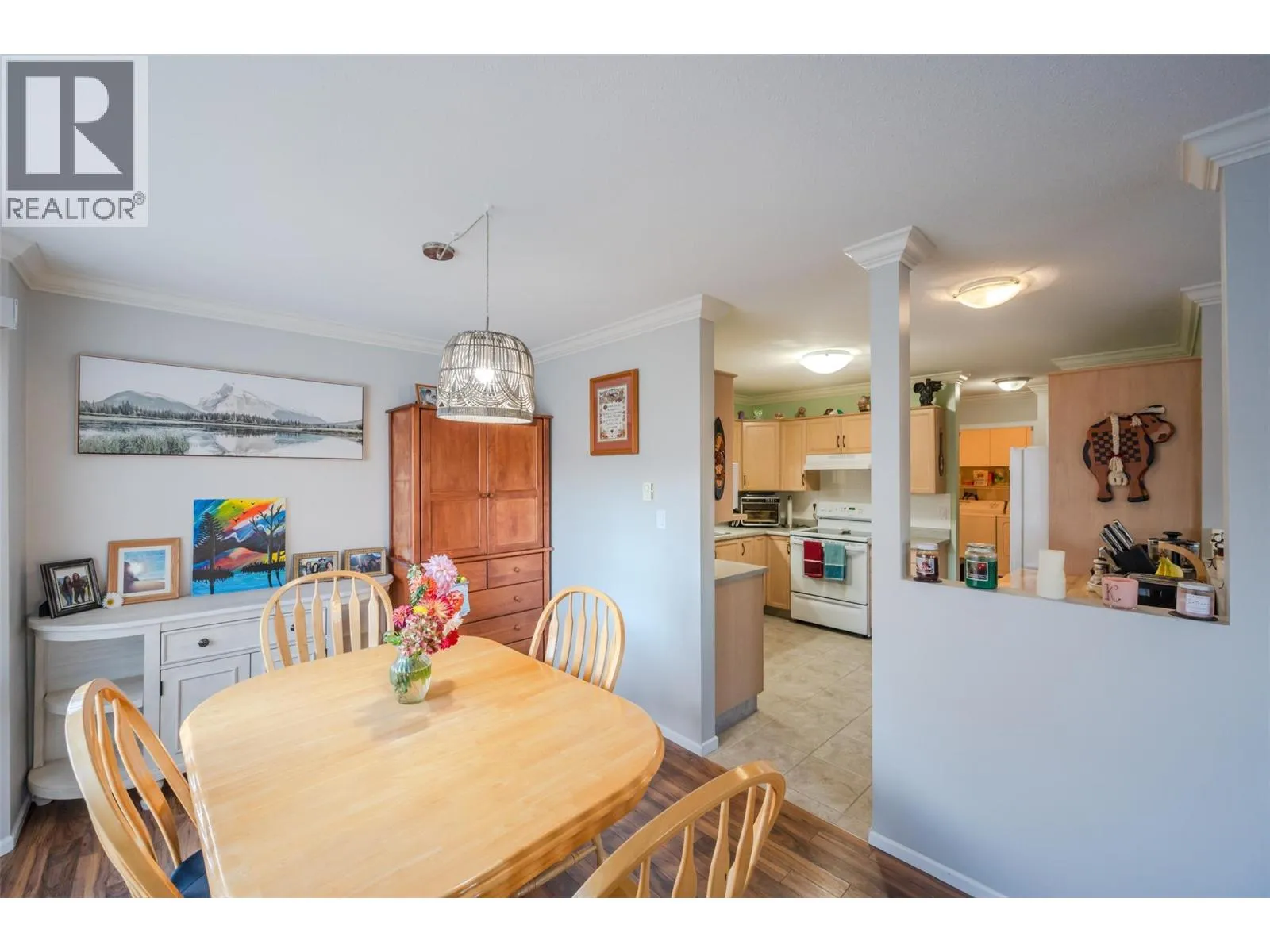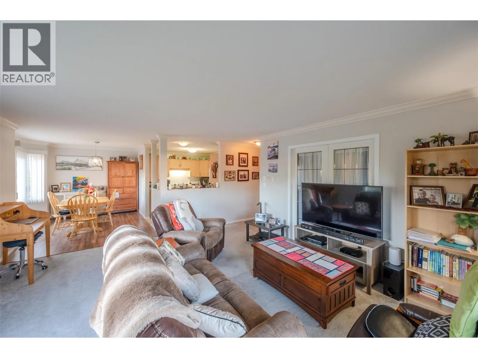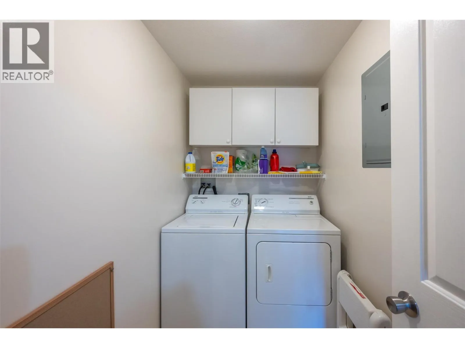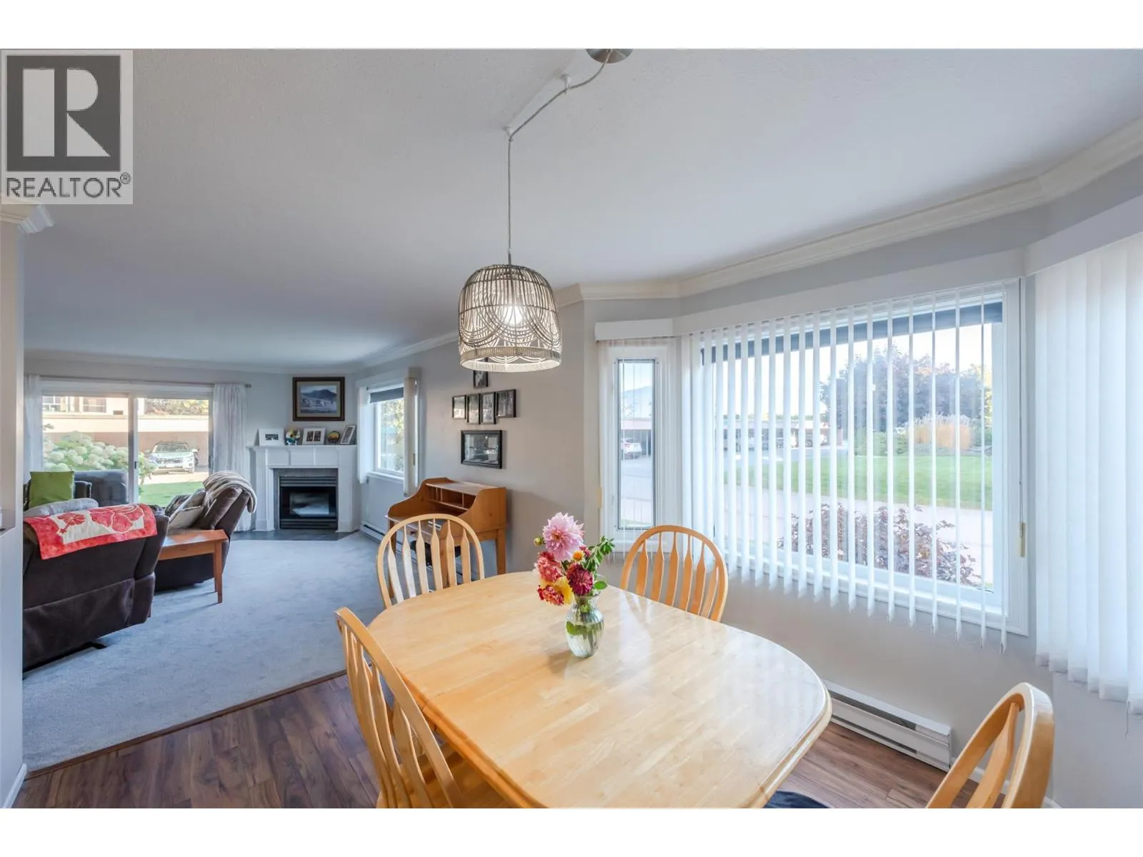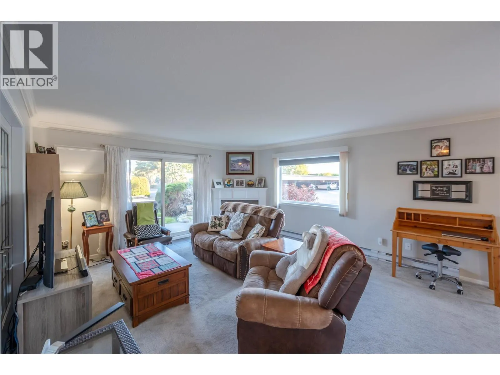 Spacious well-appointed ground floor corner unit located in beautiful Summerland. This 2 bedroom, 2 bathroom features an open concept living area with a corner fireplace, large bedrooms, spacious laundry room and great storage. Upgrades include crown molding in the living and kitchen areas, new refrigerator, refinished counters, neutral paint colors and new flooring in the bedrooms. Access the private patio and beautiful green space through the sliding doors in the living room. Only steps to the covered parking stall and the spacious 9x6 storage locker, no elevator needed. This property is move in ready, all appliances are included. Currently this complex has no age restriction, and allows rentals and pets. Call to book your private viewing today. (id:27476)