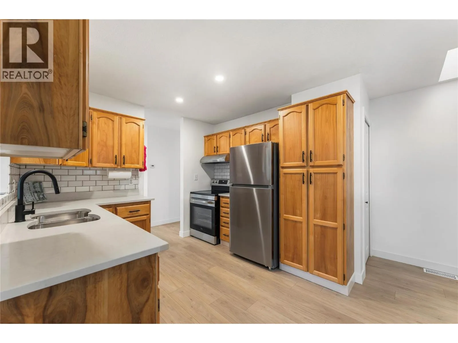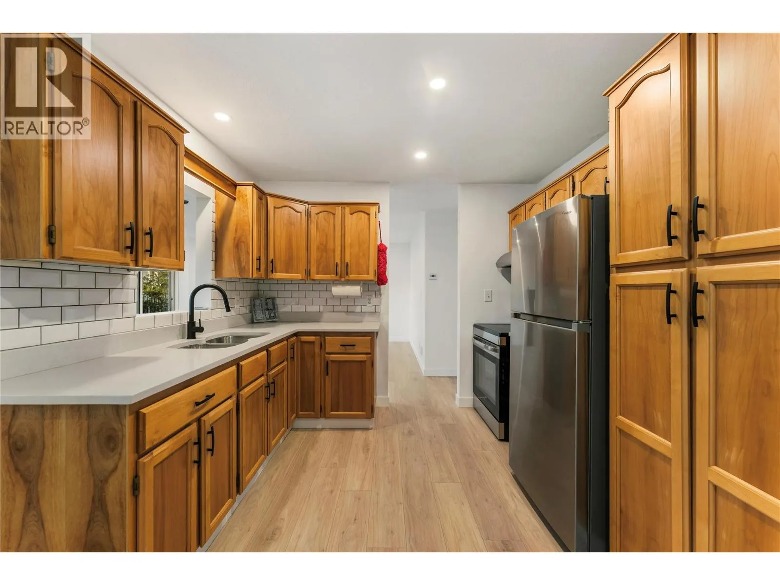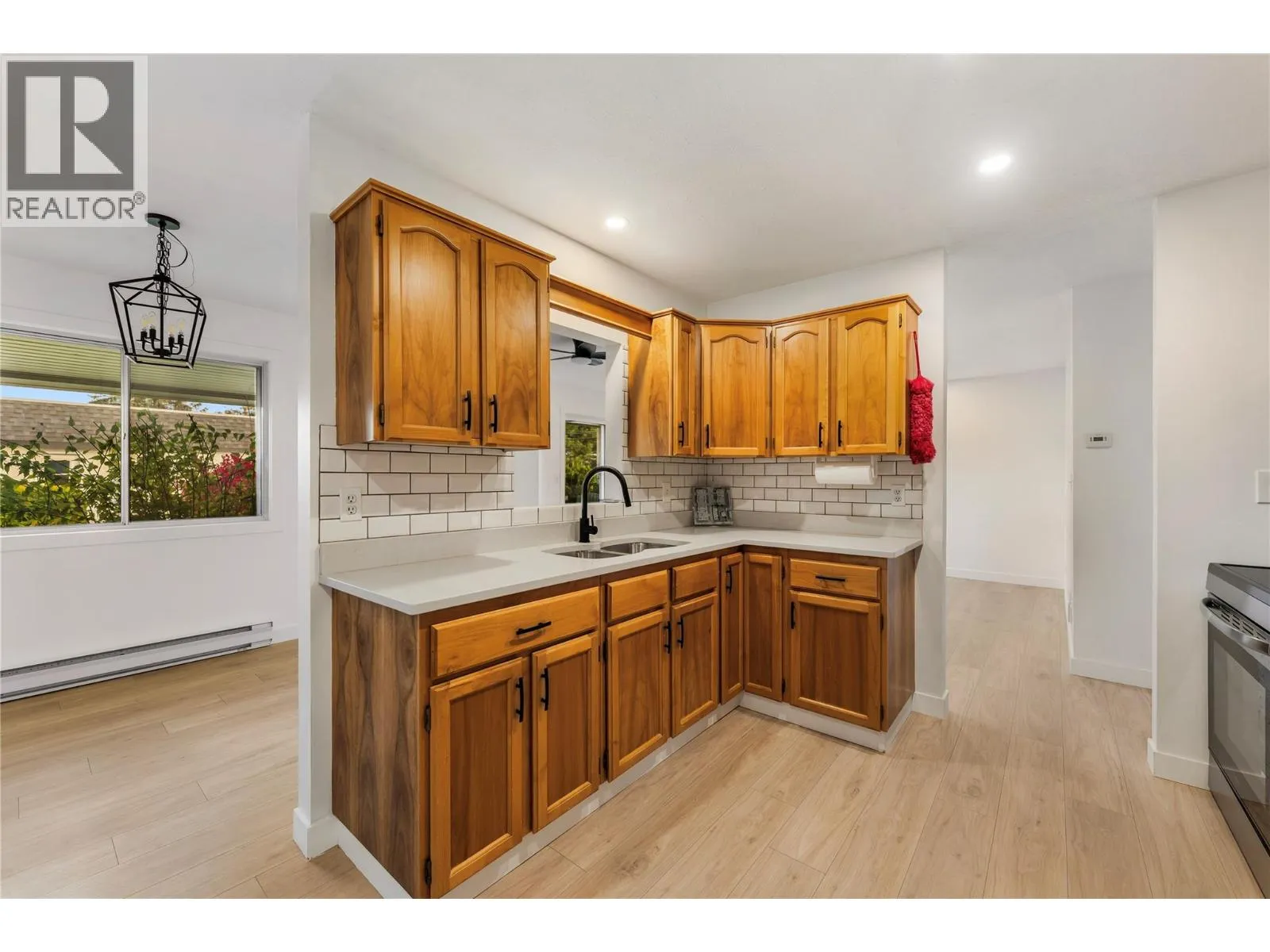 Welcome to Unit 13 at Quinpool Patio Homes, a beautifully renovated and move in ready residence nestled in the heart of picturesque Summerland. This bright and modern 2 bedroom, 2 bathroom bungalow offers stylish, comfortable, and affordable retirement living in a peaceful and friendly 55+ community. Every detail has been thoughtfully updated, featuring all new flooring, fresh paint throughout, new countertops, modern tile, upgraded bathrooms, and all new lighting that creates a bright and inviting atmosphere. Step inside to an open and functional layout, highlighted by a spacious living room with a cozy fireplace and a beautifully refreshed kitchen and dining area designed for easy everyday living. The large primary bedroom includes ample closet space and a private two piece ensuite, while the second bedroom offers flexibility for guests, hobbies, or a home office. Enjoy the convenience of in home laundry and generous storage throughout the home.Outside, your private front patio provides the perfect space to relax and soak in the warm Summerland sunshine. With low monthly strata fees, numerous upgrades, and a prime location within easy, flat walking distance to downtown shops, cafes, and local services, this home blends comfort, convenience, and community living. Set against a backdrop of rolling vineyards and the sparkling waters of Okanagan Lake, Summerland has been recognized as one of the top retirement communities in British Columbia. It offers a relaxed pace of life with endless opportunities for recreation and connection. Residents enjoy world-class wineries, scenic walking trails, charming boutiques, and a welcoming small-town atmosphere that makes it easy to feel at home. (id:27476)