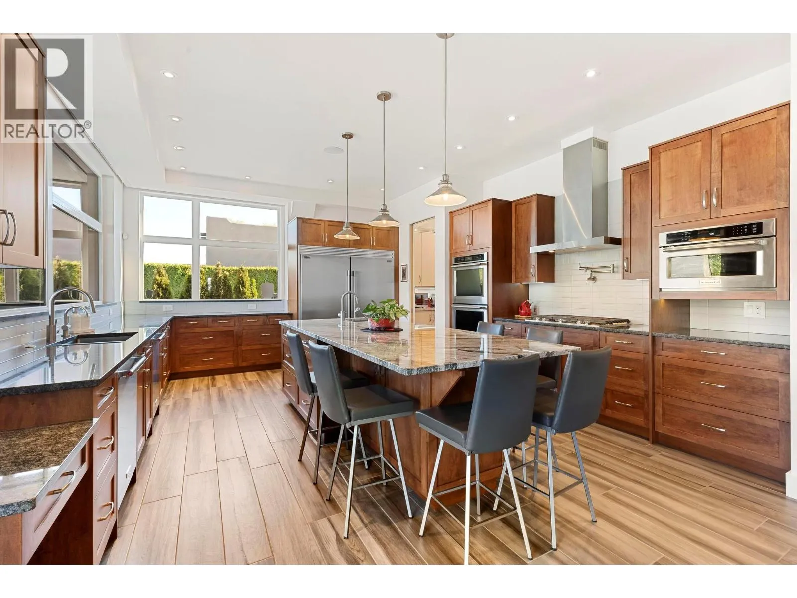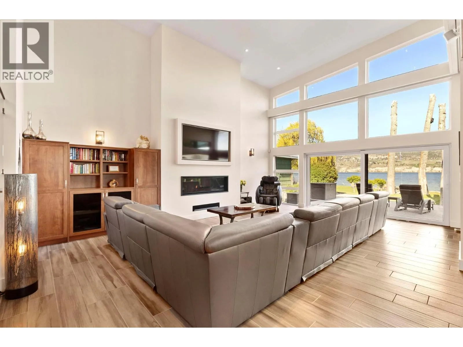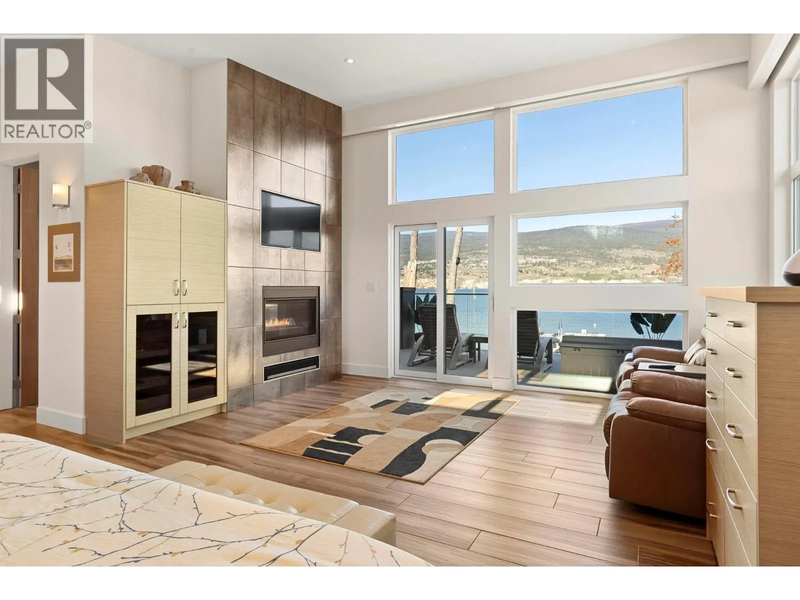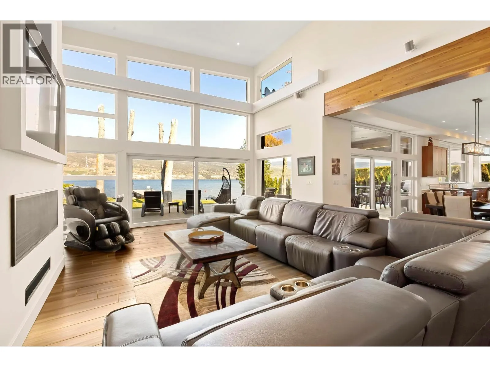 Indulge in unparalleled luxury at this waterfront estate in Summerland's prestigious Trout Creek enclave. Crafted with meticulous attention to detail in 2019, this residence rests on a 0.40-acre lot with 75 feet of lakeshore frontage. With over 5,200 square feet of living space, including a 4,300-square-foot main residence with three bedrooms and four bathrooms, plus a 952-square-foot family wing, this is a sizeable lakeshore residence. Seamlessly blending indoor and outdoor living, enjoy 1,510 square feet of spacious deck space. With over 1,900 square feet of garage space and room for five or more cars, plus boat and RV parking, rare lakeshore parking is offered. Modern conveniences like an elevator, radiant heating, wine closet, and porcelain plank floors elevate luxury living. The chef's kitchen transitions to an outdoor kitchen/lounge area, ideal for entertainment space. The private master suite boasts a large walk-in closet and ensuite with a steam shower. Built with ICF foundations, 400 amp servicing, and commercial-grade water filtration, quality is paramount through every component of this 2019-build. Outside, enjoy a concrete deck, grassed backyard, sandy beach, full dock with LED solar lights, and boat tie-downs. From interiors to outdoor spaces, this estate offers an irreplaceable lakeside lifestyle of elegance and comfort in one of the most prestigious, high value areas in the Okanagan. (id:27476)