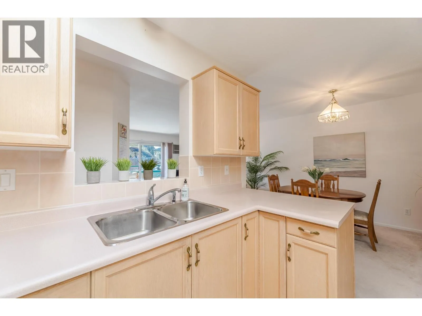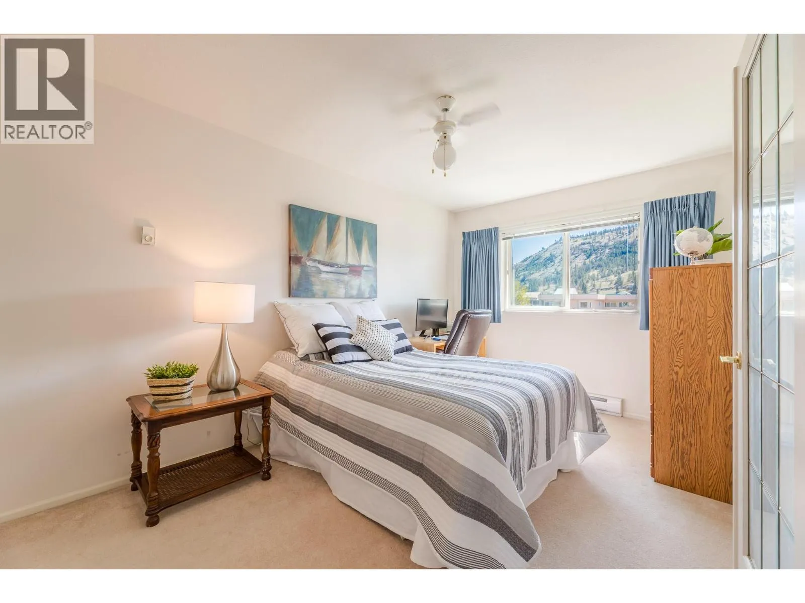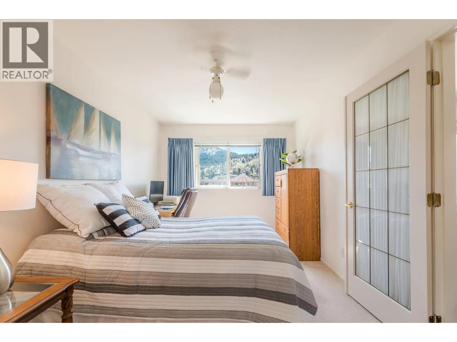 Welcome to Linden Estates â a peaceful 55+ community in the heart of Summerland! This bright and welcoming TOP FLOOR home offers 2 spacious bedrooms with stunning mountain views, 2 bathrooms, and the convenience of in-suite laundry. The kitchen is filled with natural light from a brand-new skylight, and the open-concept dining and living areas flow seamlessly to a large, sunny south-facing deck â the perfect place to relax with a coffee while enjoying the views of Giantâs Head Mountain. Enjoy the comfort of a well-cared-for, safe building with the bonus of LOW strata fees (currently just $234.87/month). RV parking available upon request and a personal storage locker is include next to your covered parking spot. Everything you need is just a short, level walk away â groceries, shops, parks, transit, and even the lake. This quiet, pet-free complex is designed for easy living, with quick possession available so you can settle in soon! Linden Estates is more than a home â itâs a lifestyle of comfort, safety, and convenience. (id:27476)