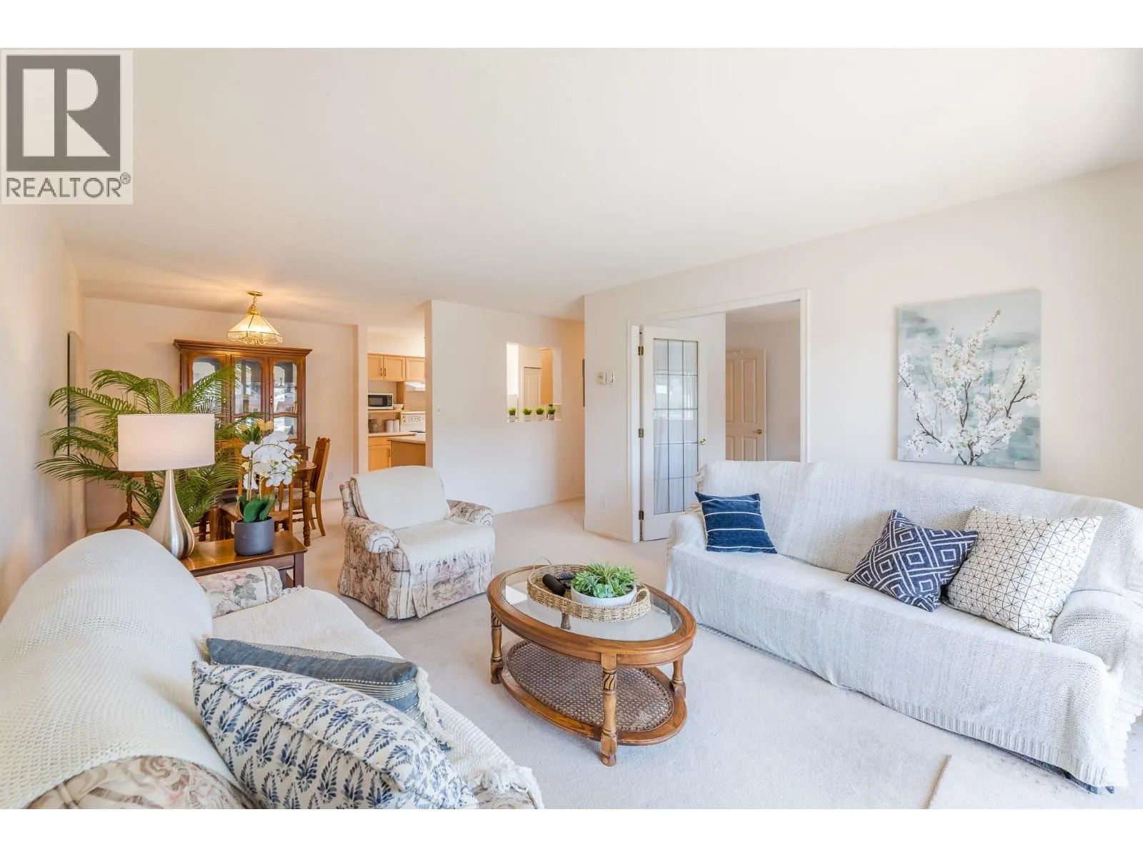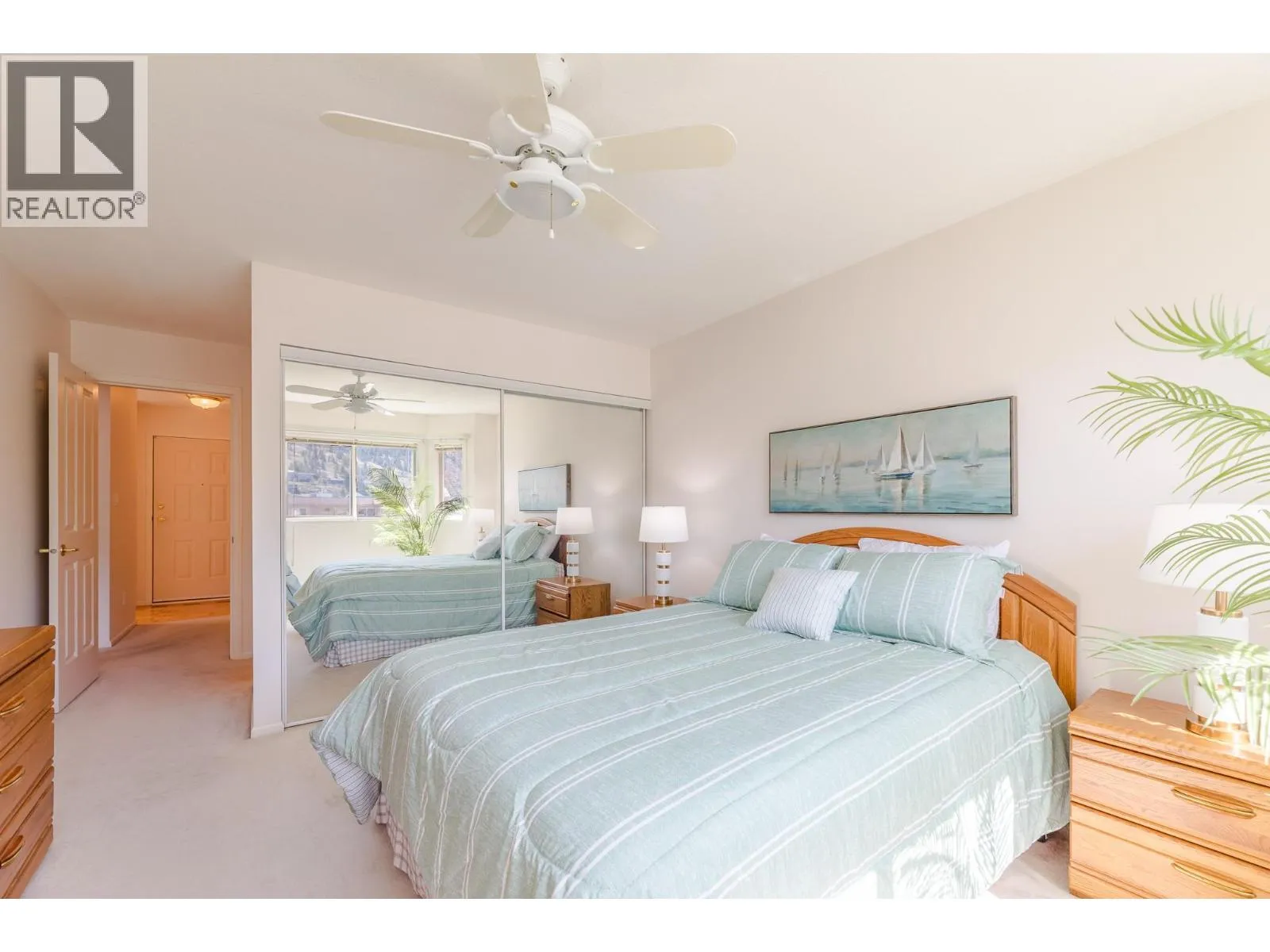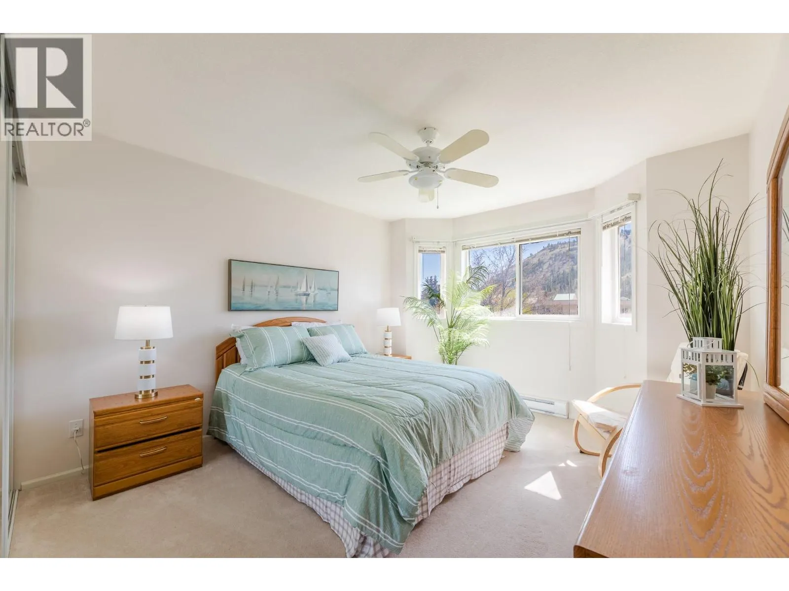 Welcome to Linden Estates â a peaceful 55+ community in the heart of Summerland! This bright and welcoming TOP FLOOR home offers 2 spacious bedrooms with stunning mountain views, 2 bathrooms, and the convenience of in-suite laundry. The kitchen is filled with natural light from a brand-new skylight, and the open-concept dining and living areas flow seamlessly to a large, sunny south-facing deck â the perfect place to relax with a coffee while enjoying the views of Giantâs Head Mountain. Enjoy the comfort of a well-cared-for, safe building with the bonus of LOW strata fees (currently just $234.87/month). RV parking available upon request and a personal storage locker is include next to your covered parking spot. Everything you need is just a short, level walk away â groceries, shops, parks, transit, and even the lake. This quiet, pet-free complex is designed for easy living, with quick possession available so you can settle in soon! Linden Estates is more than a home â itâs a lifestyle of comfort, safety, and convenience. (id:27476)