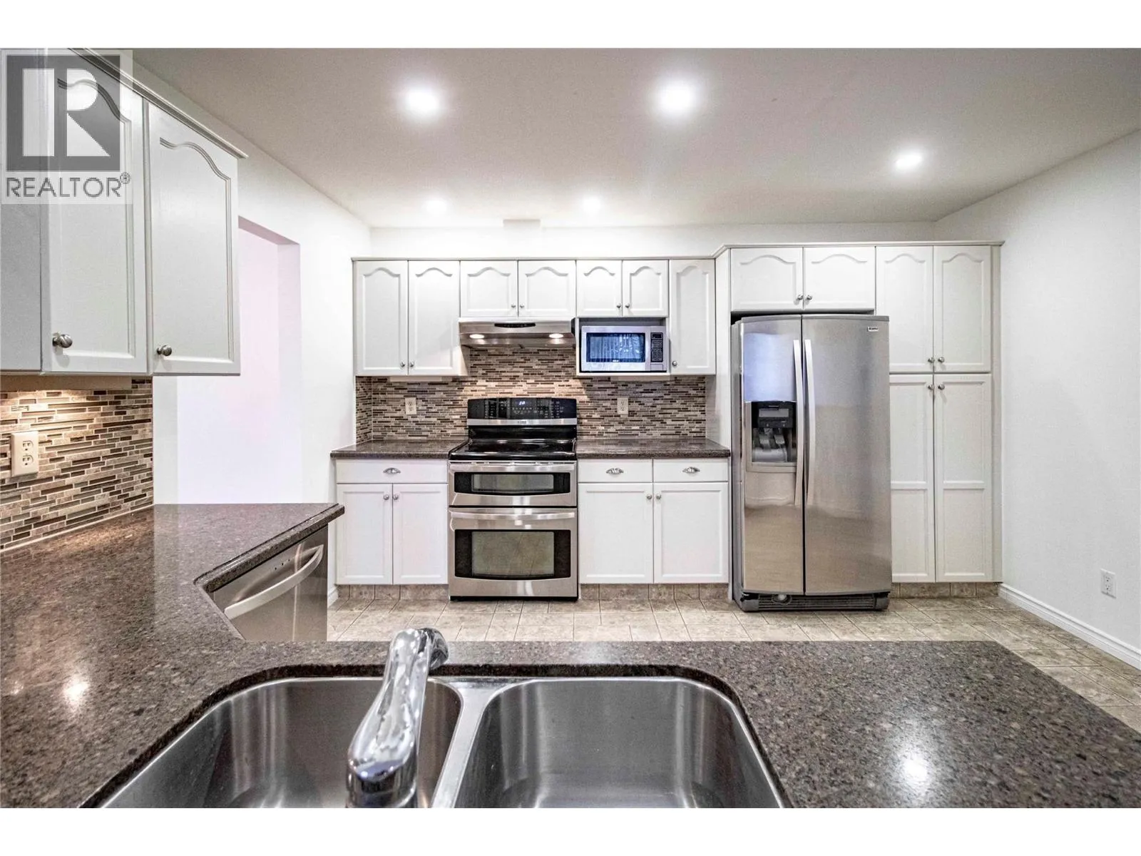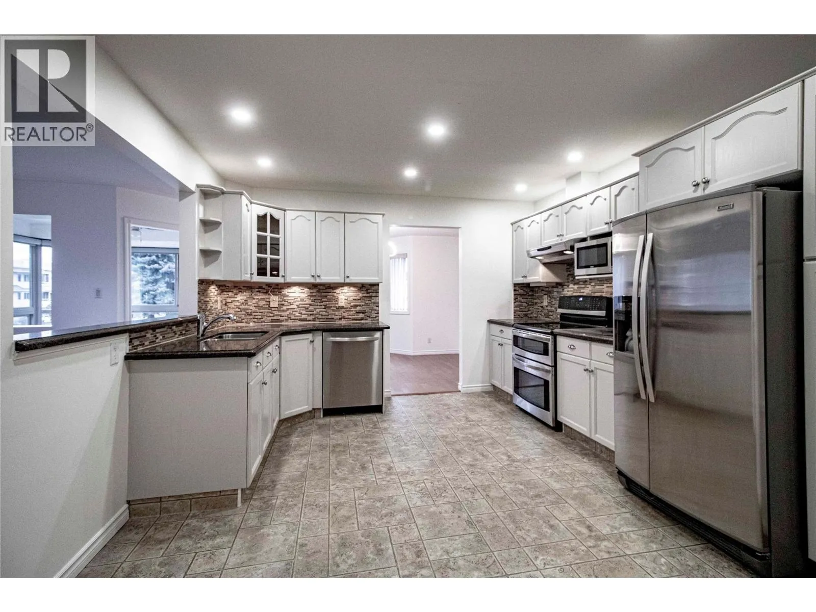 Spacious corner condo with bright southwest view at Silver Birch, a four-building complex that's an easy walk to downtown Summerland. Located in the Tamarack, which is right beside the Silver Birch clubhouse and outdoor swimming pool, this updated and freshly painted condo has two bedrooms and a large glassed-in patio off the living room that makes an ideal den. Updated kitchen with stainless-steel appliances. Gas fireplace in the living room, laundry room has extra storage space. Separate storage locker down the corridor. Secure underground parking (stall #5, just by the garage door), limited RV parking. Amenity centre with outdoor pool is shared by all four buildings. Quick access down the hall from this unit. 55+, one cat or one dog (maximum 14"" at shoulders), no smoking. (id:27476)