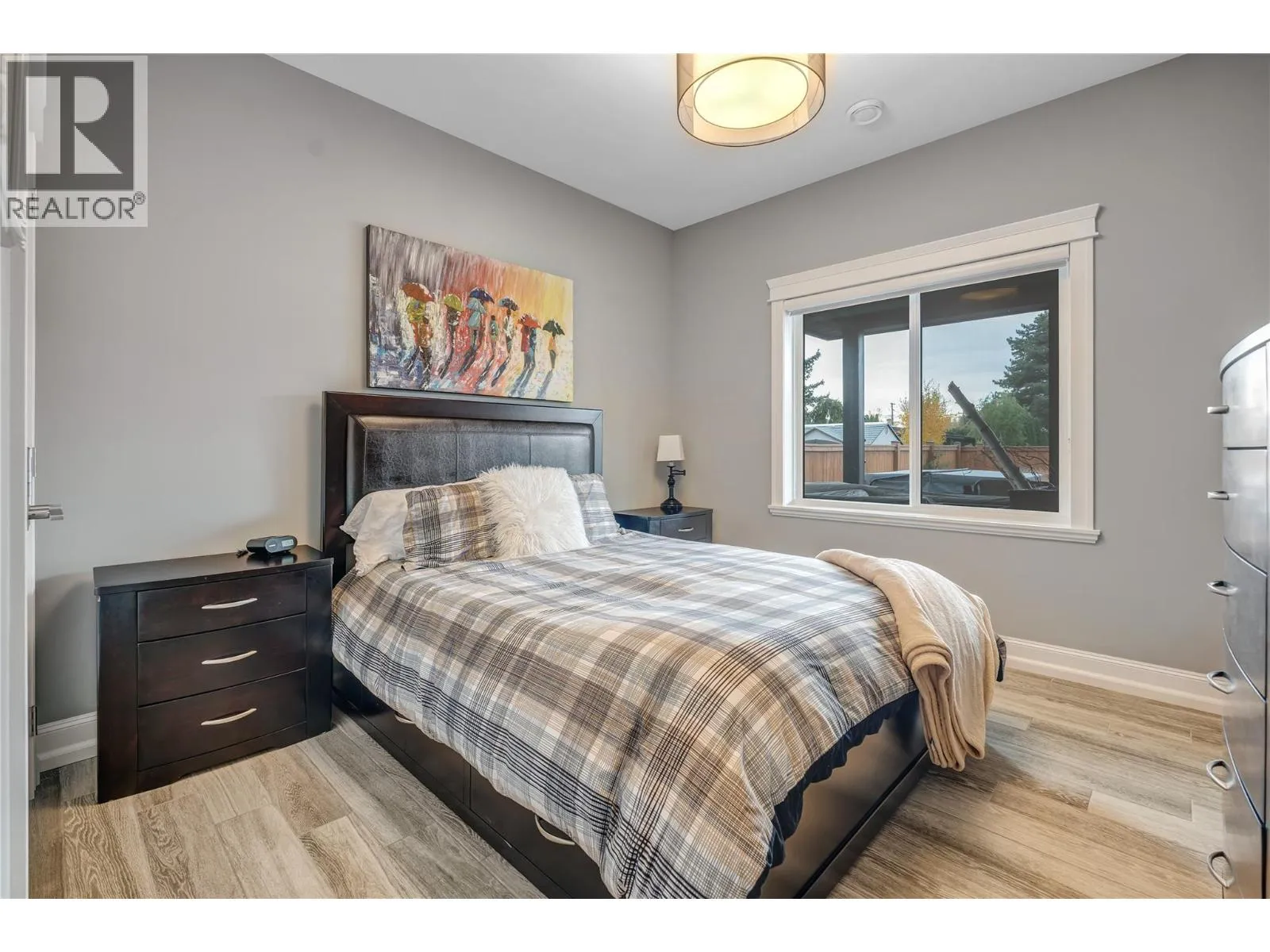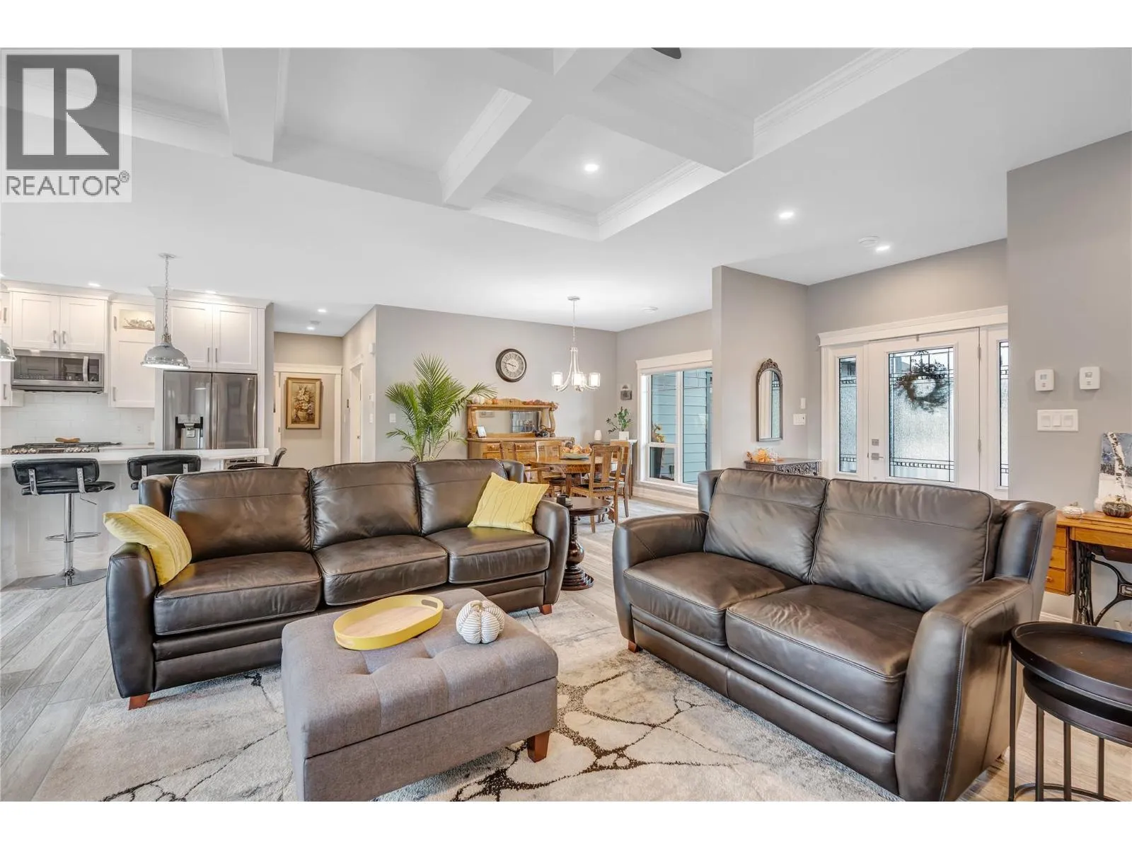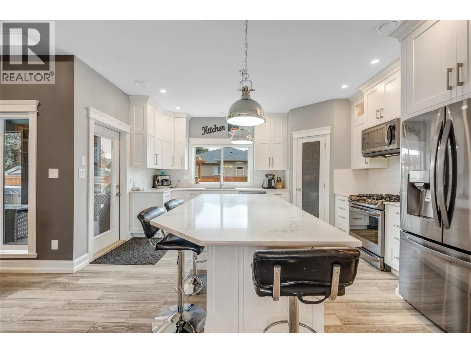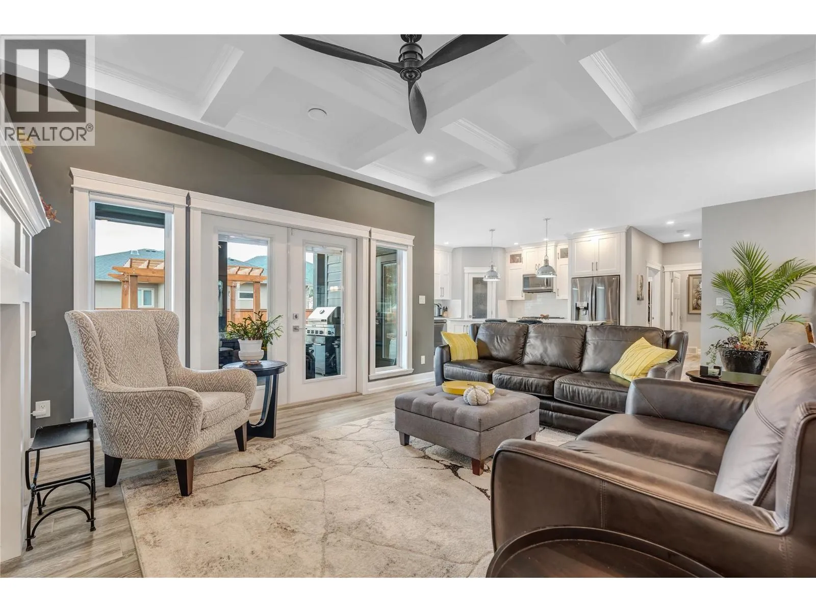 Exceptional custom-built luxury just steps from Okanagan Lake. This impeccably designed, 8-year-young level-entry rancher offers over 2,300 sq ft of refined living with 3 bedrooms, 3 bathrooms, and a versatile loft/bonus room. The open-concept layout showcases porcelain flooring throughout, soaring ceilings with elegant waffle detailing in the living room and primary suite, and a stunning kitchen ideal for both entertaining and everyday living. Comfort is elevated with natural gas in-floor heating (in concrete), plus central air conditioning and an efficient heat pump. A true standout is the oversized 28' x 26' heated garage with high ceilings, workshop space, janitor/dog wash area and access to a 6' basement providing extensive heated, dry storage and added versatility. Exterior finishes impress with natural stone accents, cement siding, and stamped concrete driveway, walkways, and covered rear balcony. The fully fenced backyard offers privacy and security, featuring gated extra parking, hot tub, underground irrigation, and a serene waterfall feature. Ideally located just 2½ blocks from Okanagan Lakeâs boat launch and beaches, steps from Trout Creek Elementary, and within walking distance to multiple shoreline access points. A rare opportunity to enjoy modern luxury in a premier lakeside neighborhood. (id:27476)