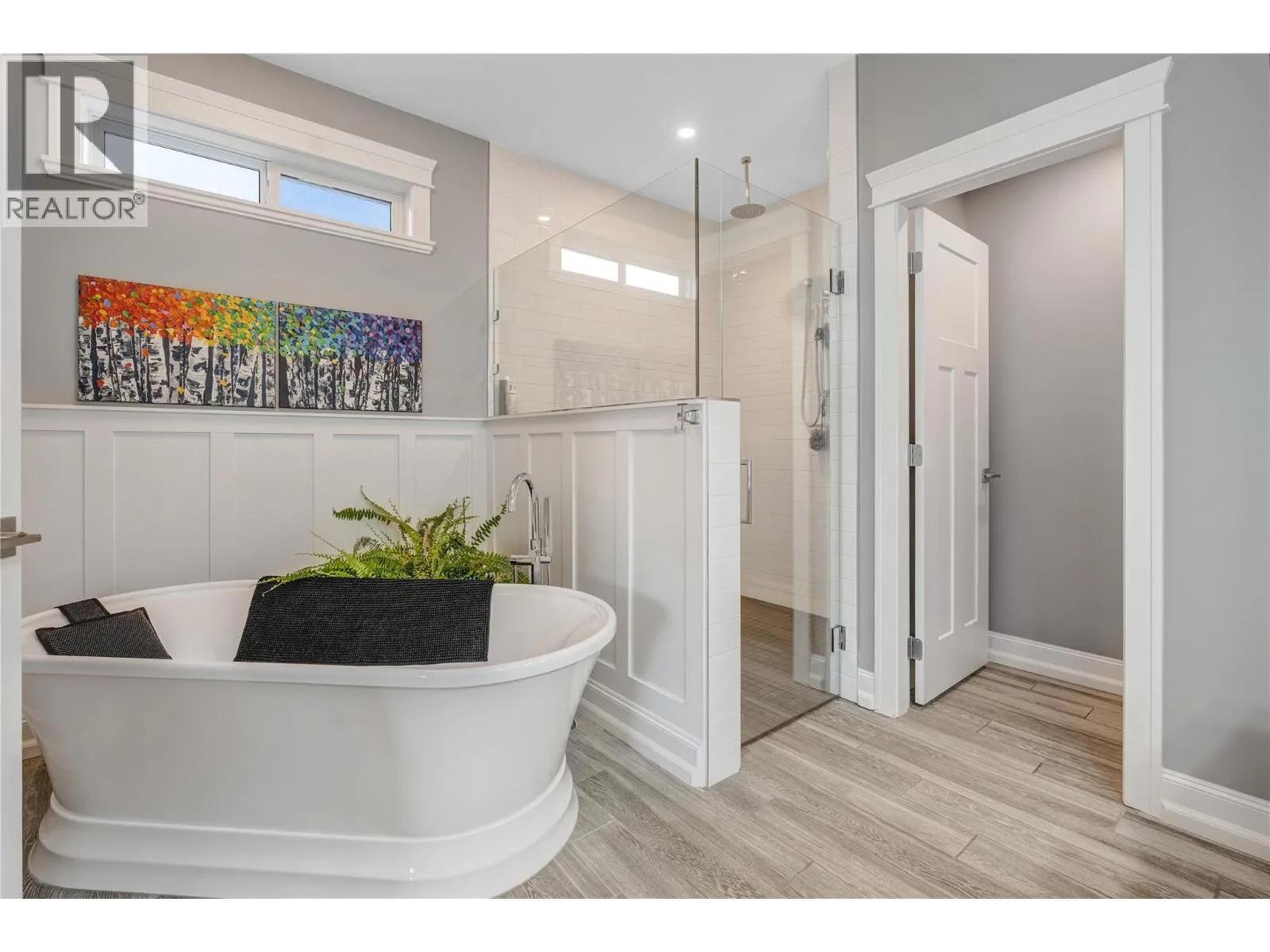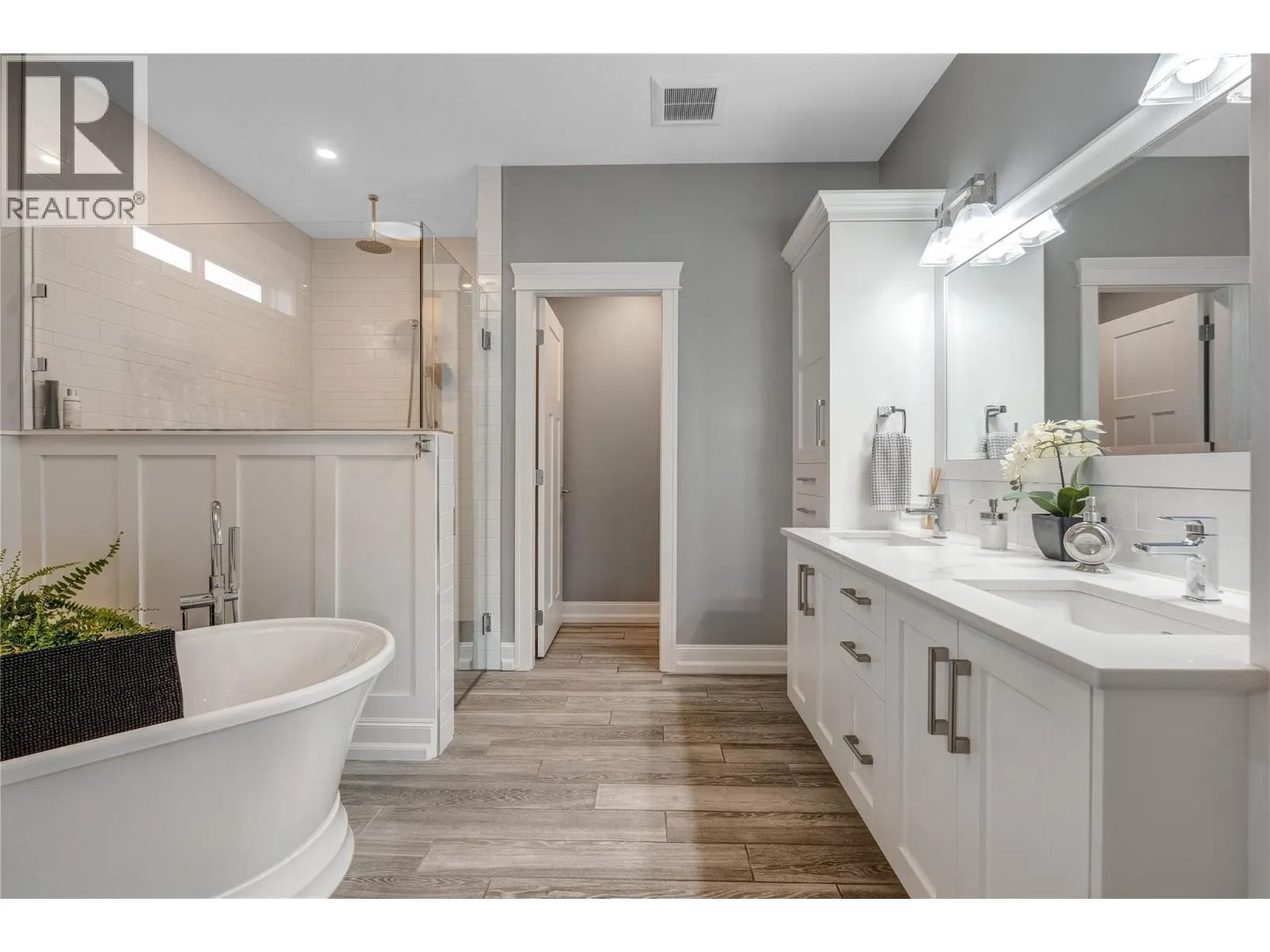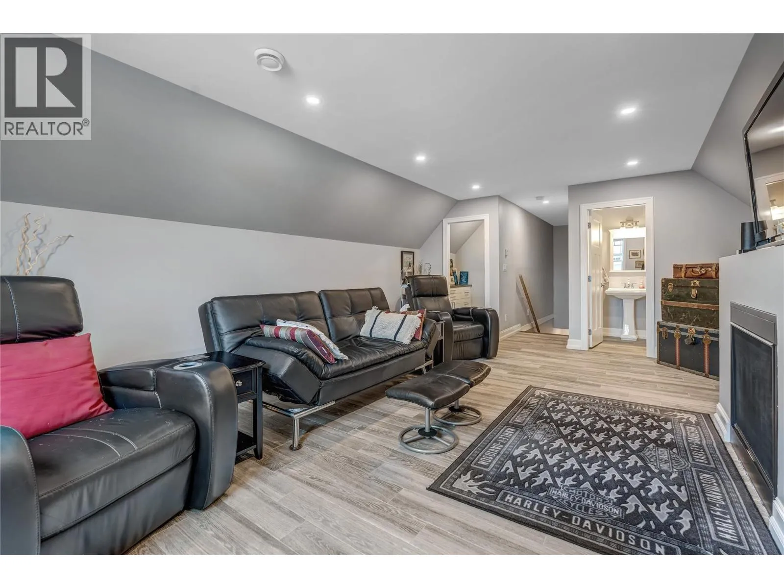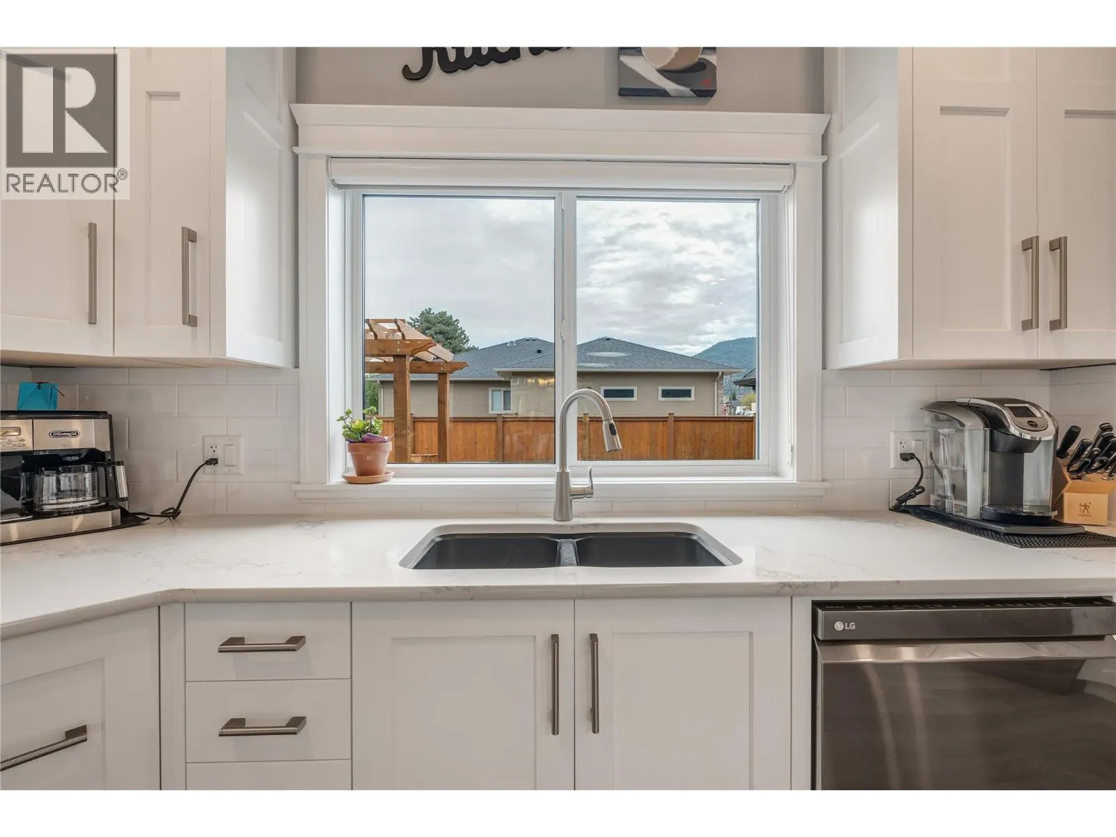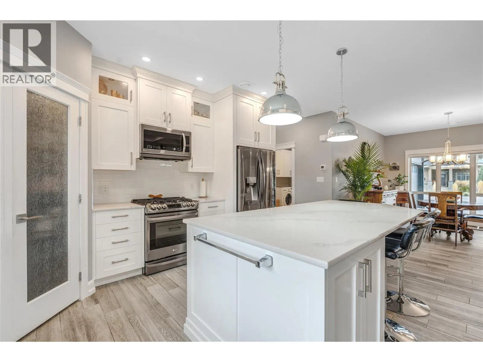 Exceptional custom-built luxury just steps from Okanagan Lake. This impeccably designed, 8-year-young level-entry rancher offers over 2,300 sq ft of refined living with 3 bedrooms, 3 bathrooms, and a versatile loft/bonus room. The open-concept layout showcases porcelain flooring throughout, soaring ceilings with elegant waffle detailing in the living room and primary suite, and a stunning kitchen ideal for both entertaining and everyday living. Comfort is elevated with natural gas in-floor heating (in concrete), plus central air conditioning and an efficient heat pump. A true standout is the oversized 28' x 26' heated garage with high ceilings, workshop space, janitor/dog wash area and access to a 6' basement providing extensive heated, dry storage and added versatility. Exterior finishes impress with natural stone accents, cement siding, and stamped concrete driveway, walkways, and covered rear balcony. The fully fenced backyard offers privacy and security, featuring gated extra parking, hot tub, underground irrigation, and a serene waterfall feature. Ideally located just 2½ blocks from Okanagan Lakeâs boat launch and beaches, steps from Trout Creek Elementary, and within walking distance to multiple shoreline access points. A rare opportunity to enjoy modern luxury in a premier lakeside neighborhood. (id:27476)