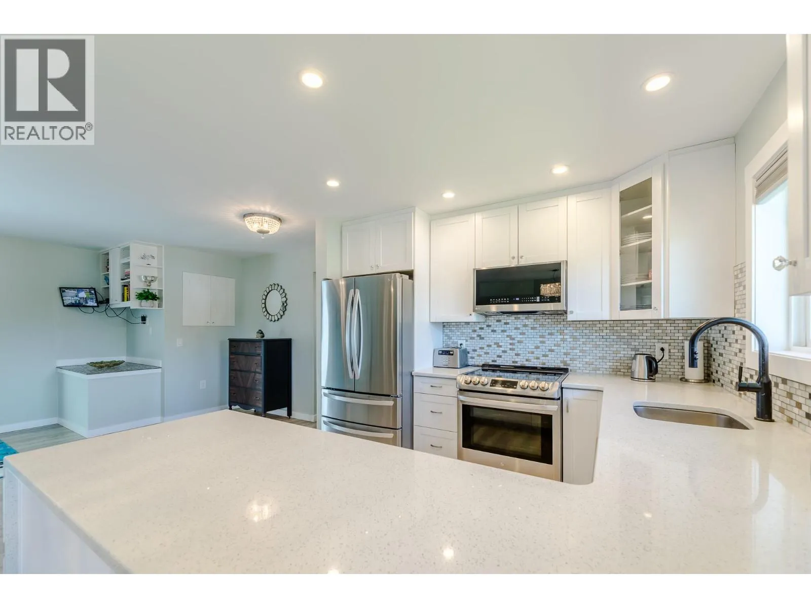 Welcome to this STUNNING family home offering comfort, style, and convenience in one of the most convenient central locationsâjust steps from schools, parks, PICKLEBALL and Summerland town amenities. The main floor features an inviting open-concept layout with modern finishes throughout, including soft-close cabinetry, quartz countertops, and newer appliances. The spacious primary on the MAIN level suite boasts a 5-piece ensuite, while a 2nd bedroom and full bath complete this level. A new exterior door(2024) off the living room opens to a PRIVATE covered patio with fresh concrete in the BBQ areaâperfect for family gatherings and entertaining. The fully finished lower level offers a generous recreation room, 3rd bedroom, 3-piece bathroom with sauna, and plenty of storage. Outdoors, enjoy a fully fenced yard with raised garden beds, an updated irrigation system, and space for the kids and pets to play. With an attached garage, a dedicated motorcycle garage, and parking for up to six vehicles, this home combines practicality with lifestyle. Recent updates include: new exterior concrete (Sept 2025), professional full-home interior paint, updated irrigation (March 2025), new windows, added insulation, natural gas furnace, central A/C, on-demand hot water, and a security system. This is a move-in ready property that truly must be seen to be appreciated. Sale is contingent. Most furniture is negotiable. (id:27476)