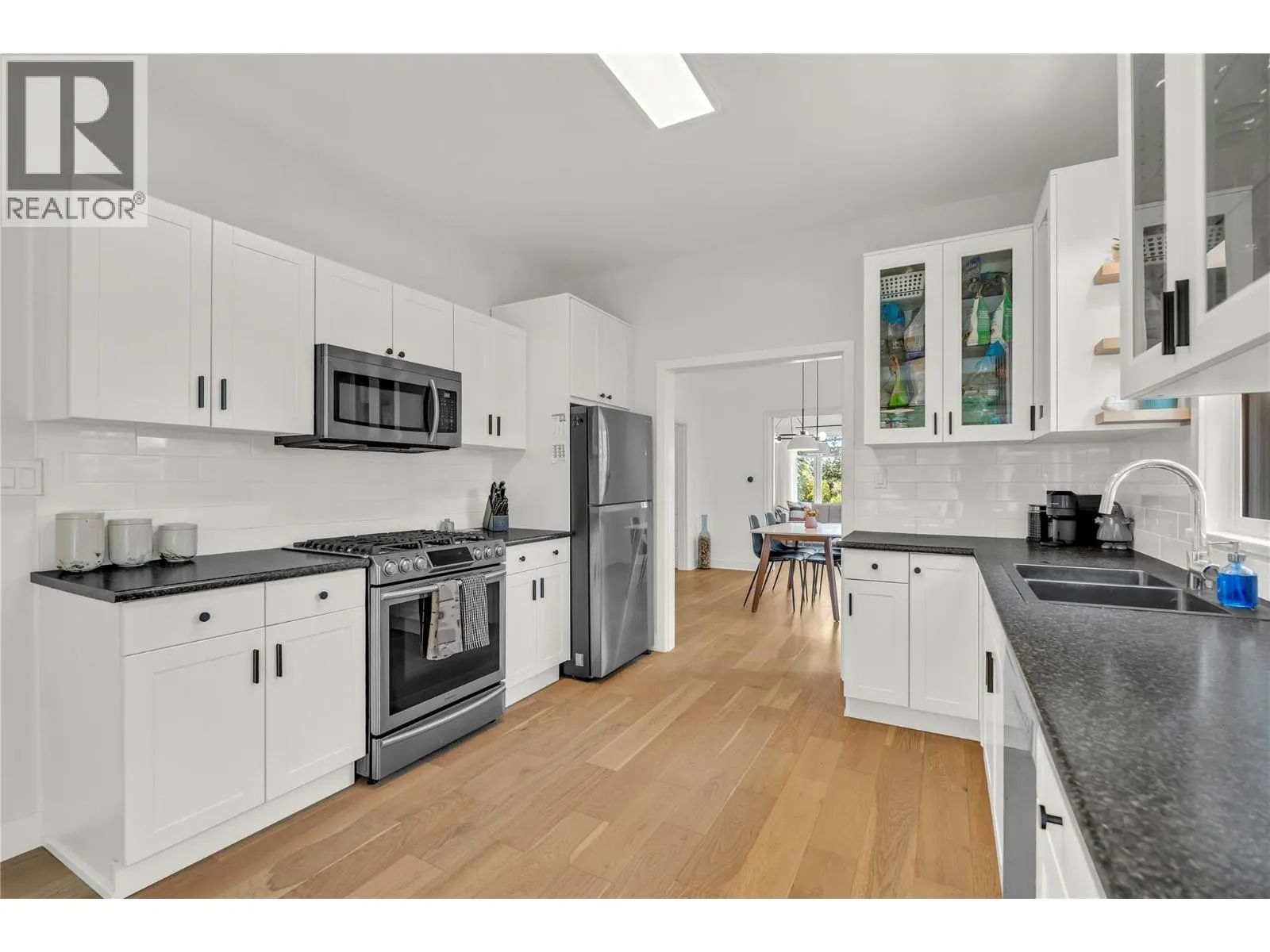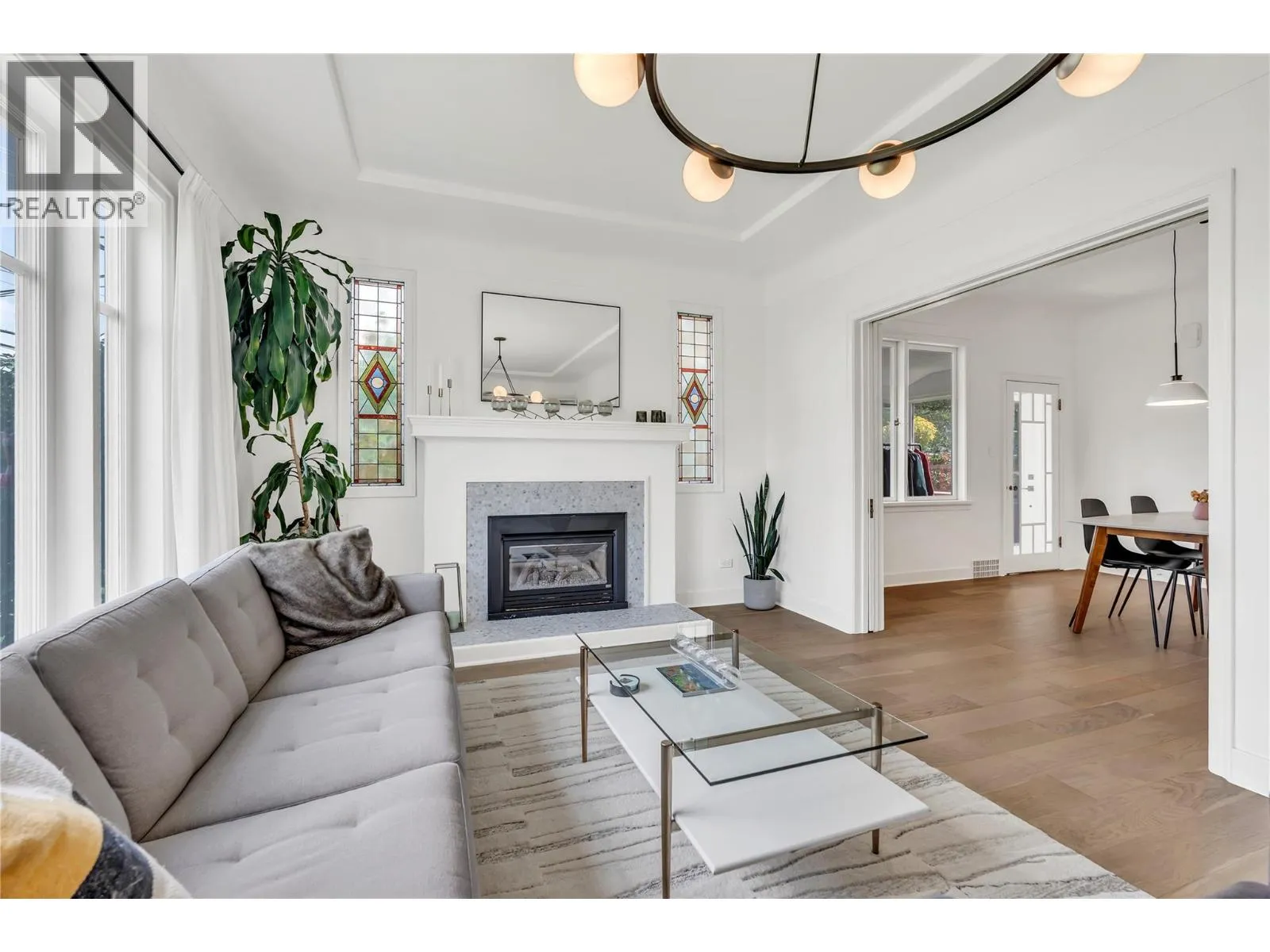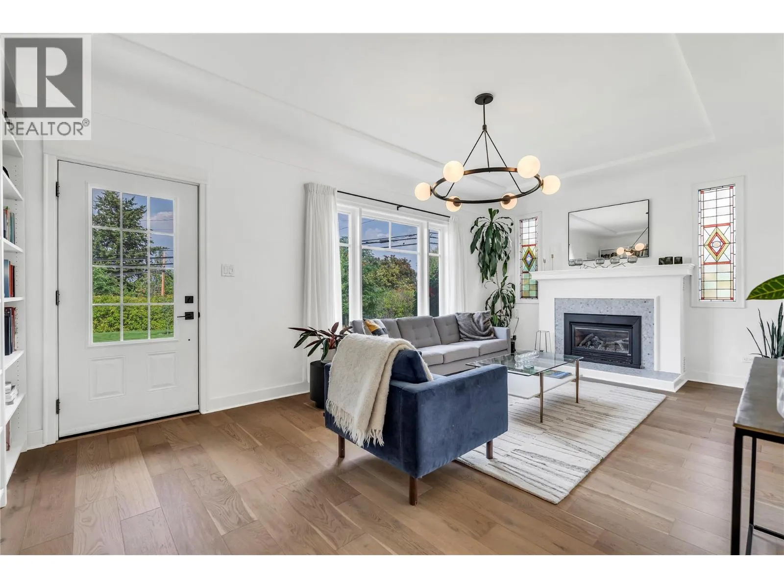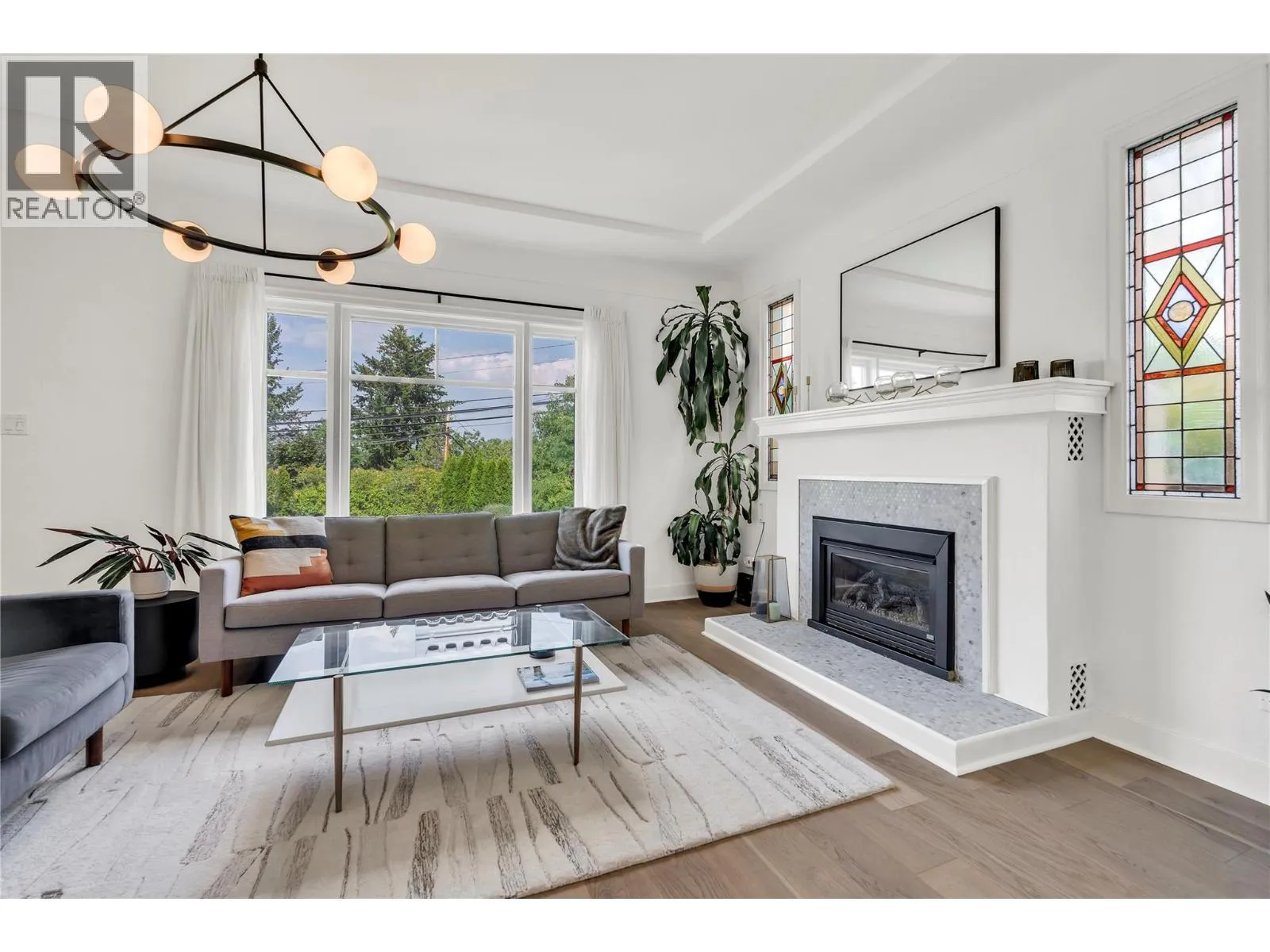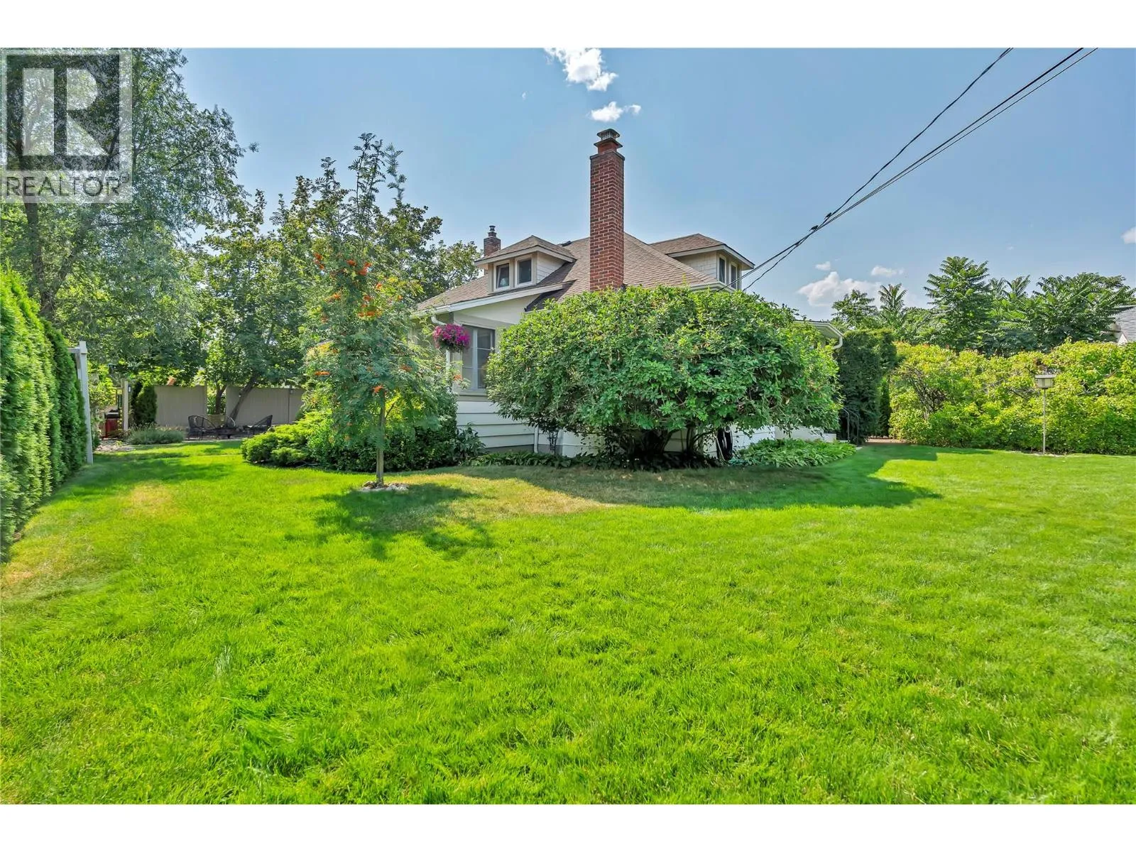 Step into this beautifully renewed character home, where timeless charm meets thoughtful upgrades. Perfectly positioned just steps from downtown Summerland and all amenities, this bright and spacious home offers a rare blend of convenience and privacy. Mature trees, lush landscaping, and a secluded courtyard create a serene retreat, while the 0.26-acre lot provides an abundance of outdoor living space. Inside, high ceilings, natural light, and generous room sizes give the home a grand, welcoming feel. Many period details remain, now complemented by modern comforts like engineered hardwood flooring and new windows. The formal living room features a gas fireplace framed by stained glass windows, and the kitchen offers new cabinetry, appliances, and a cozy breakfast nook overlooking the courtyard. The dining and living areas flow together beautifully for relaxed gatherings. The main floor includes an oversized primary bedroom, a spacious den that could be converted back into a bedroom, and a fully renovated waterproofed bathroom with walk-in shower. Upstairs, youâll find two additional bedrooms & second updated bathroom. Storage is plentiful with a detached garage & storage room off the laundry. The homeâs enclosed porch provides a charming and practical entry. Recent upgrades also include fresh landscaping along with a new garage roof and garage door. This is an exceptional opportunity to own a move-in-ready home in one of Summerlandâs most walkable and sought after locations. (id:27476)