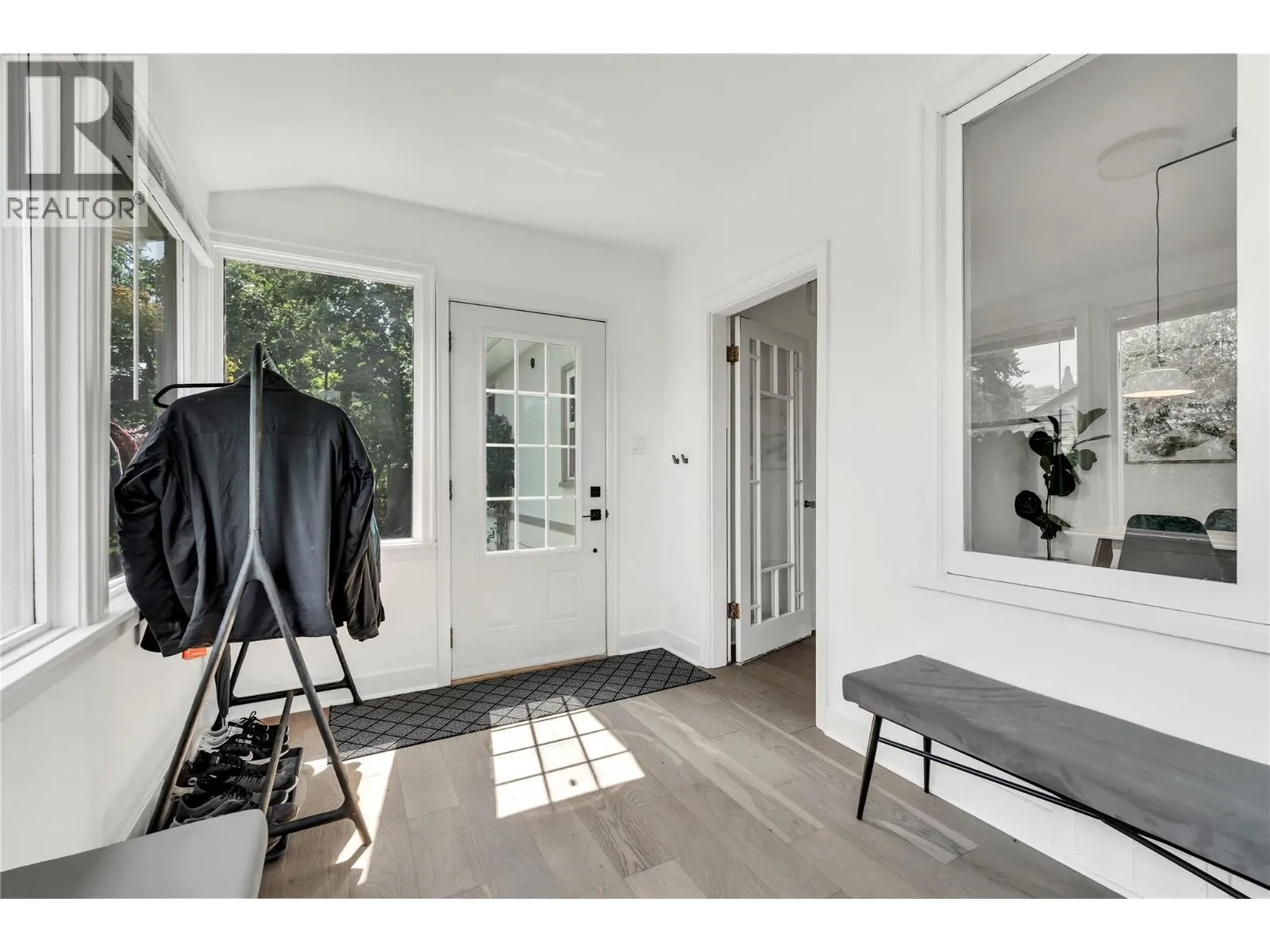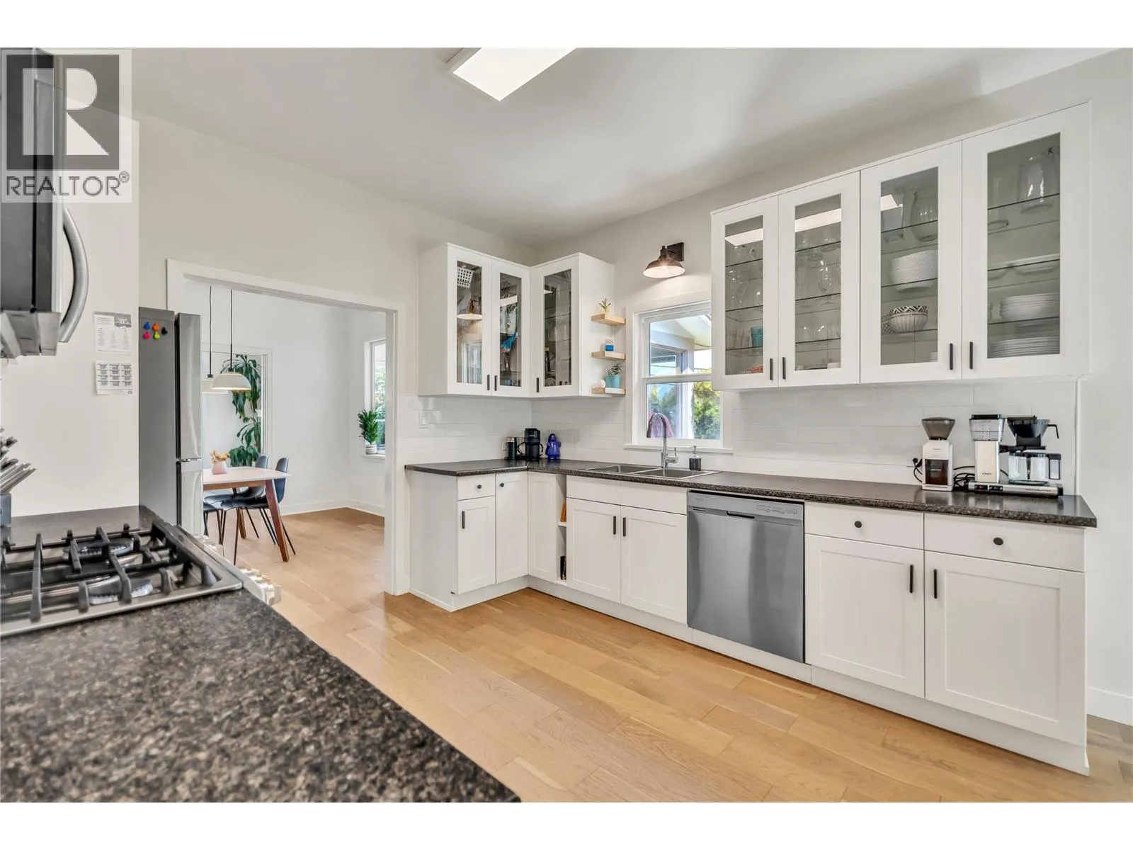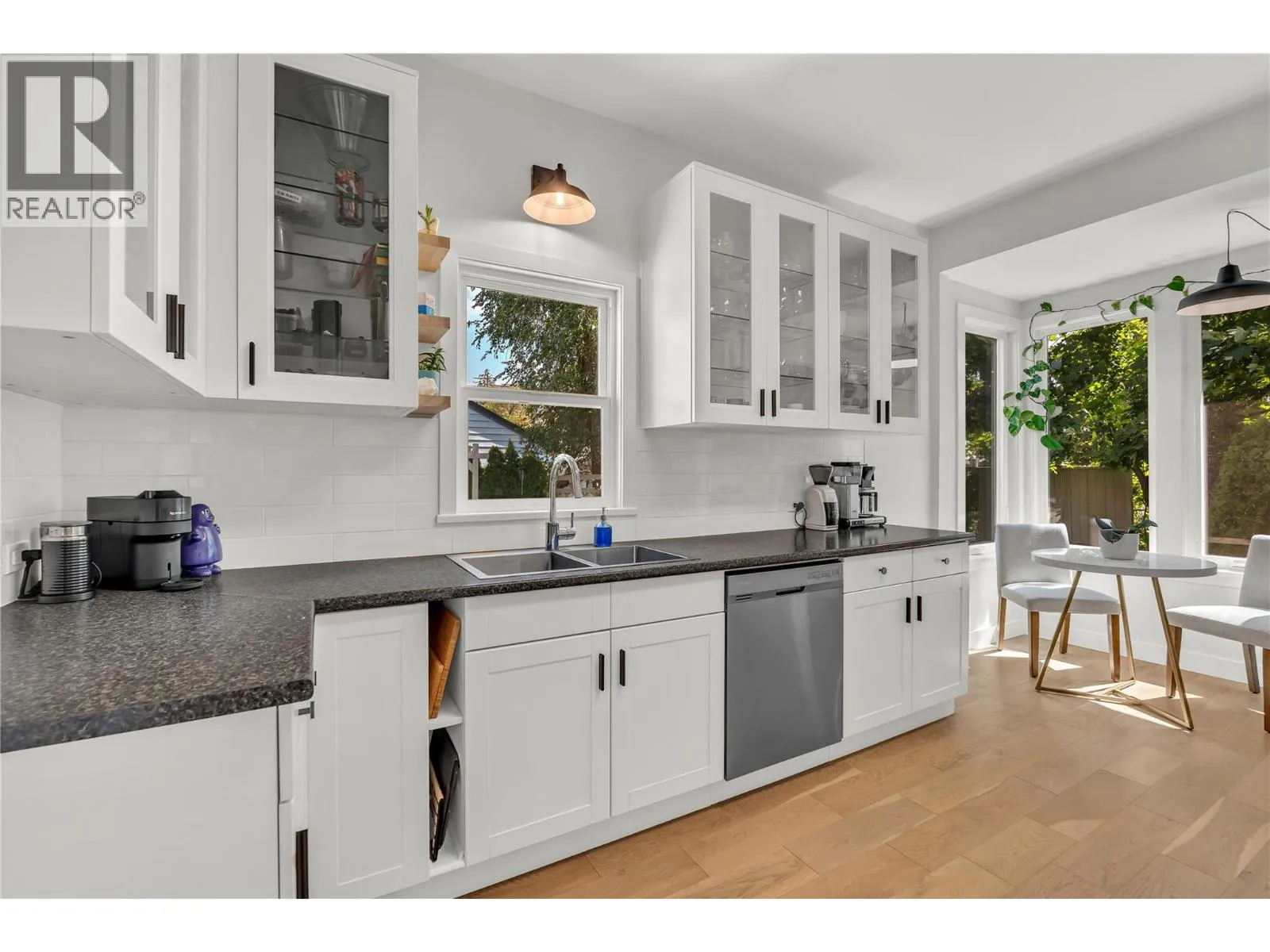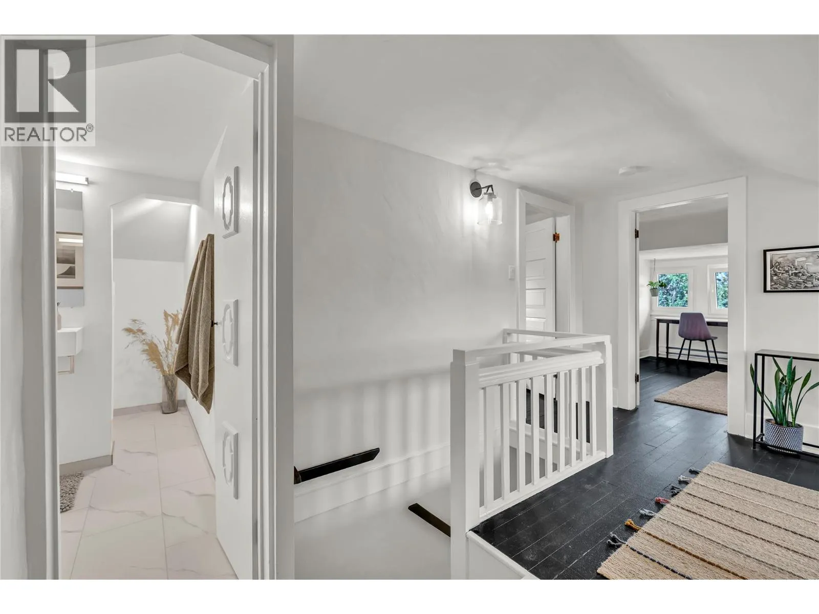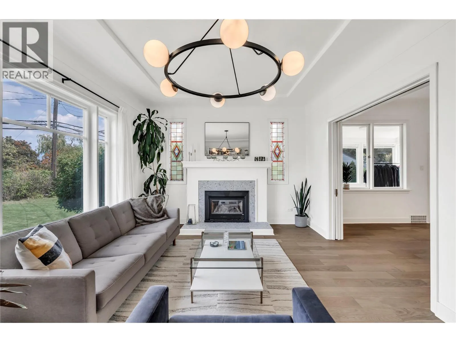 Step into this beautifully renewed character home, where timeless charm meets thoughtful upgrades. Perfectly positioned just steps from downtown Summerland and all amenities, this bright and spacious home offers a rare blend of convenience and privacy. Mature trees, lush landscaping, and a secluded courtyard create a serene retreat, while the 0.26-acre lot provides an abundance of outdoor living space. Inside, high ceilings, natural light, and generous room sizes give the home a grand, welcoming feel. Many period details remain, now complemented by modern comforts like engineered hardwood flooring and new windows. The formal living room features a gas fireplace framed by stained glass windows, and the kitchen offers new cabinetry, appliances, and a cozy breakfast nook overlooking the courtyard. The dining and living areas flow together beautifully for relaxed gatherings. The main floor includes an oversized primary bedroom, a spacious den that could be converted back into a bedroom, and a fully renovated waterproofed bathroom with walk-in shower. Upstairs, youâll find two additional bedrooms & second updated bathroom. Storage is plentiful with a detached garage & storage room off the laundry. The homeâs enclosed porch provides a charming and practical entry. Recent upgrades also include fresh landscaping along with a new garage roof and garage door. This is an exceptional opportunity to own a move-in-ready home in one of Summerlandâs most walkable and sought after locations. (id:27476)