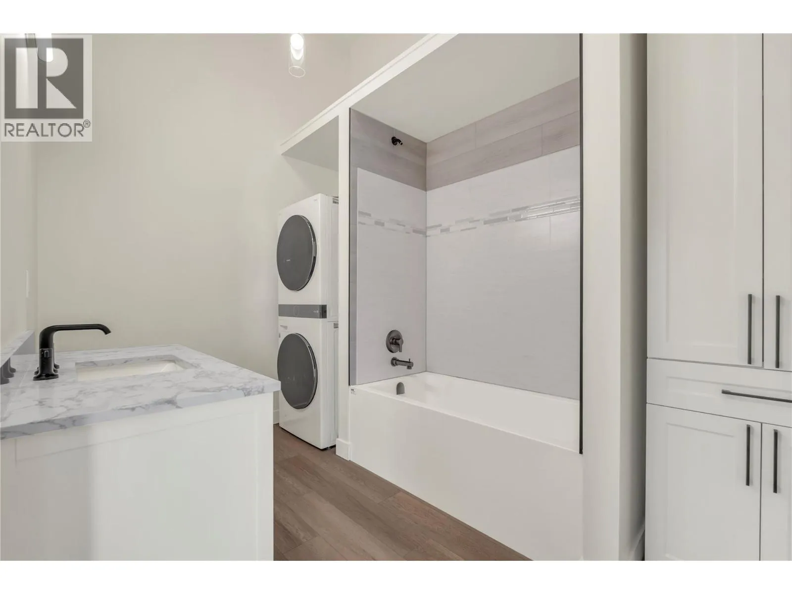 This 1/2 duplex is situated in the picturesque town of Summerland and offers low-maintenance living suitable for multi-generational families, room to work from home & as a potential VRBO/Airbnb in the detached carriage house. The main residence features a modern open-concept design with 9-foot ceilings, a kitchen, living/dining area, two-piece bathroom, foyer, storage space, and a spacious covered deck overlooking Giants Head Mountainâperfect for relaxation. Upstairs, vaulted ceilings and ample natural light enhance two bedrooms, a full bathroom with laundry, a family room that leads to another covered deck, and a primary bedroom complete with a walk-in closet and a four-piece ensuite featuring an oversized walk-in shower. The lower level provides a separate studio space ideal for a home office or additional family accommodation, offering an open area with kitchen, dedicated laundry facilities, and a four-piece bathroom. The property also includes a legal detached carriage house/garage. Above the garage, there is a legal one-bedroom unit with a kitchen, living/dining area, four-piece bathroom, and laundry. Insulated concrete form (ICF) construction between units ensures superior soundproofing and enhanced fire safety for both the duplex and the carriage house/garage. All today to view. No PTT on this new home. Call today to view. (id:27476)
