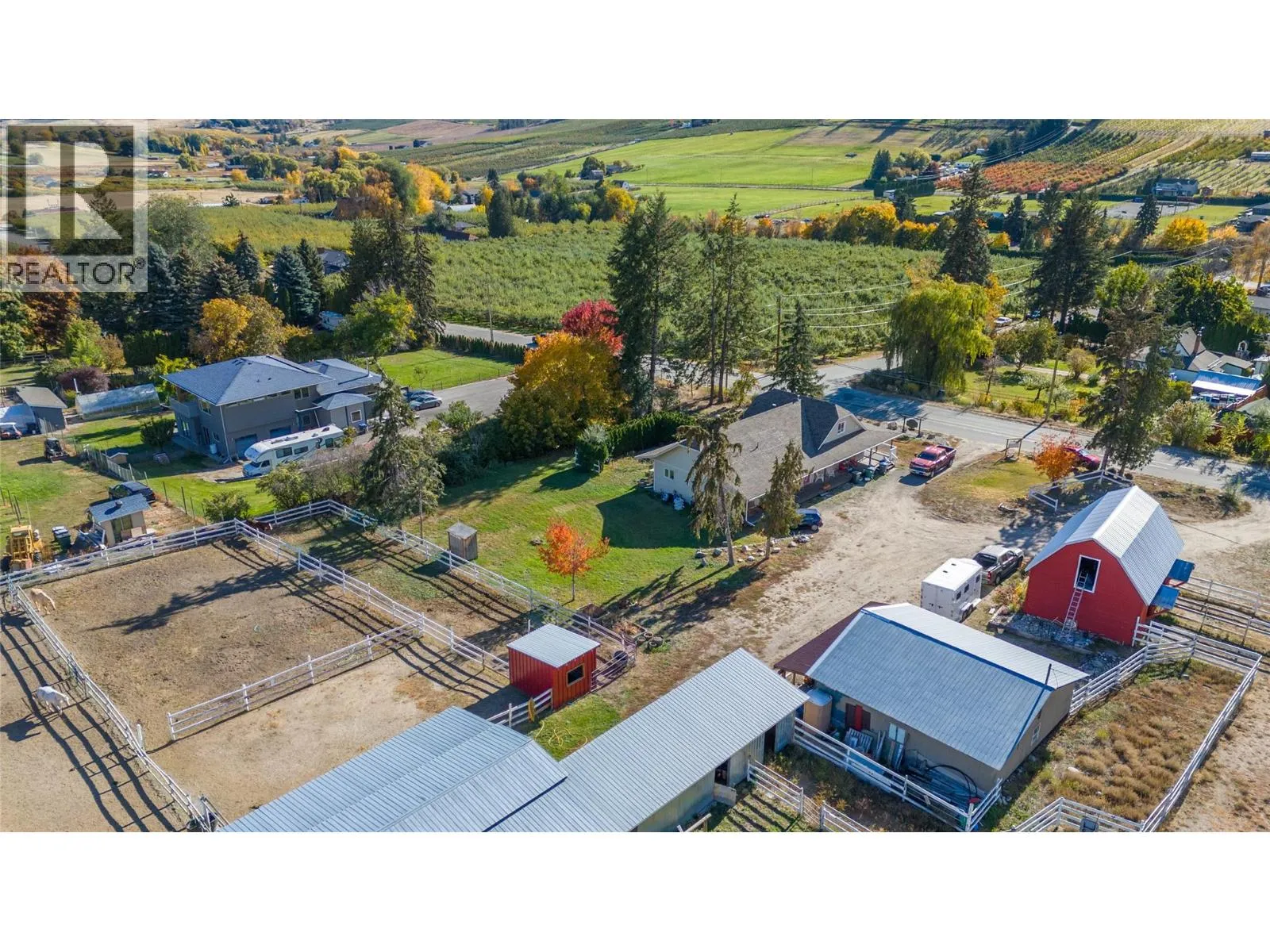 Lots of options on this 5-acre property offers views of Prairie Valley and has trails nearby. The farmhouse features 5 bedrooms and two kitchens. The original farmhouse includes a covered front porch. The main level comprises a living room, kitchen, full bathroom, laundry room, and bedroom. Upstairs has 2 additional bedrooms, while the basement provides storage space and additional crawlspace. Back on the main level through the double arched custom wood doors, there are 2 more bedrooms, a bathroom, a living room with a stone wood-burning fireplace, the additional kitchen, French doors to the deck, and access to the side covered patio. The property is equipped for horses with multiple paddocks, a riding ring, an agility area, and several stables with power and water. The ""Red Barn Ranch"" can generate income through horse boarding or keep all your horses and farm animals and includes a building known as ""The Boot"" which can host events and parties. Also the additional living space could be income generating VRBO for ""country accommodations"" minutes from downtown. The property is within the town limits and provides access to Crown land and riding areas. It is located near Rodeo Grounds, Trans Canada Trail, and within riding distance to wineries and cideries. Contact today for a viewing. All measurements are taken from iGuide. (id:27476)