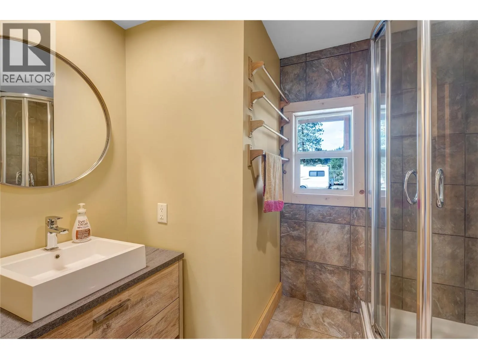 Nestled on a private 2.81 acre lot, this 3 bedroom plus flex room, 2 bathroom rancher is move-in ready. The open concept living space features vaulted ceilings, a sunken family room, light oak kitchen cabinets and custom concrete countertops. Hardwood flooring in the living area and a Blaze King wood stove adds to the comfort. The master suite includes a 3-piece ensuite with a freestanding soaker tub, and French doors that lead to a covered deck. Two of the bedrooms boast custom loft spaces, offering additional character and functionality. The property borders the Trans Canada Trail, so in just steps you have unlimited access to hiking, biking, ATV and horseback trails. The property also includes a detached workshop and a separate outbuilding that was used for hay/tack and additional storage. Ample space for all your toys. Multiple decks surround the home, perfectly positioned in an East/West valley to maximize sun exposure. A large, secure dog run with 6 foot chain link fence and access to a separate enclosed area within the workshop. Located within minutes from downtown Summerland, on a quiet, no-thru road. This property is located on the Summerland school bus route. Water license is in place on Trout Creek. Stay connected with Telus fibre optic internet. Deck is conveniently wired for a hot tub. All measurements are taken from Iguide. Call today to schedule a viewing. (id:27476)