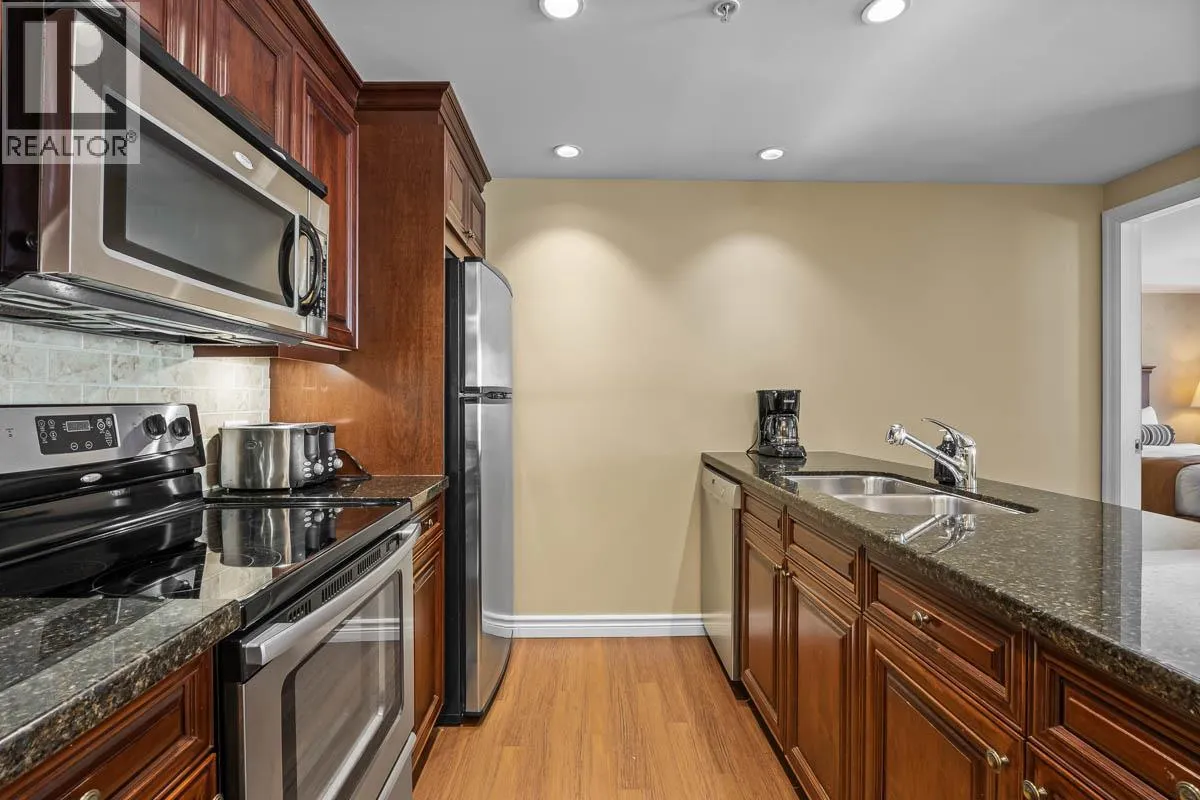 Quarter Ownership in this luxury two-bedroom suite in The Residences at The Sun Peaks Grand Hotel and Conference Centre. This luxurious, fully furnished apartment provides you with true ski-in, ski-out convenience in a central location in the heart of the village, with amenities such as a slopeside swimming pool, hot tubs, gym, sauna, restaurants, ski & bike valet, room service, heated underground parking and more. Perfect for extended stays, this vacation home includes a full kitchen with granite countertops and stainless-steel appliances, spacious dining/living area that opens onto a private deck with mountain views. Features two sumptuous bathrooms with soaker tub and separate shower, central air conditioning, private in room laundry and plenty of closet space. Professional in-house property management team is in place for revenue opportunities when you are not there. GST applicable. (id:27476)