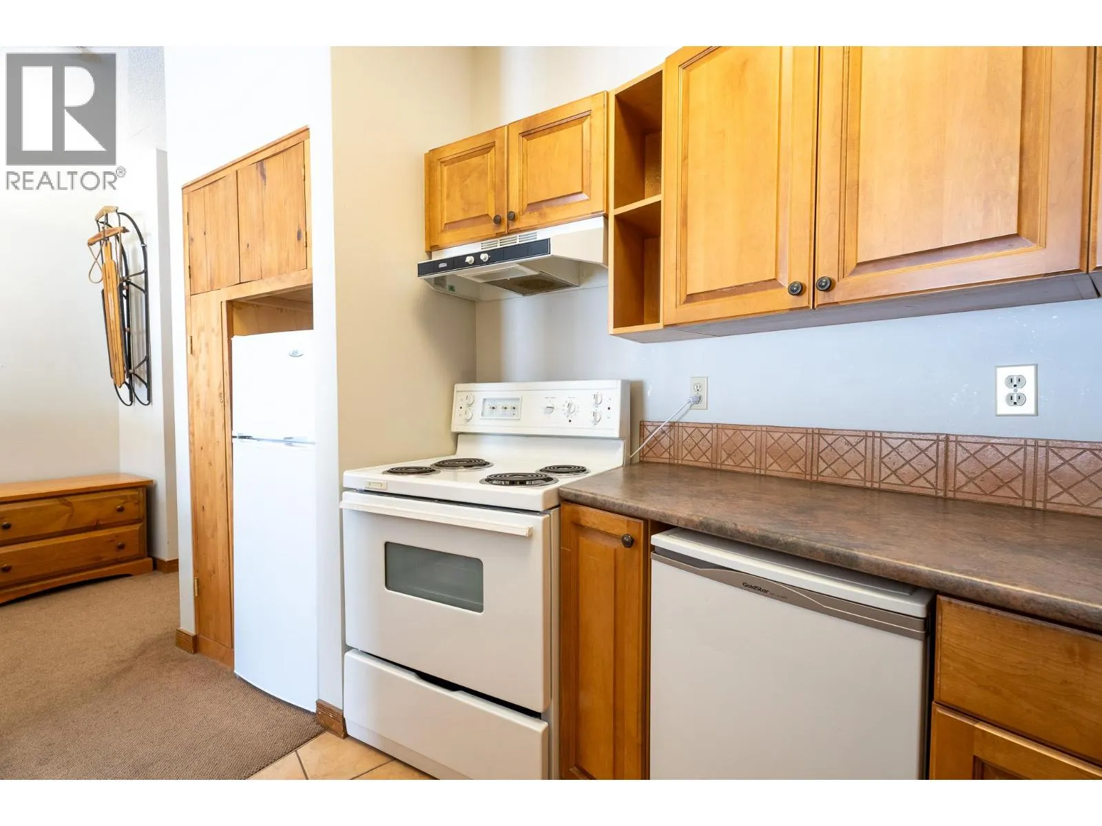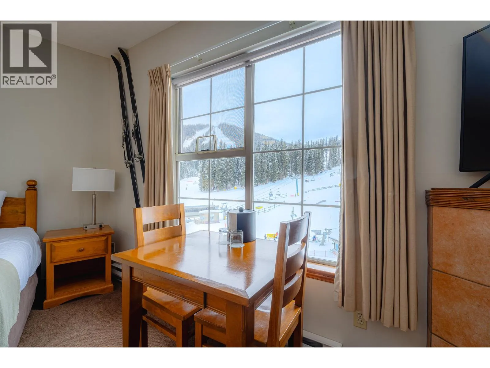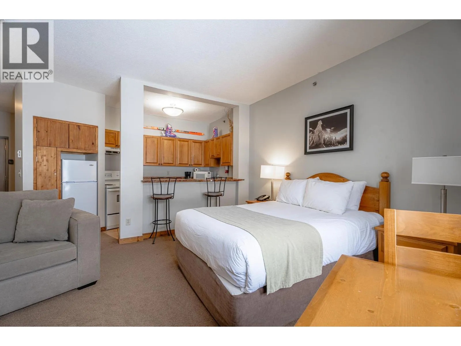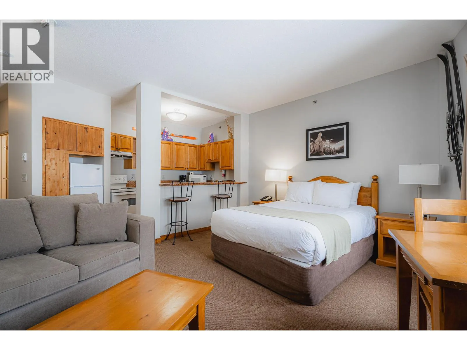This bright and stylish deluxe studio apartment boasts a full kitchen with ample cabinetry and a private ownerâs storage locker. The inviting open layout, complete with a cozy fireplace, comfortably accommodates four guests. Enjoy breathtaking views of the main ski lifts and runs right from your window. Perfectly positioned in a prime ski-in/ski-out slope side location, this unit also offers a dedicated ski/bike storage room, secure underground parking, a hot tub, a fitness center, and easy access to restaurants and all village amenities. Sundance Lodge is at the heart of the Resort, close to shopping and year-round activities. Owners benefit from up to 180 days of personal use annually, with the peace of mind that front desk management takes care of everything in their absence. This unit may be sold together with the neighboring studio, #406, and comes fully furnished. (id:27476)