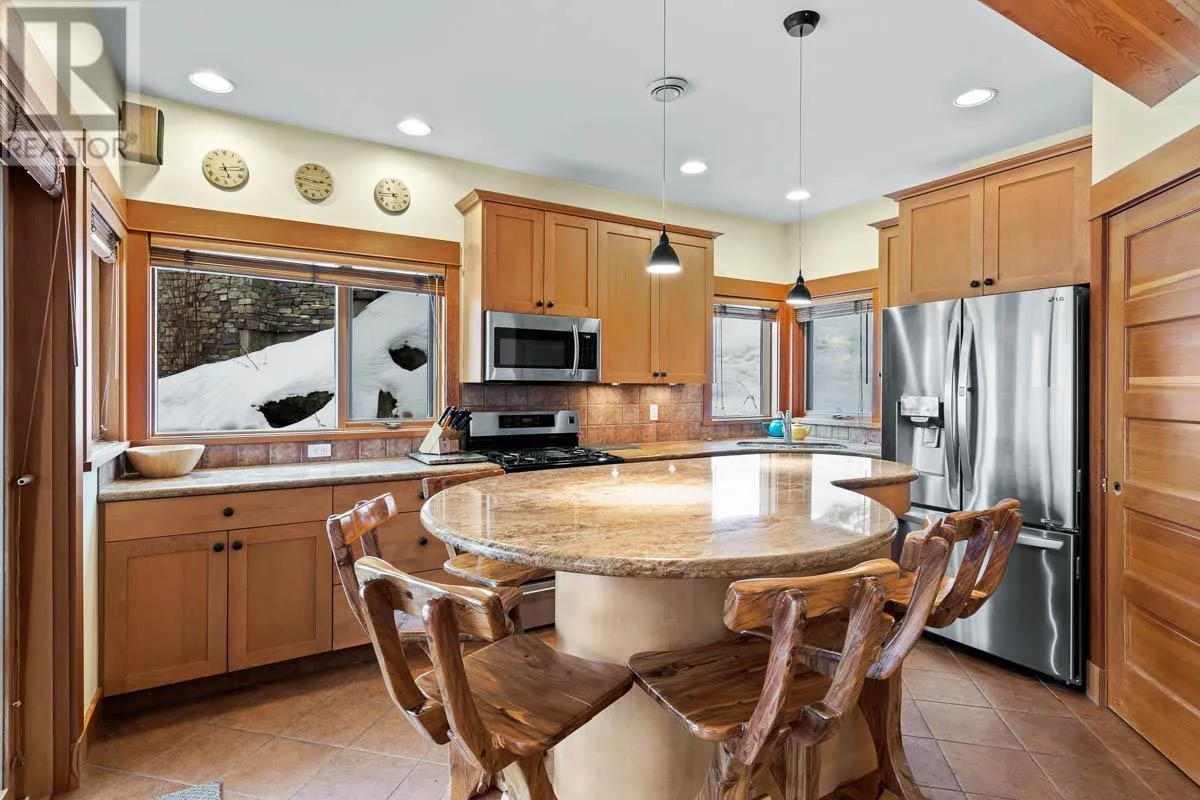 This landscaped slope side mountain home offers the ultimate ski-in, ski-out convenience as one of the best locations on the mountain, Sundance Estates. Superior design and finishing with quality construction, with extensive use of stone, granite, hardwood and tile. This spectacular home radiates warmth and intimacy with the most incredible setting in Sun Peaks and presents and exceptional opportunity to own one of the very best in resort living. Some of the features include soaring windows, radiant in floor heat, HRV, games room, inviting hot tub, oversized double car garage and beautiful sundeck directly off the kitchen which fronts right onto the ski run. With its warm woods, natural light, and all-encompassing mountain views, this mountain retreat is warm and cozy while accommodating a crowd. In addition to 4 bedrooms, plus den, there is a self-contained two-bedroom legal suite that can be rented or used for guests and family. From the village you can get onto the lift and step off at home directly into your private ski room. It doesn't get any easier. This home is made for entertaining, built with pride and is ready for you and your family. (id:27476)