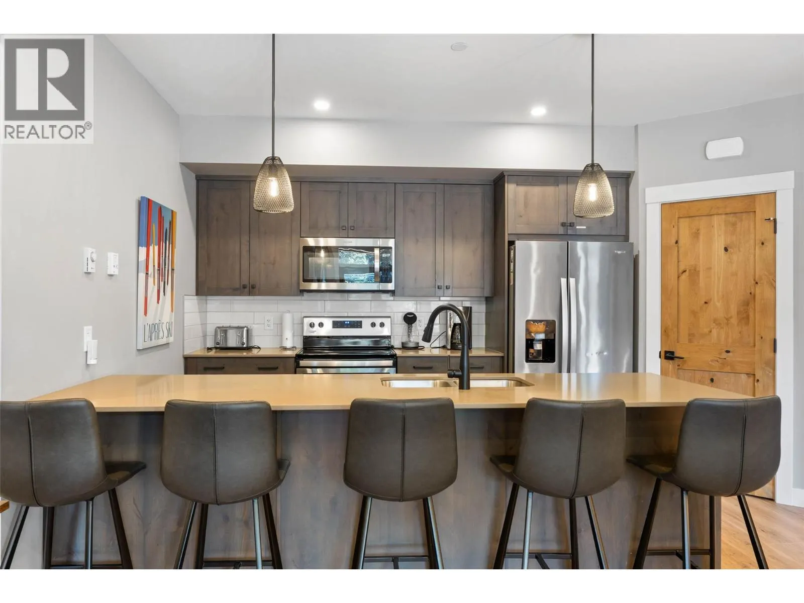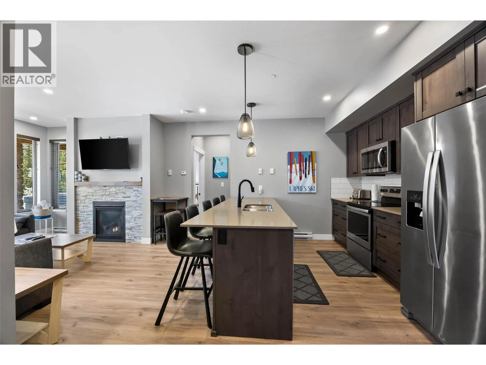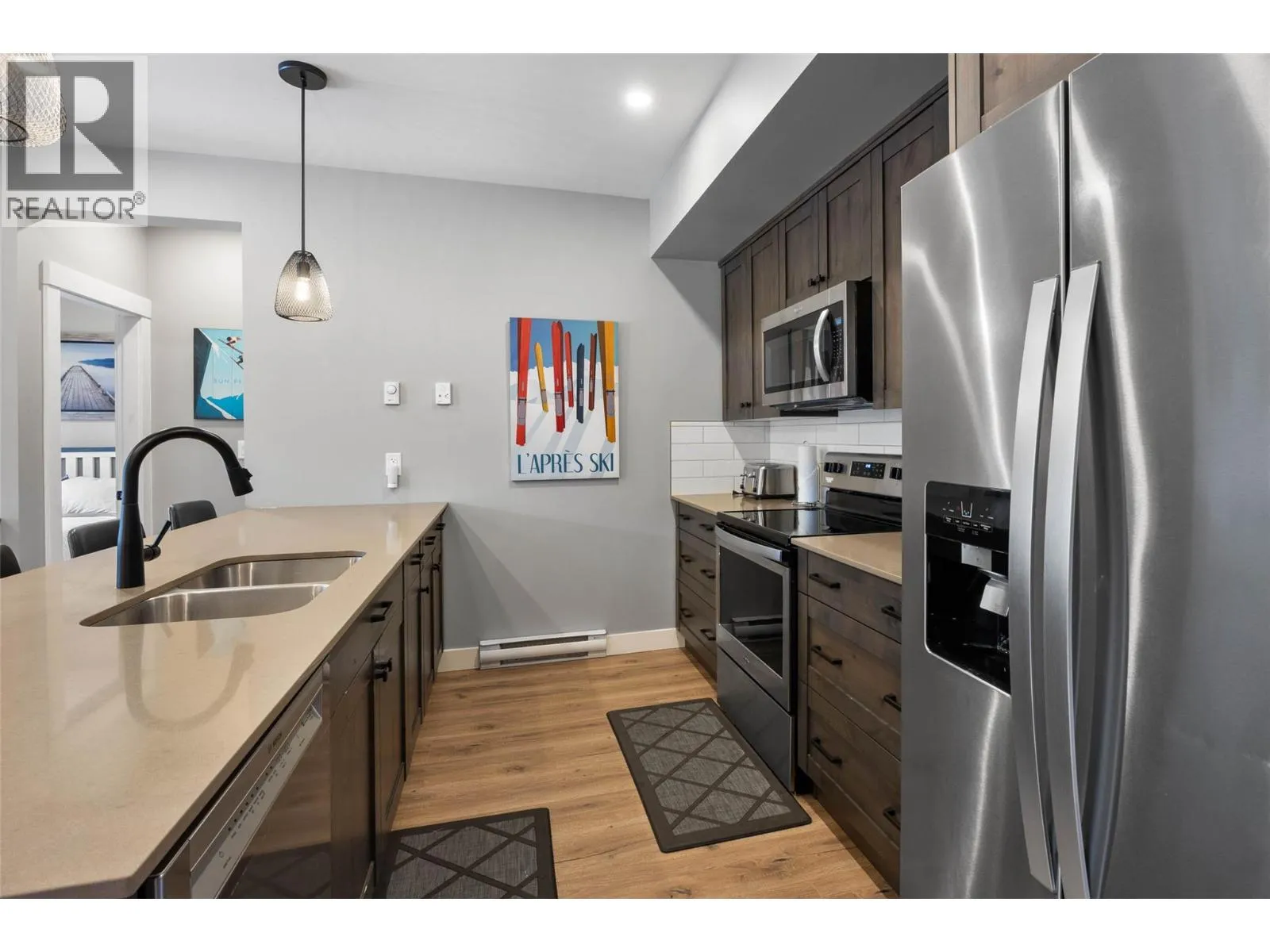 Welcome to Echo Landing! This modern 2019-built condo offers an unbeatable four-season location. Enjoy true ski-in/ski-out access to the Orient and Morrisey chairlifts and an extensive network of Nordic and mountain bike trails. Inside, you'll find a spacious kitchen perfect for entertaining, featuring elegant quartz countertops, plenty of cabinetry, and an extra-large food pantry. Unwind after a day on the mountain in your private hot tub while taking in the outstanding panoramic views of Mt. Morrisey. With no rental restrictions, this fully furnished property offers great revenue potential, making it a perfect turnkey investment or personal mountain retreat. Located just a short walk from all village amenities and perfectly positioned across the street from the new tennis/pickleball courts and the future East Village hub. All measurements approx. GST applies. (id:27476)