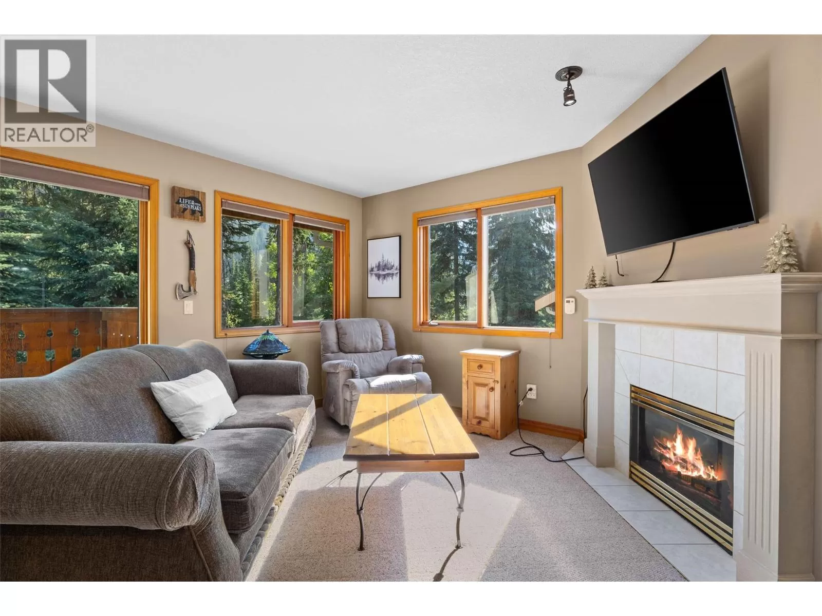 Perched along the second fairway, this south-facing end unit is a private mountain sanctuary where timeless comfort meets alpine elegance. Bathed in natural light with extra windowing, the 3-bedroom, 3-bath retreat showcases sweeping views of the surrounding peaks and ski runs, while an open-concept layout invites connection and effortless entertaining. A spacious living room with a cozy fireplace flows into the dining area, and sun decks on both sides of the home create seamless indoor-outdoor living for summer gatherings and après-ski evenings alike. On the lower level, a self-contained space with its own entrance offers the perfect private haven for guests or a luxurious retreat for owners. The garage is thoughtfully designed as more than just storage, featuring an infrared sauna, and dedicated ski tuning area to elevate your mountain lifestyle. Steps from the valley trail and just a short walk to the village, chairlifts, and Nordic trails, this residence embodies resort-style living at its finest. Offered fully furnished with GST paid, it is move-in ready for your next chapter in the mountains. (id:27476)