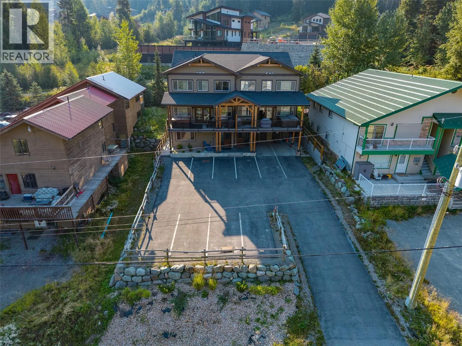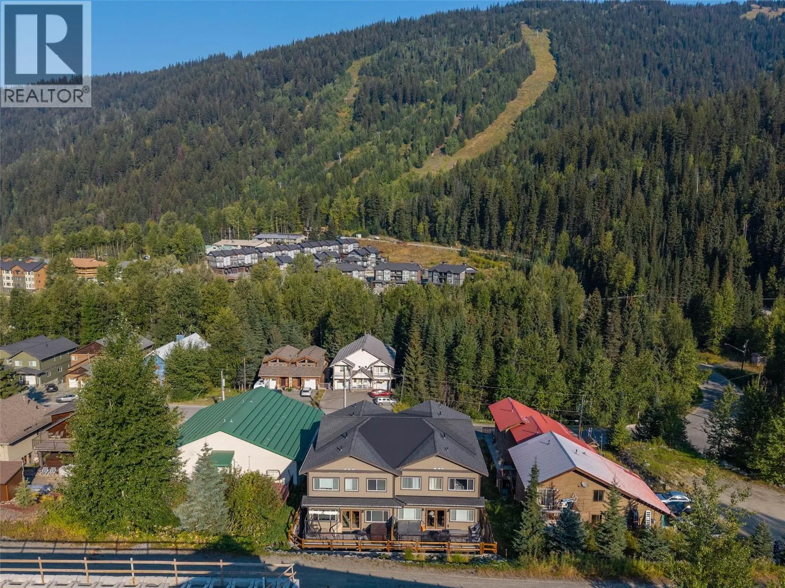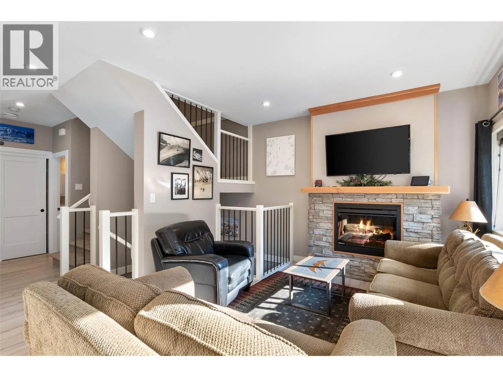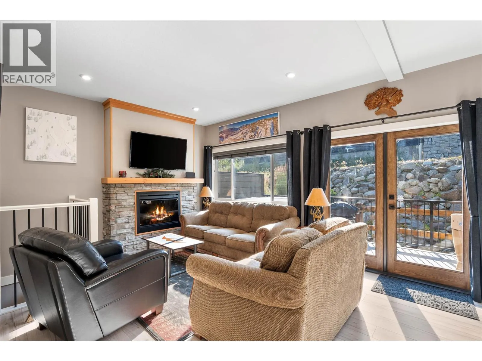 No rental restrictions! Don't miss out on this ski-in, 4 bedroom, 3 bathroom top floor condo within a modern 5 plex conveniently located near the Magic Cattle Guard Diner, Ohana fresh deli & market, the pharmacy, & more! Boasting 1,591 sq ft of living, the main floor features a bedroom, powder room and warm open concept designed spacious kitchen complete with quartz counters, vinyl plank flooring, airy dining space, living room with cozy fireplace & plenty of natural light from ample windows & double glass doors that open to grand sundeck with hot tub. Top floor features a primary bedroom with vaulted natural wood tongue & groove ceiling and ensuite bath with spacious tiled shower. There are 2 additional bedrooms and full bath with convenient laundry on this level. The lower level contains a large mud room/storage room, perfect for bikes & skis. 2 parking stalls, visitor parking and RV & boat parking in shared lot at the end of the street. 6 Appliances and hot tub. GST N/A. See listing for video & 3D tours. With the low strata fee of 241.50/mo, this is a perfect opportunity for a savvy investor! (id:27476)