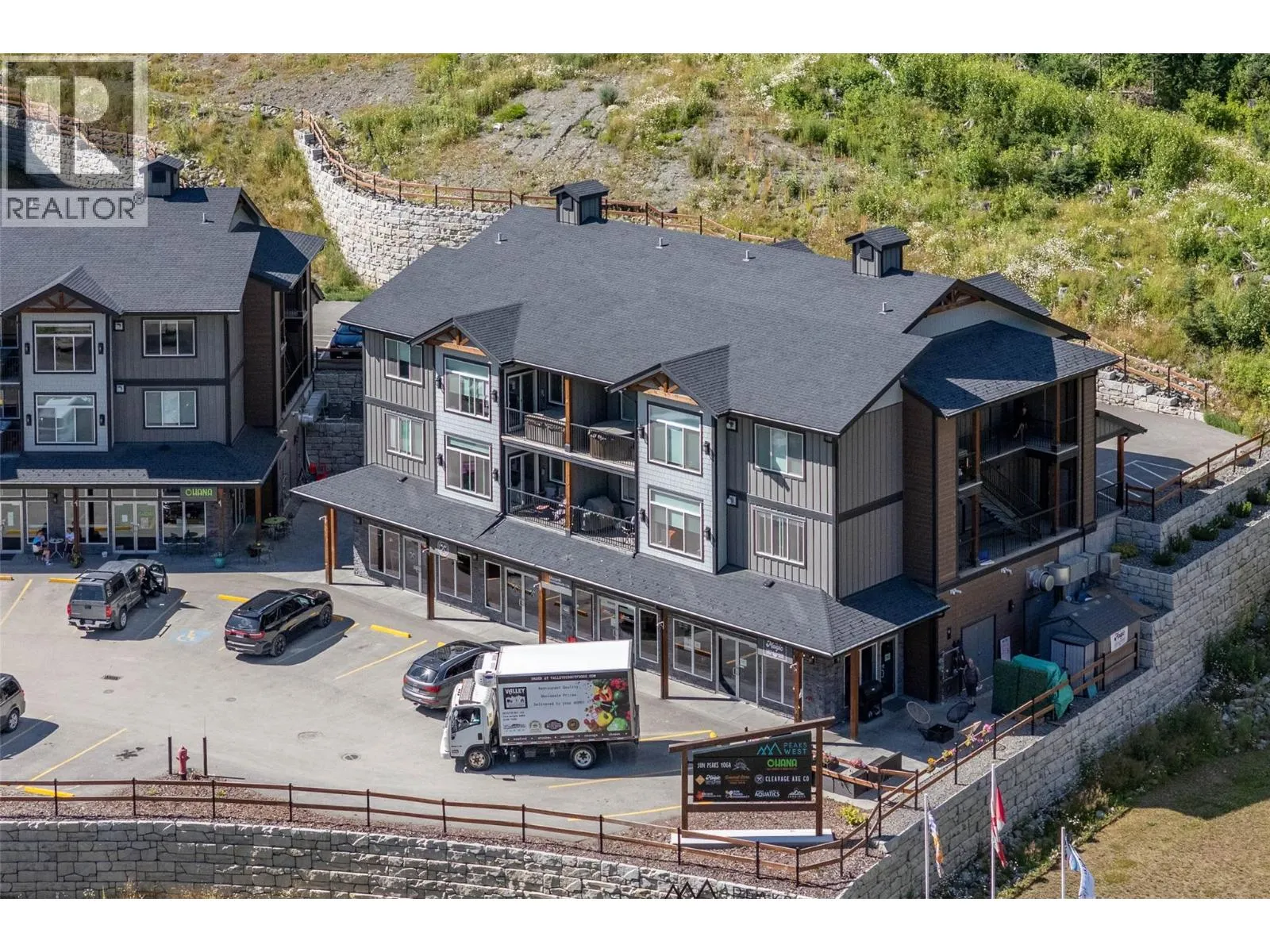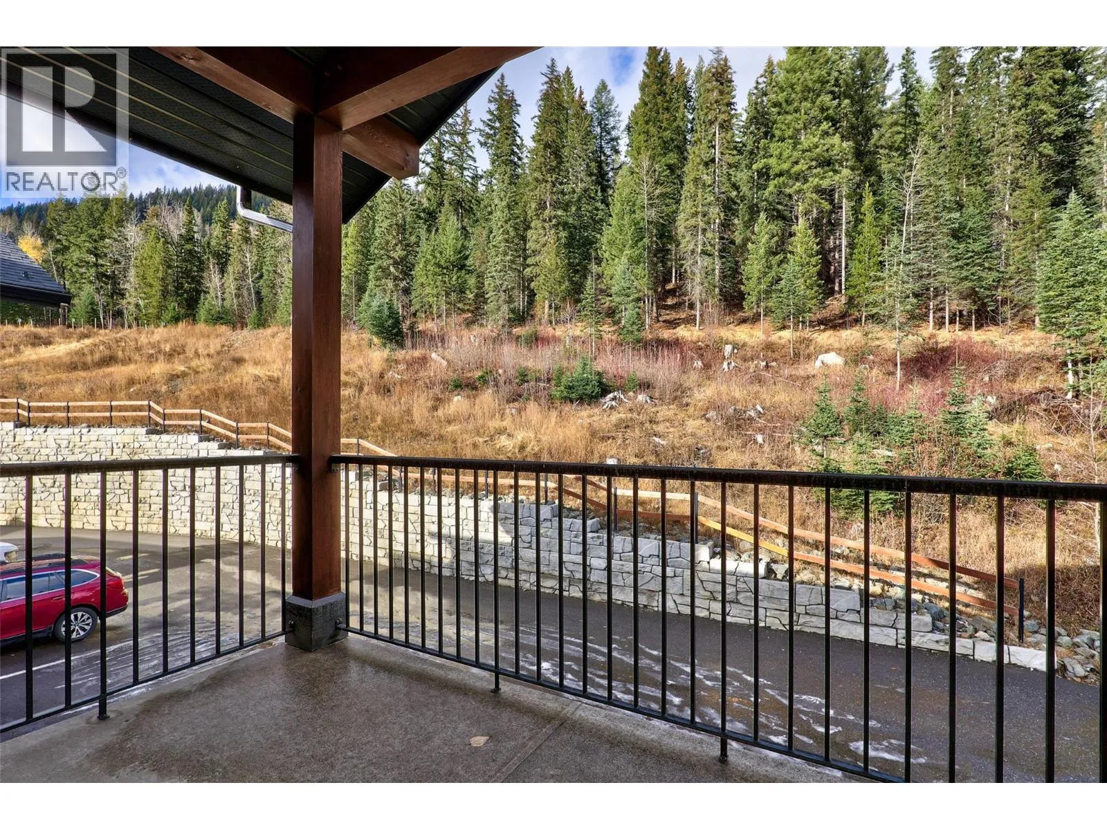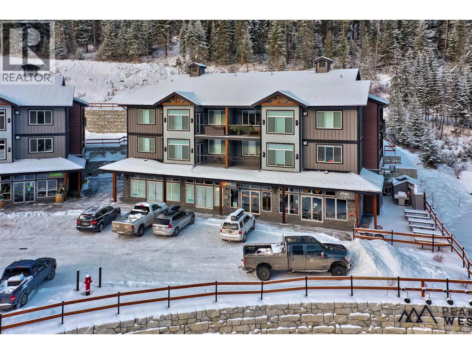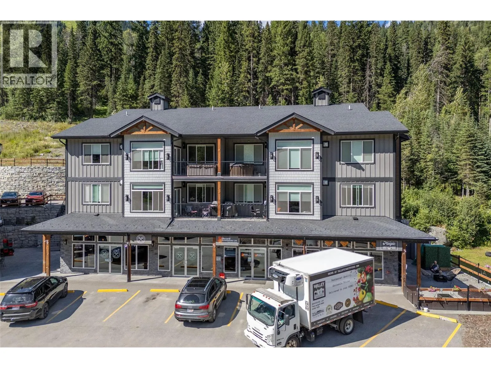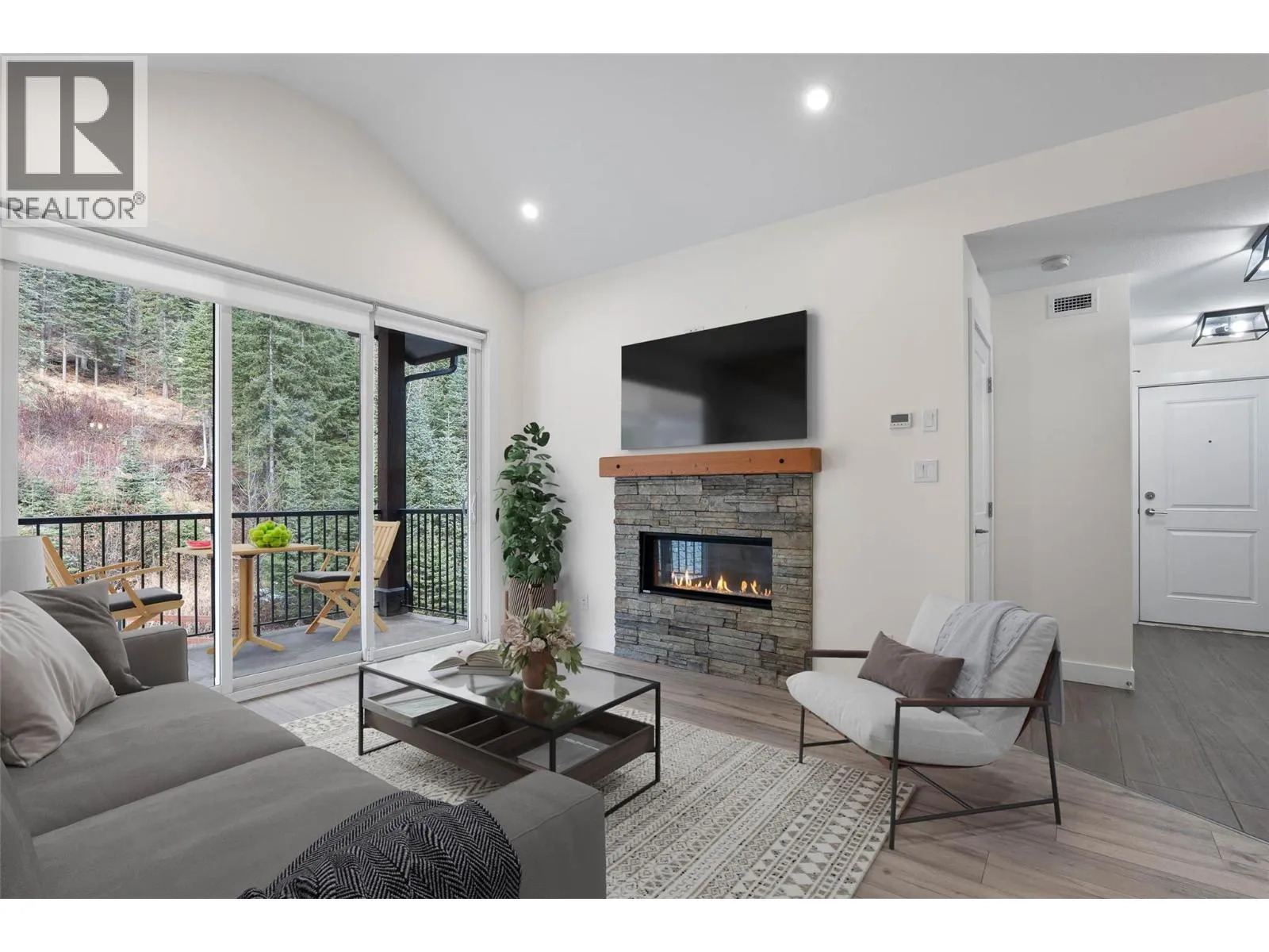 NO rental restrictions & NO GST applicable! Ski right to your front door in this top floor, 2 bedroom, 2 bathroom condo featuring modern elegance and thoughtful design, including a private oversized 1 car garage and large ski & bike storage closet for all your equipment storage needs. Upgraded finishings include cream marble quartz kitchen counters, LG upgraded appliance package with gas range, stone fireplace surround, prewiring for a hot tub and propane outlet on deck for BBQ. The living room features a vaulted ceiling, creating an open and airy ambiance, while the cozy propane fireplace adds warmth and charm. Step onto the covered balcony and immerse yourself in nature with views to the wooded forest landscape. The oversized 1-car garage provides ample space for your vehicle while additional outdoor parking ensures convenience for guests. A dedicated ski outdoor storage closet ensures your equipment is always ready for action. Situated within the esteemed Peaks West complex, this condo offers more than just a home; it presents a community of convenience. Enjoy easy access to amenities such as the Ohana deli/cafe market, Magic Cattleguard restaurant/pub, pharmacy and more â all just steps away from your front door! Convenient ski-in and out access to the Burfield chairlift. GST N/A. Please note photos with furnishings are virtually staged. (id:27476)