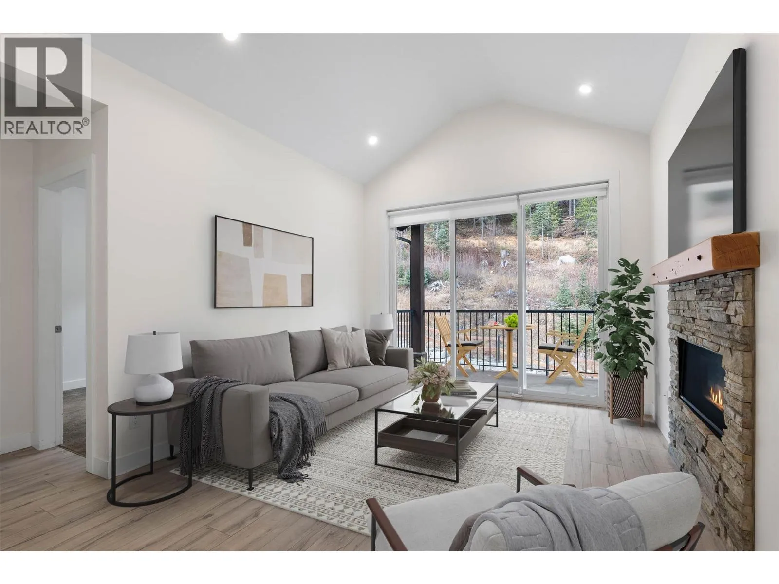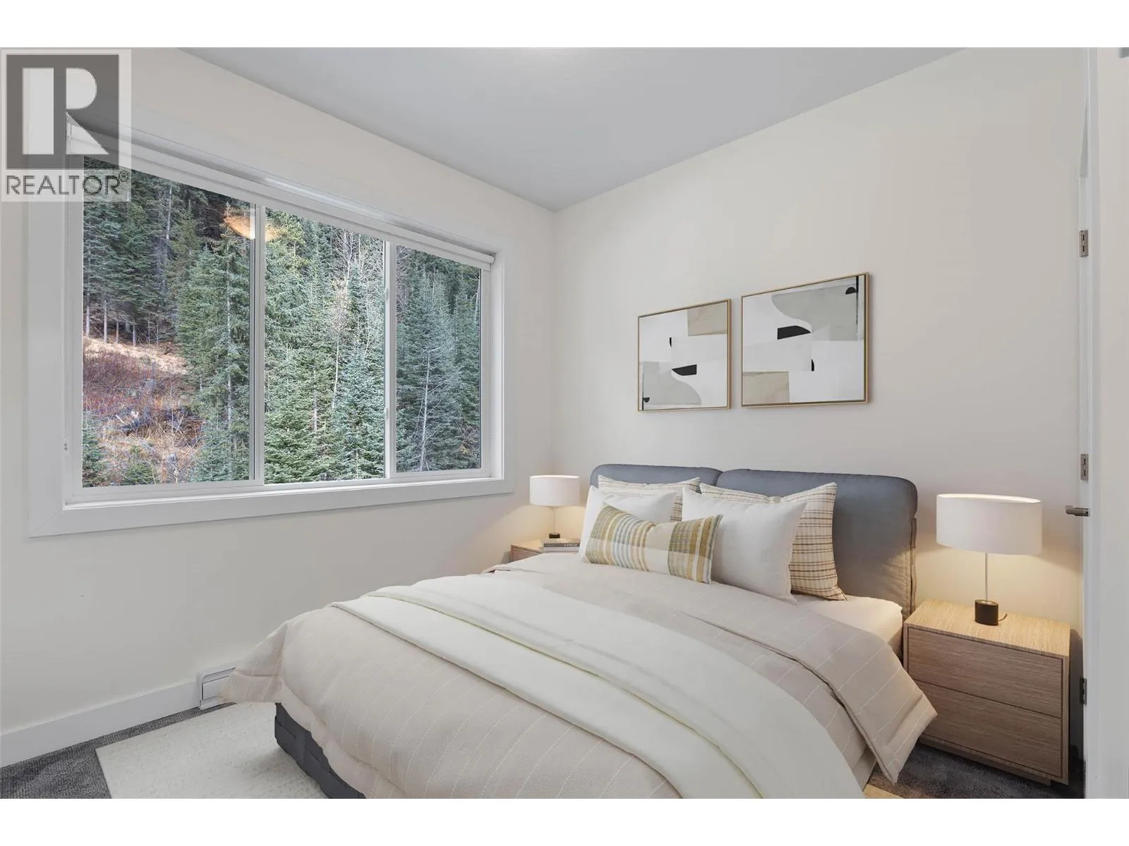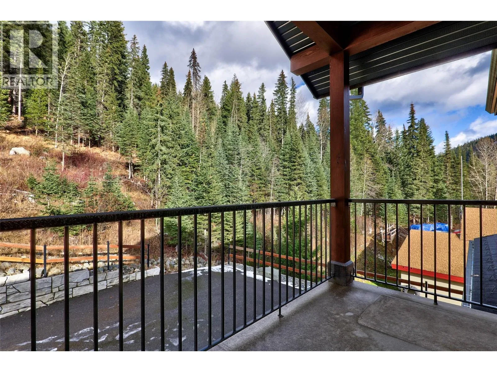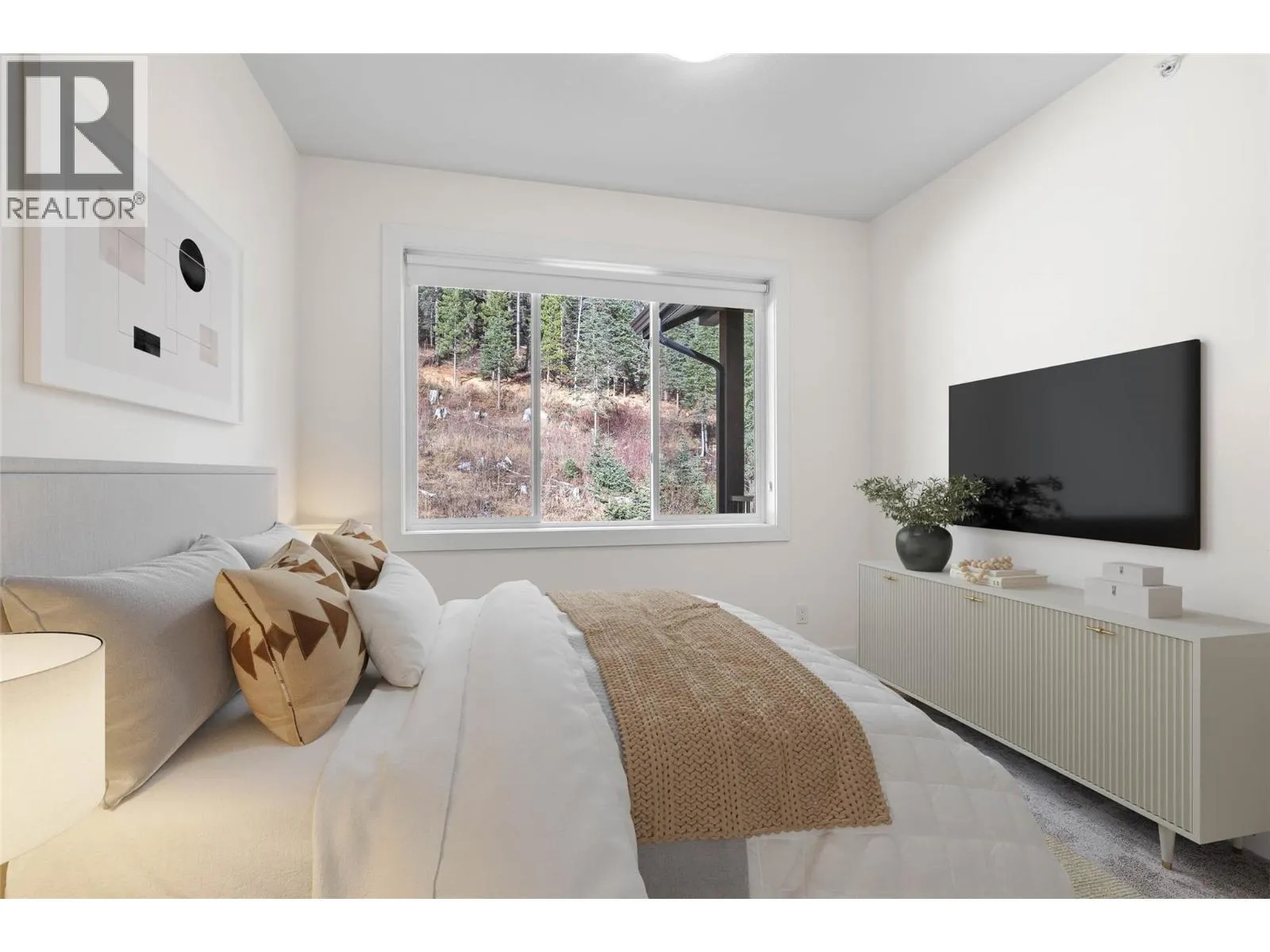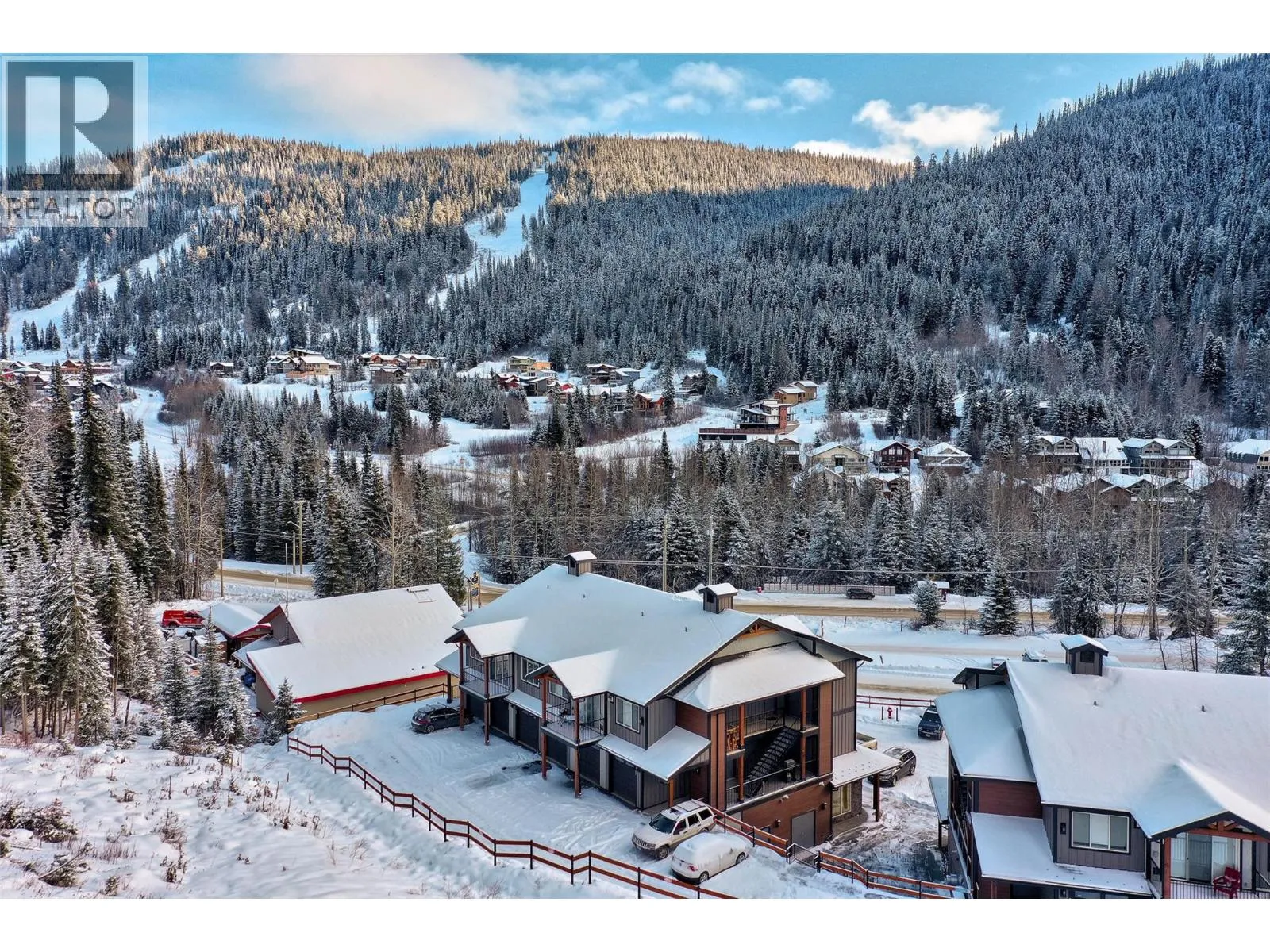NO rental restrictions & NO GST applicable! Ski right to your front door in this top floor, 2 bedroom, 2 bathroom condo featuring modern elegance and thoughtful design, including a private oversized 1 car garage and large ski & bike storage closet for all your equipment storage needs. Upgraded finishings include cream marble quartz kitchen counters, LG upgraded appliance package with gas range, stone fireplace surround, prewiring for a hot tub and propane outlet on deck for BBQ. The living room features a vaulted ceiling, creating an open and airy ambiance, while the cozy propane fireplace adds warmth and charm. Step onto the covered balcony and immerse yourself in nature with views to the wooded forest landscape. The oversized 1-car garage provides ample space for your vehicle while additional outdoor parking ensures convenience for guests. A dedicated ski outdoor storage closet ensures your equipment is always ready for action. Situated within the esteemed Peaks West complex, this condo offers more than just a home; it presents a community of convenience. Enjoy easy access to amenities such as the Ohana deli/cafe market, Magic Cattleguard restaurant/pub, pharmacy and more â all just steps away from your front door! Convenient ski-in and out access to the Burfield chairlift. GST N/A. Please note photos with furnishings are virtually staged. (id:27476)