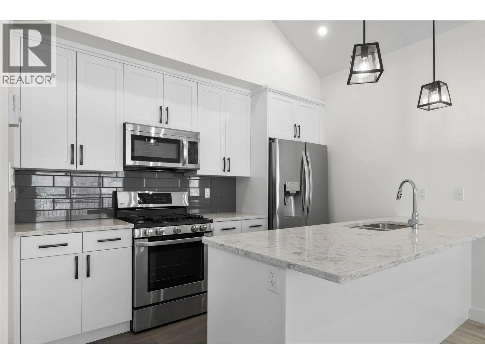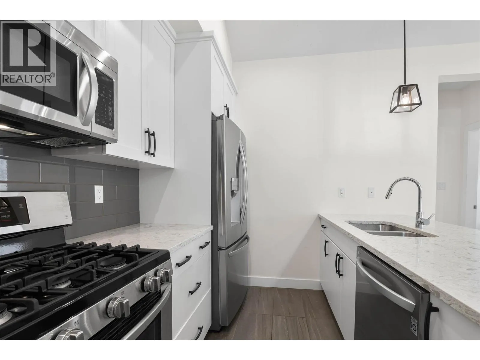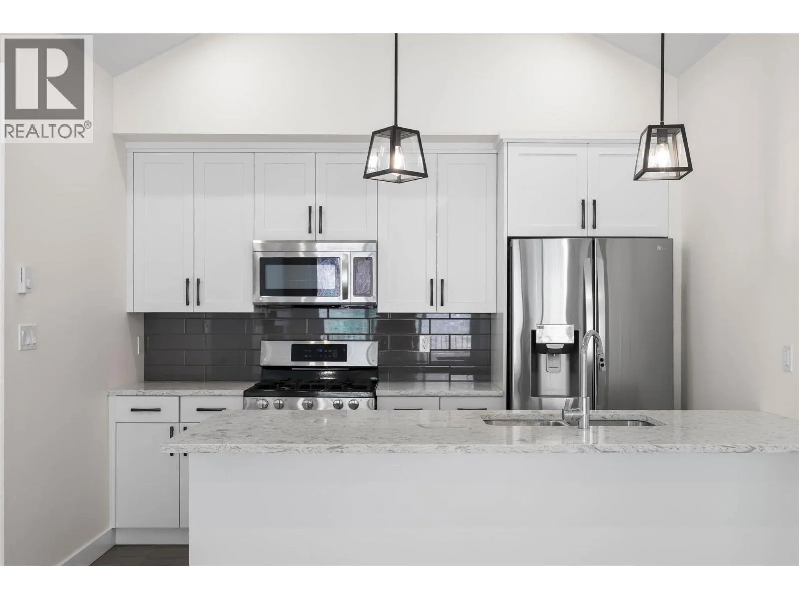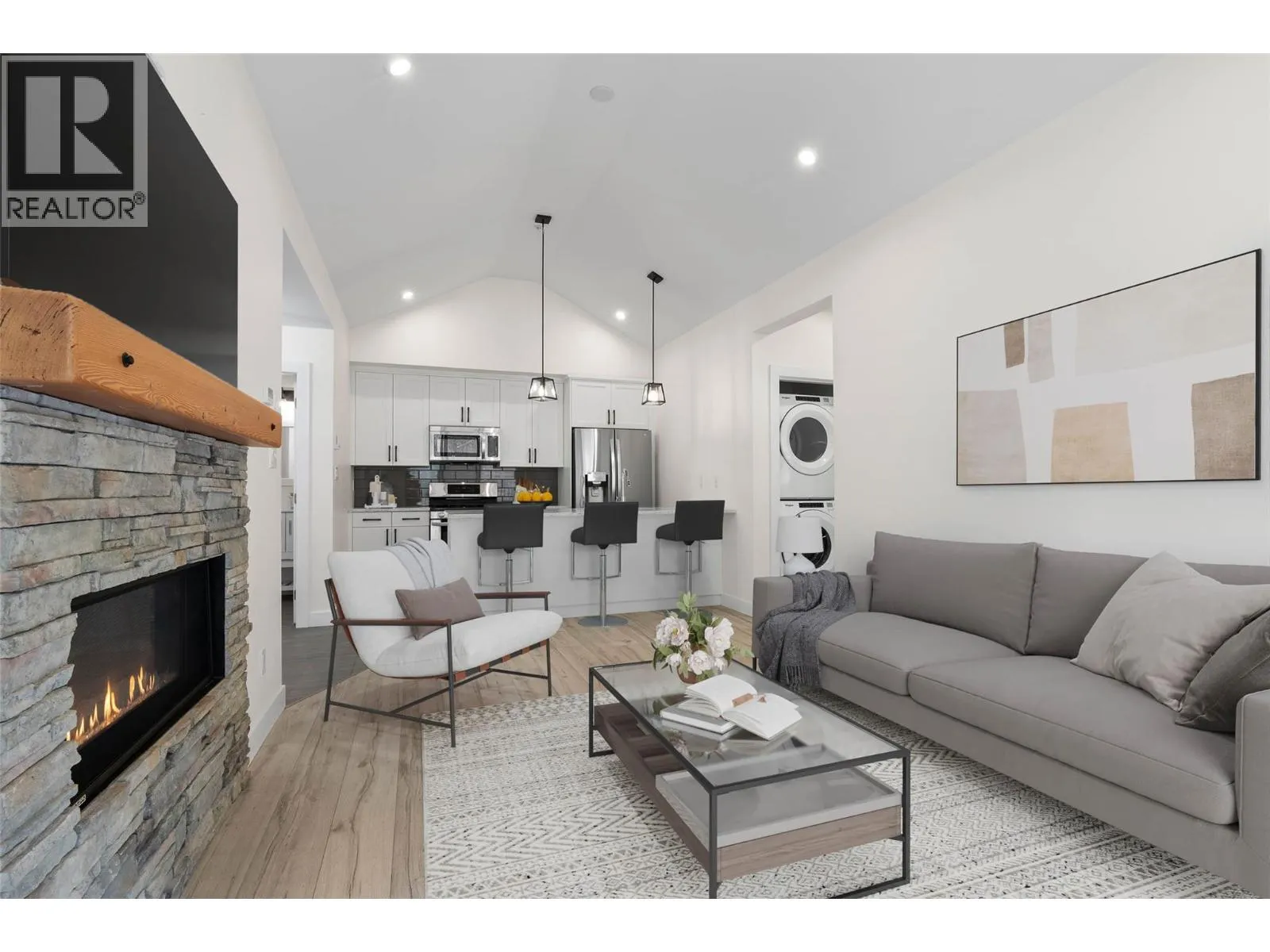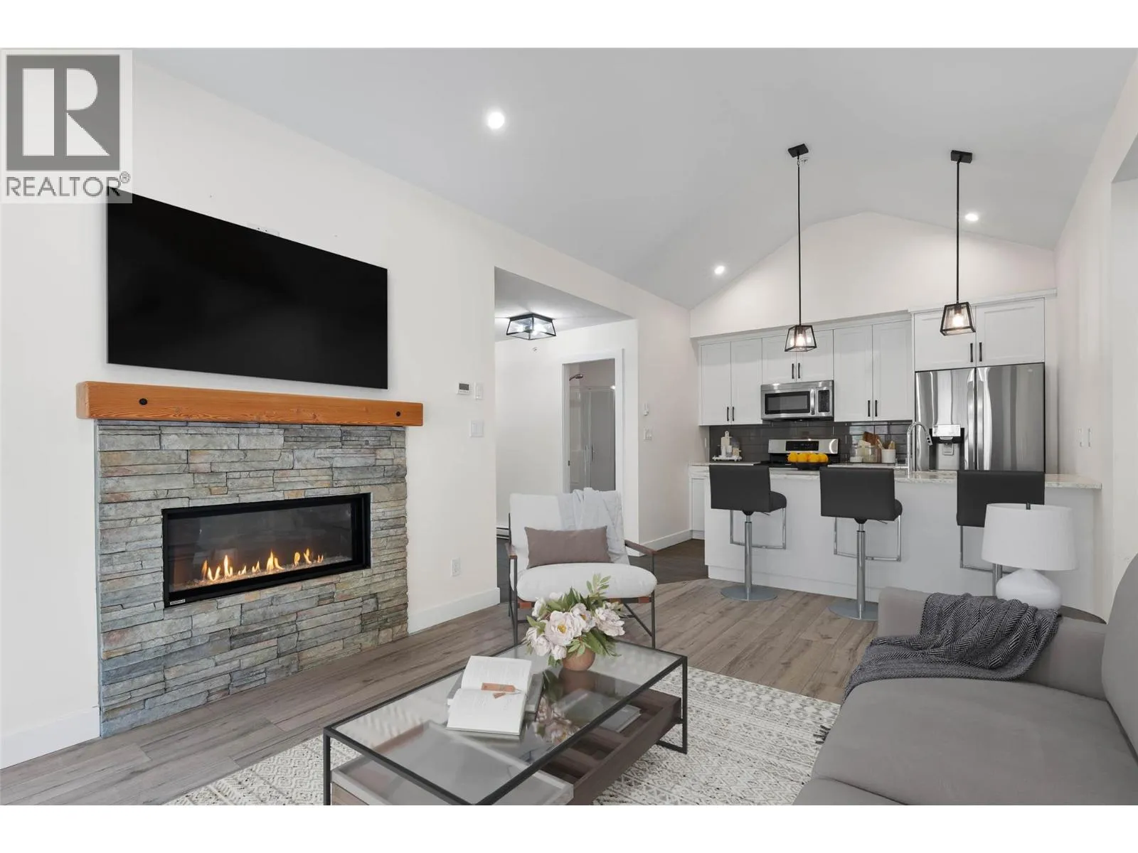 NO rental restrictions & NO GST applicable! Ski right to your front door in this top floor, 2 bedroom, 2 bathroom condo featuring modern elegance and thoughtful design, including a private oversized 1 car garage and large ski & bike storage closet for all your equipment storage needs. Upgraded finishings include cream marble quartz kitchen counters, LG upgraded appliance package with gas range, stone fireplace surround, prewiring for a hot tub and propane outlet on deck for BBQ. The living room features a vaulted ceiling, creating an open and airy ambiance, while the cozy propane fireplace adds warmth and charm. Step onto the covered balcony and immerse yourself in nature with views to the wooded forest landscape. The oversized 1-car garage provides ample space for your vehicle while additional outdoor parking ensures convenience for guests. A dedicated ski outdoor storage closet ensures your equipment is always ready for action. Situated within the esteemed Peaks West complex, this condo offers more than just a home; it presents a community of convenience. Enjoy easy access to amenities such as the Ohana deli/cafe market, Magic Cattleguard restaurant/pub, pharmacy and more â all just steps away from your front door! Convenient ski-in and out access to the Burfield chairlift. GST N/A. Please note photos with furnishings are virtually staged. (id:27476)