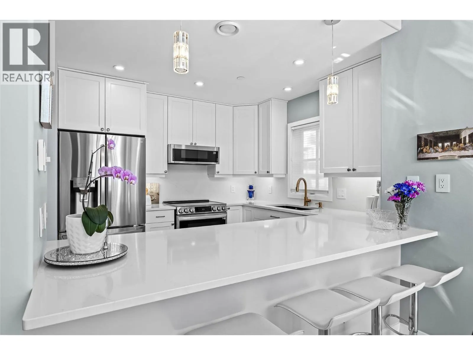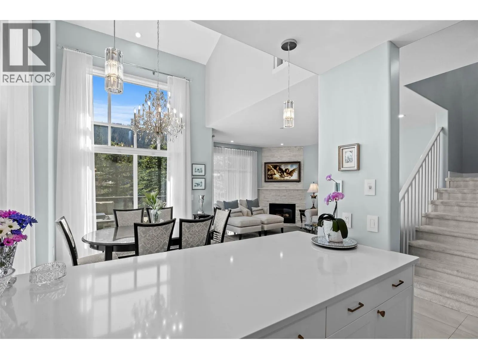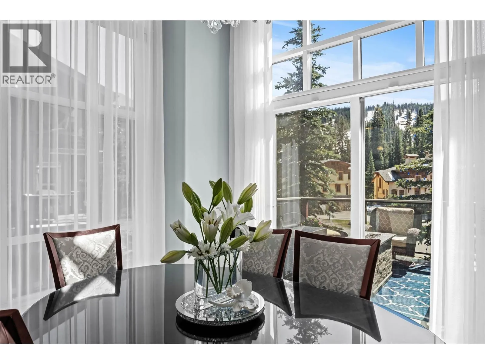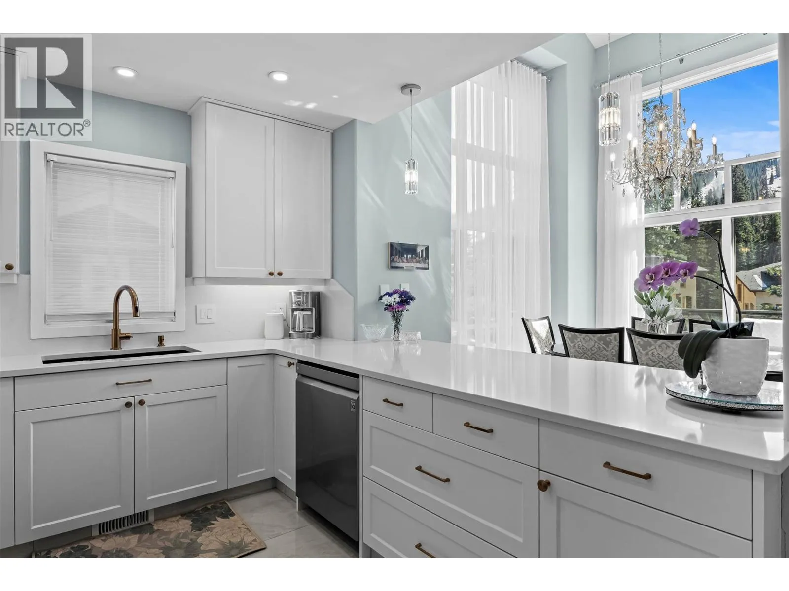 This is a RARE opportunity to own a fully renovated, ski in - ski out luxury home or retreat in Sun Peaks with no rental restrictions! This beautifully renovated 4-bed, 3.5 bathrooms home in Trappers Landingâone of Sun Peaksâ most sought after locations, located across from the Mt Morrisey and Orient lifts. ONLY a 5 min walk to the Village! Every detail of this exquisite property has been upgraded to provide modern elegance and comfort. The refinished interior includes new heated and updated tile flooring, completely revamped bathrooms featuring custom-tiled shower, updated hardware, and stone countertops. The kitchen is a dream with brand-new appliances, updated cabinets, custom stone countertops and modern pendant lighting. The warmth and brightness continues on the main floor with stunning chandeliers, an updated stone finished fireplace and all new LED lighting throughout the home. Enjoy the finest in window treatments with new Hunter Douglas insulated blinds on the top two floors and custom sheers and drapery. Additional upgrades include a new Novo Water Softener, Kohler Smart Home Water Monitor, custom shelving in the garage, and Jet Paint-finished banister railings. Enjoy stunning south facing mountain views from inside or while BBQ'ing on the spacious main floor deck. Downstairs has a relaxing family room, guest bedroom, laundry room with storage and access to the covered patio with a hot tub. This unit has 2 parking spots - one of few units with this! All meas approx (id:27476)