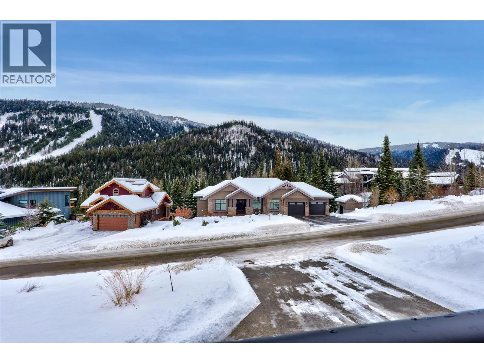 Discover ultimate luxury mountain living within this spectacular 4-bed, 5-bath ski-in sanctuary, providing access directly from the popular Mt. Morrisey runs. Every detail caters to a refined lifestyle, starting with the oversized two-car garage, featuring heated epoxy flooring, ski tuning space, and ample storage for recreational toys. The main level showcases a spacious primary bedroom with elegant ensuite as well as a dedicated laundry room. Upstairs are two intimate bedrooms, also with their own private ensuites. Gatherings center around the great room, illuminated by natural light beneath 20-foot vaulted ceilings, seamlessly extending to a generous balcony with stunning, south-facing mountain views. The gourmet kitchen is a chef's delight, equipped with sprawling quartz countertops, high-quality appliances/wine fridge, and an additional wet bar/coffee room. The home features polished concrete flooring throughout and is kept cozy by comforting radiant floor heating. After a day of adventure, unwind in the private hot tub on the tranquil rear patio. On the lower level is a 1-bed, 1-bath income suite finished to the same quality as the main house. This modern haven is engineered for peace of mind, protected by a new home warranty and enhanced by HRV, noise-reducing cellulose insulation, and a sophisticated Vssl integrated sound system. This home offers a fully furnished, deluxe, turn-key mountain lifestyle awaiting your memories. All measurements are approximate. (id:27476)
