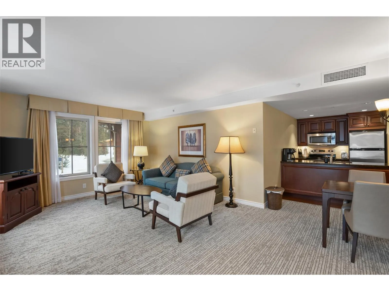 Discover luxury mountain living in the heart of Sun Peaks with this fully furnished 1-bed, 1-bath condo at The Residences. This welcoming 1/4 share unit features expansive windows that flood the space with natural light and showcase beautiful mountain views year-round. The open-concept layout is thoughtfully designed, offering a comfortable living area with a cosy fireplace and a well-appointed kitchen complete with granite countertops and stainless steel appliances. Step outside onto the private sundeck to unwind after a day on the slopes or trails while taking in the alpine surroundings. Enjoy exceptional ski-in/ski-out access and a prime village location just steps from shops and dining. Outstanding amenities include outdoor hot tubs, a heated pool, fitness centre, 24-hour concierge, secure underground parking, and ski & bike valet. Professionally managed for true peace of mind, handling all details whether you're on-site or away. See listing for video & 3D tours. GST applies. (id:27476)