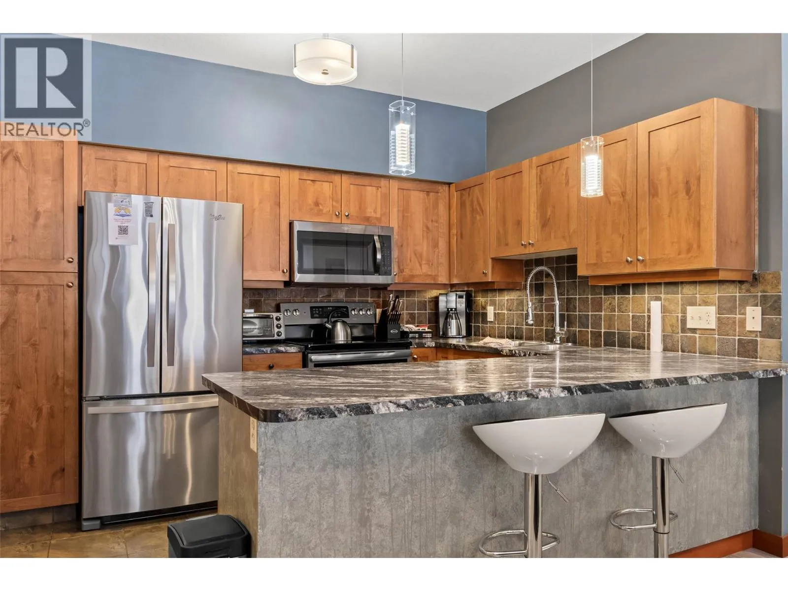 This 1 bedroom + BONUS ROOM (fitted with a queen bed), offers excellent value and occupancy paired with the convenience of direct slope access from this exceptional Settlers Crossing location, a feature that makes it a proven, high-demand investment property! Take minimal steps from your front door, strap on your skis & effortlessly ski out to Morrisey & Orient lift hubs, which will whisk you to the Village core within minutes! Gorgeous, modern upgrades include sophisticated laminate flooring throughout, cozy heated tile and granite counter tops in kitchen & baths, modern paint scheme & updated fixtures. Relax in the covered hot tub, surrounded by the refreshing pine scent of the forest & pristine beauty of nature. Fully furnished w/ 6 appliances, the property includes 1 parking space, ample lockable storage in the heated underground garage for bikes, clubs and more, a convenient ski locker at your door and a ski tuning room available. No rental restrictions & pet-friendly. Strata fee includes snow removal, landscaping, cable & internet. GST Applicable, but may be deferred depending on intended usage. See listing for video & 3D tours. This special location in Settlers Crossing is renowned for its true ski in/out access, which consistently attracts renters year after year. (id:27476)