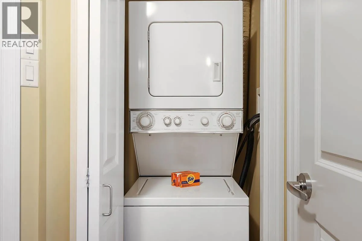 Sun Peaksâ only Quarter Share offering. This upscale 2-bedroom, 2-bath fully furnished vacation property comes well-appointed with a fully outfitted spacious kitchen with cherry cabinets and granite counter tops, plus a cozy fireplace to gather around, in suite laundry and central air conditioning. Enjoy mountain and village views from your very own private deck. Shops and dining are just steps away. True ski-in, ski-out convenience in the heart of the village with amenities such as an outdoor pool, hot tubs, gym, sauna, restaurants, bike & ski valet, room service, heated underground parking and more. GST applicable. (id:27476)