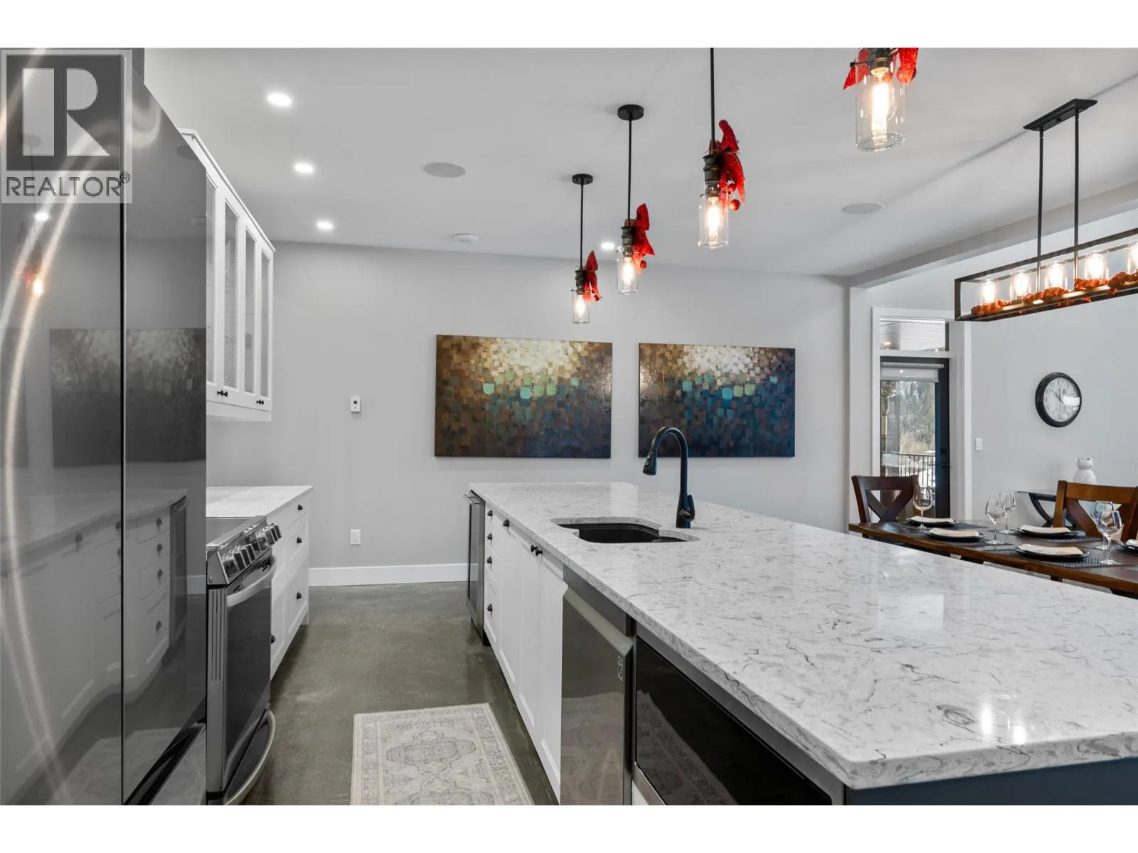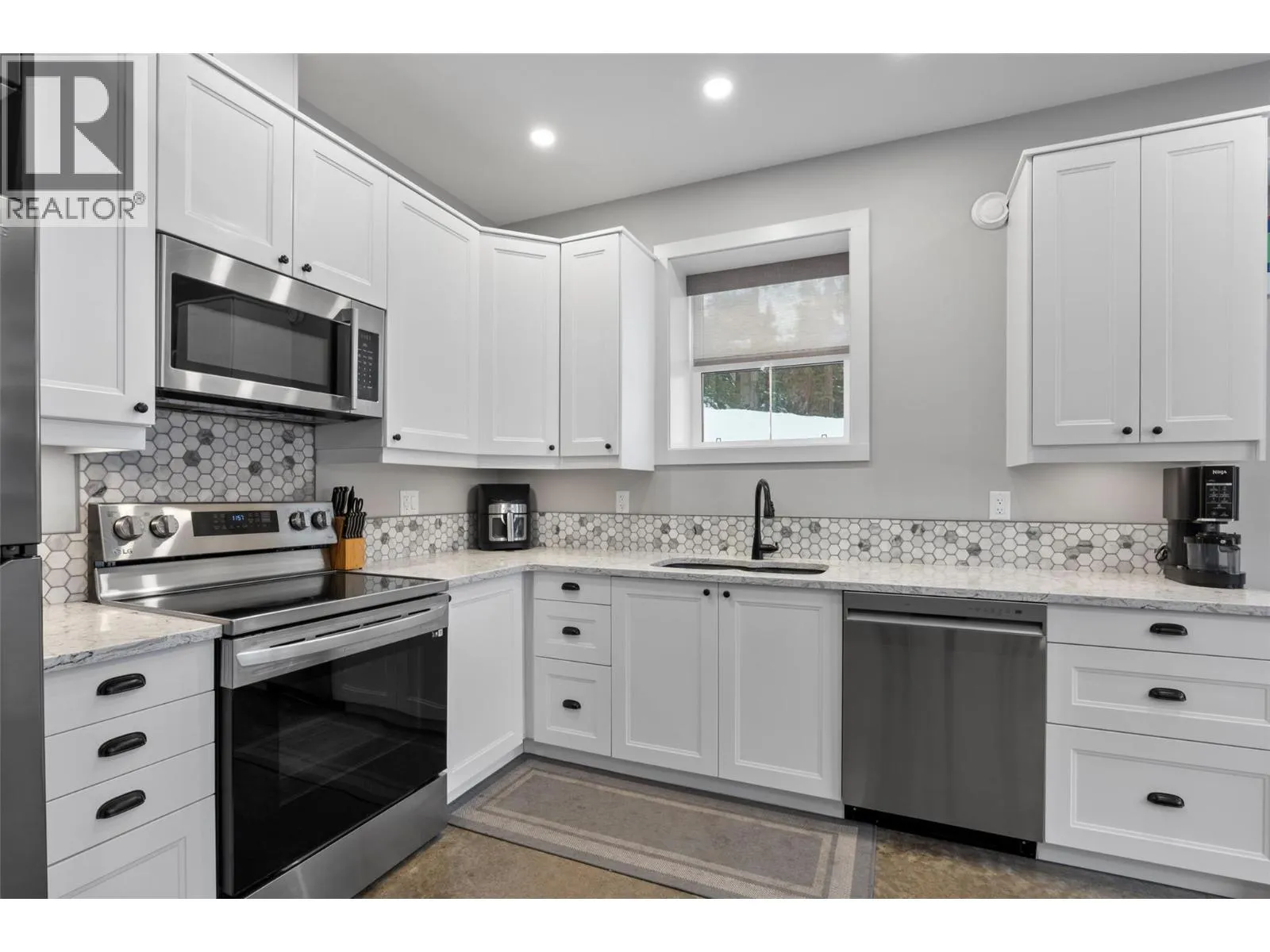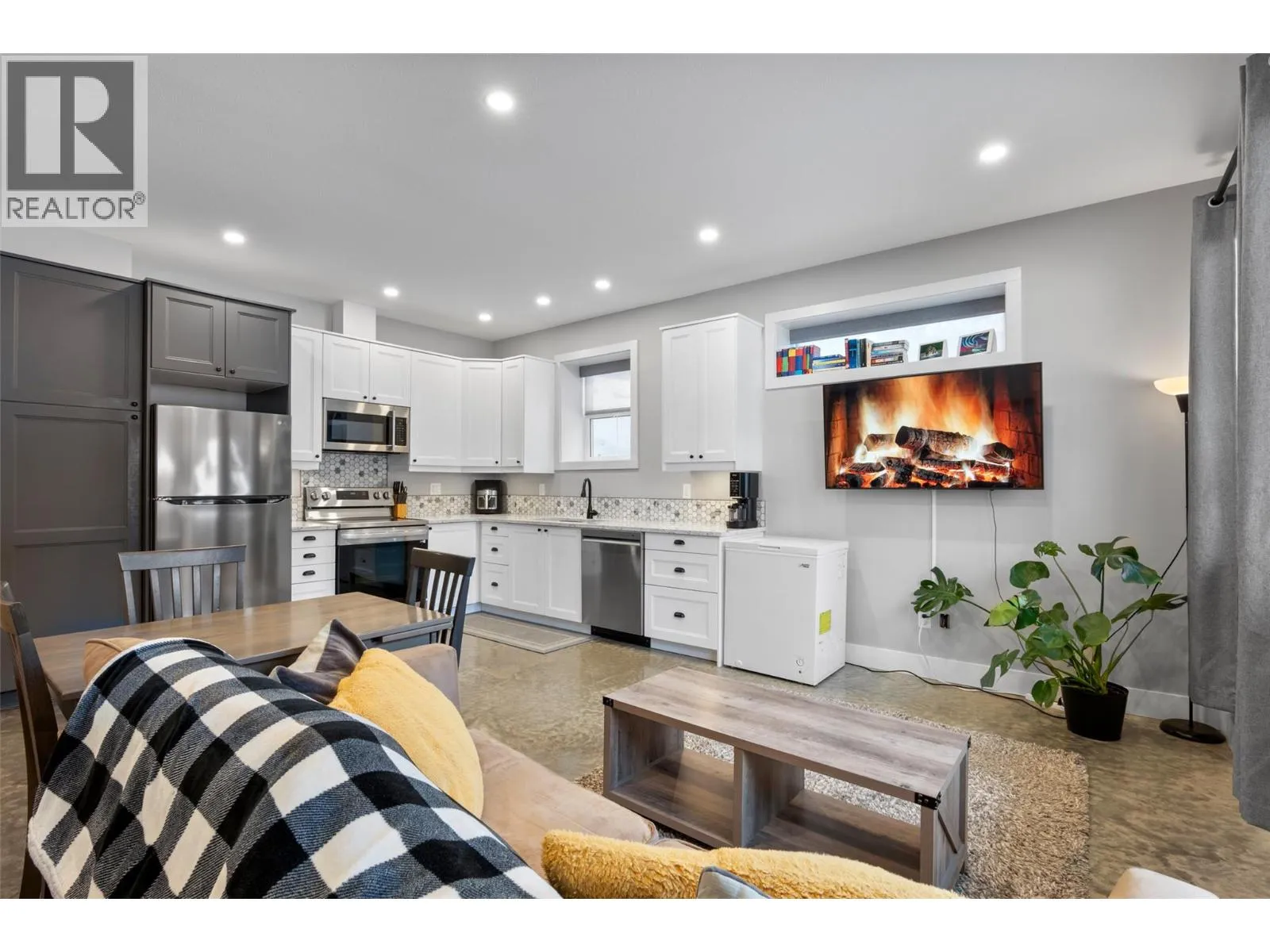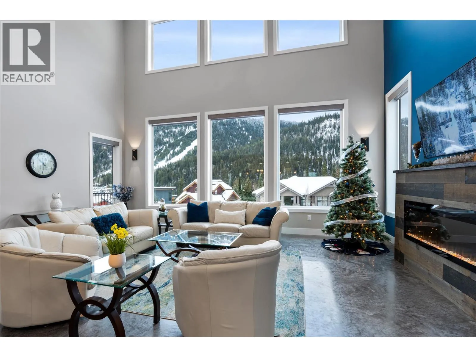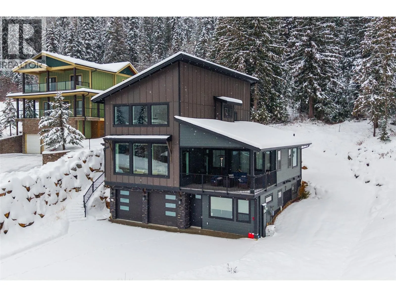 Discover ultimate luxury mountain living within this spectacular 4-bed, 5-bath ski-in sanctuary, providing access directly from the popular Mt. Morrisey runs. Every detail caters to a refined lifestyle, starting with the oversized two-car garage, featuring heated epoxy flooring, ski tuning space, and ample storage for recreational toys. The main level showcases a spacious primary bedroom with elegant ensuite as well as a dedicated laundry room. Upstairs are two intimate bedrooms, also with their own private ensuites. Gatherings center around the great room, illuminated by natural light beneath 20-foot vaulted ceilings, seamlessly extending to a generous balcony with stunning, south-facing mountain views. The gourmet kitchen is a chef's delight, equipped with sprawling quartz countertops, high-quality appliances/wine fridge, and an additional wet bar/coffee room. The home features polished concrete flooring throughout and is kept cozy by comforting radiant floor heating. After a day of adventure, unwind in the private hot tub on the tranquil rear patio. On the lower level is a 1-bed, 1-bath income suite finished to the same quality as the main house. This modern haven is engineered for peace of mind, protected by a new home warranty and enhanced by HRV, noise-reducing cellulose insulation, and a sophisticated Vssl integrated sound system. This home offers a fully furnished, deluxe, turn-key mountain lifestyle awaiting your memories. All measurements are approximate. (id:27476)