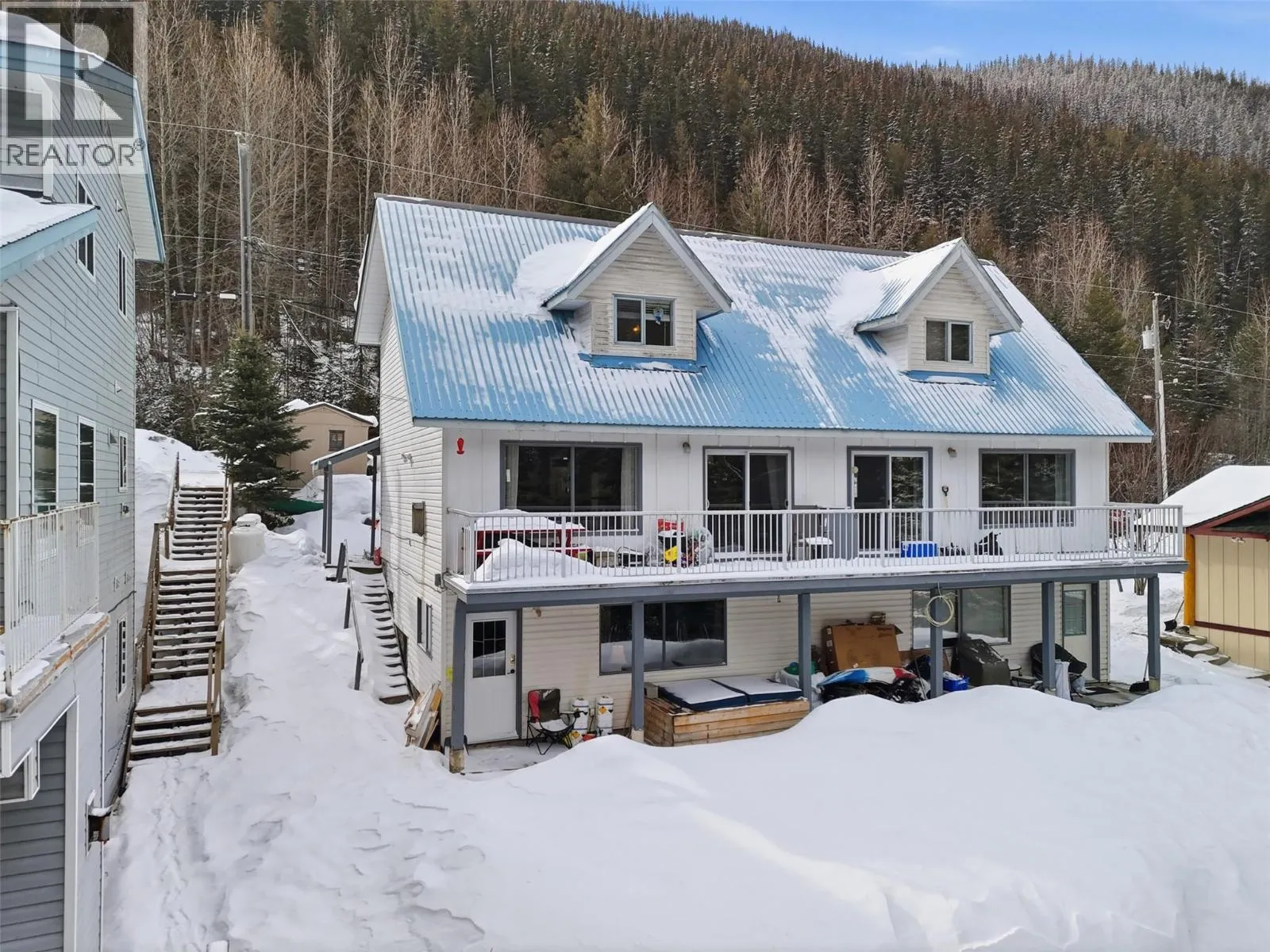 Tucked away on the quiet creekside of the Burfield Drive cul-de-sac, this inviting 3-bedroom, 3-bathroom home offers peaceful mountain living with beautiful creek and mountain views and no neighbours to the south providing direct ski in access. Designed with family life in mind, the level-entry layout welcomes you with a spacious foyer that flows effortlessly into the open-concept kitchen, dining, and living areaâperfect for gathering and everyday livingâwhile a convenient 4-piece bathroom completes the main floor. Upstairs, youâll find three comfortable bedrooms, an additional full bathroom, and a cozy office nook ideal for working from home or homework time. The walk-out basement creates the ultimate family retreat, featuring a third bathroom, ample storage, and a large rec room that easily transforms into a guest space, games area, or movie loungeâimagine evenings spent watching films, playing foosball, and hosting friends. The rare flat and usable backyard with permitted fire pit extend your living space, for evenings spent looking at the stars and days playing in the yard. Parking for up to 6 vehicles and ownership in the West Burfield parking lot. No TSP fees and suite potential. Thoughtful upgrades, including updated flooring, a refreshed kitchen, a durable new metal roof, and a backup electrical battery pack, add comfort, efficiency, and peace of mind to this well-maintained Sun Peaks home. (id:27476)
