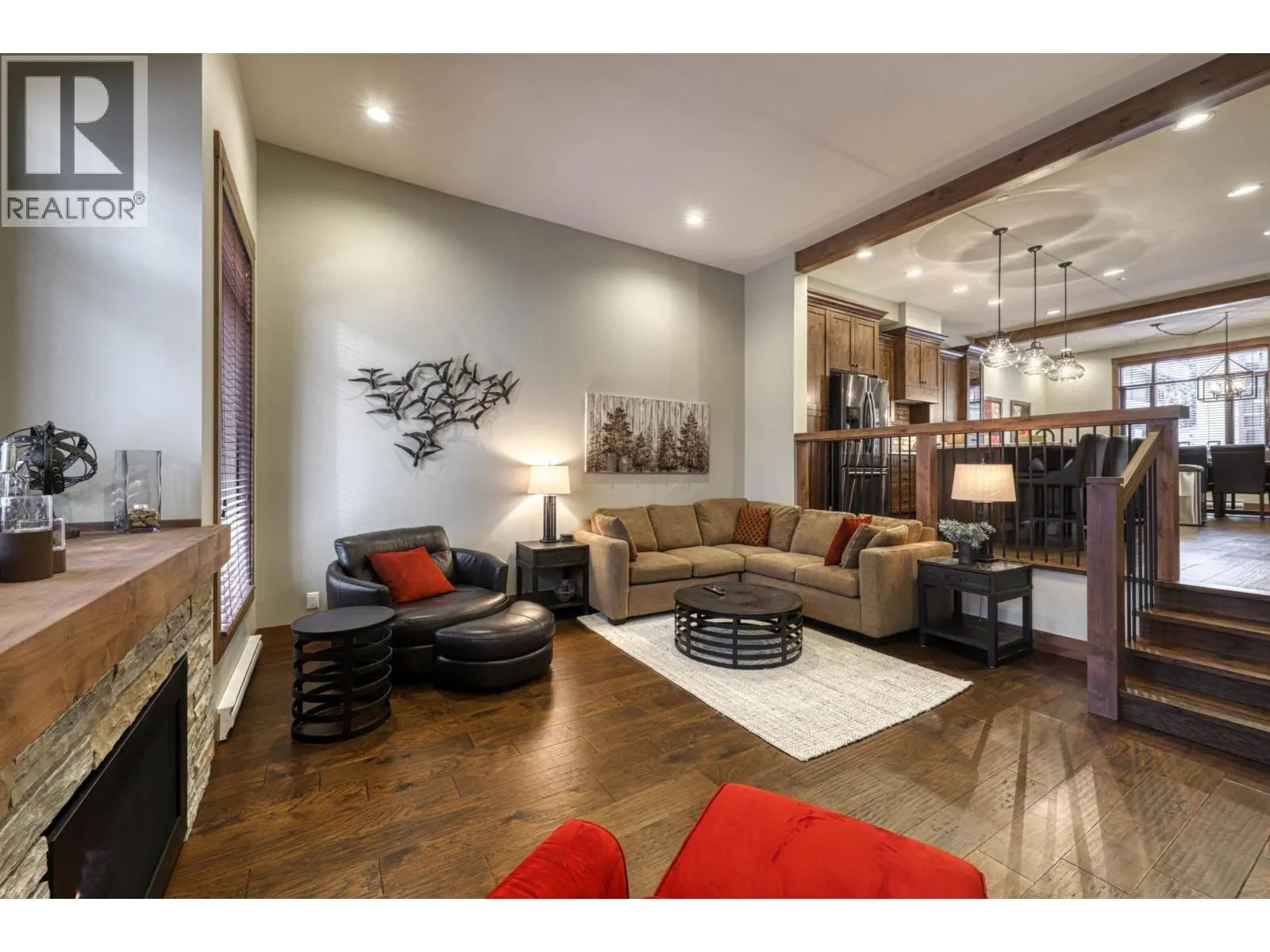 Luxury Living at Sun Peaks! This spacious townhome, one of the largest near the Village, offers over 2,400 sq.ft. of living space. Backing onto the Valley Trail and McGillivray Creek, it provides the perfect blend of adventure and tranquility. The ground floor features a welcoming entryway, flex room, laundry, and a private patio with a hot tub. The garage includes ski and snowboard racks for easy gear storage. The open-concept kitchen and dining are perfect for gatherings, with a sunken living room and cozy fireplace. Upstairs youâll find three spacious bedrooms, including a master suite with a luxurious ensuite. Special features include granite countertops, wood floors, heated entry and bathroom floors, a propane stove, and two decks. Nestled on the quiet creek side, this home offers ski-in/ski-out access along with world-class biking and hiking trails. Zoned for short-term rentals, the property has a strong track record of winter bookings, making it both a lifestyle retreat and an excellent investment opportunity. GST applicable. (id:27476)