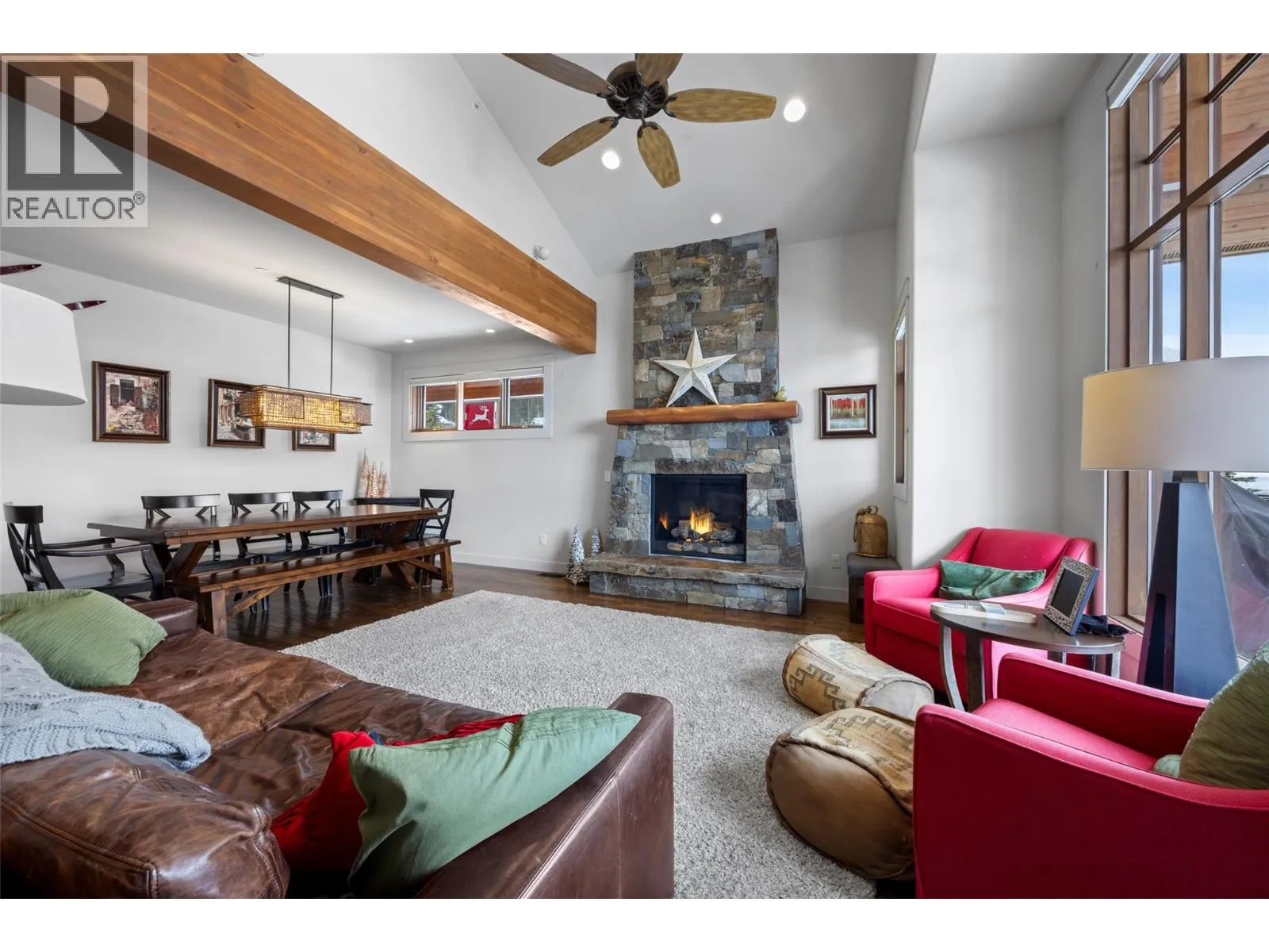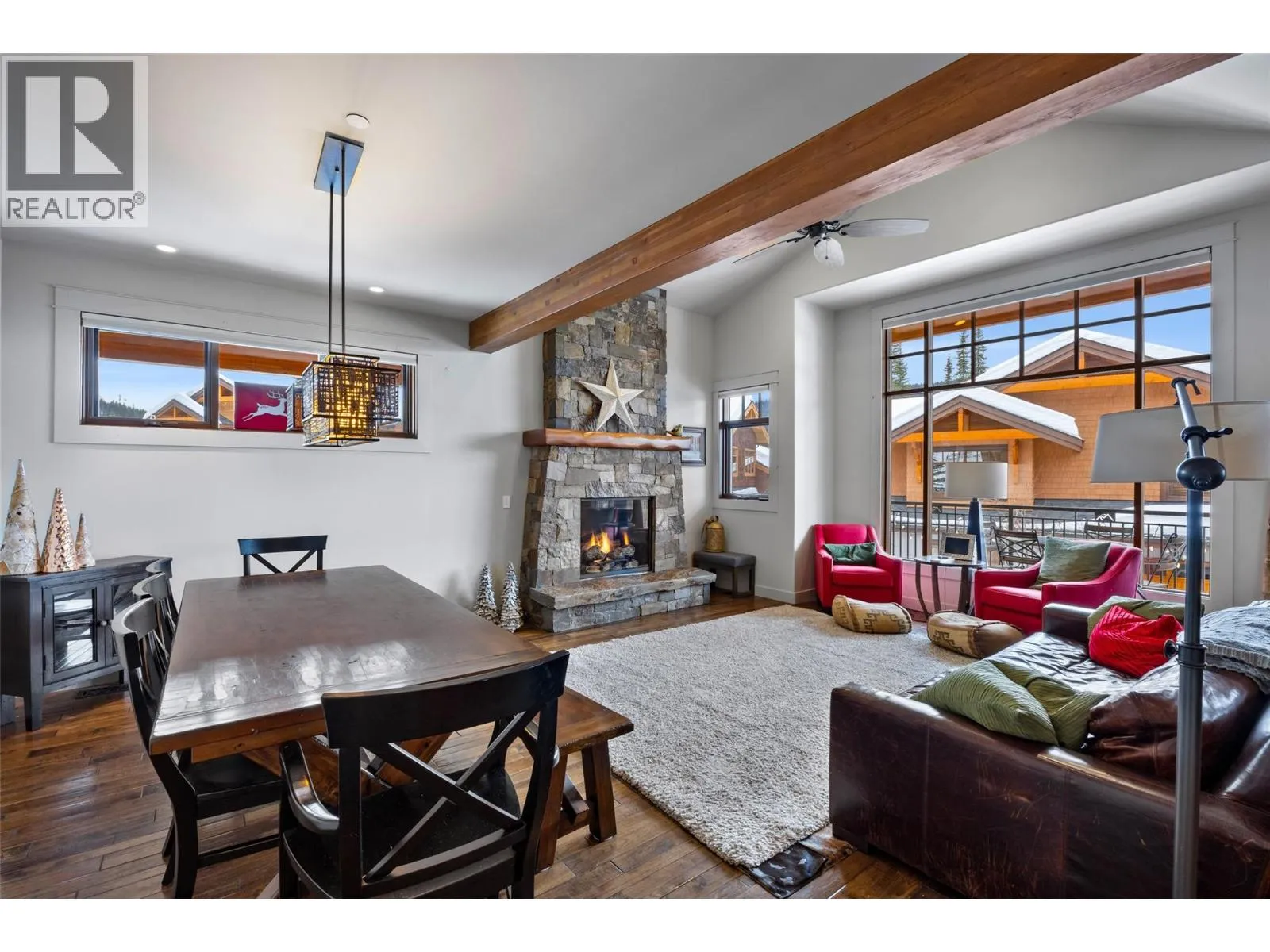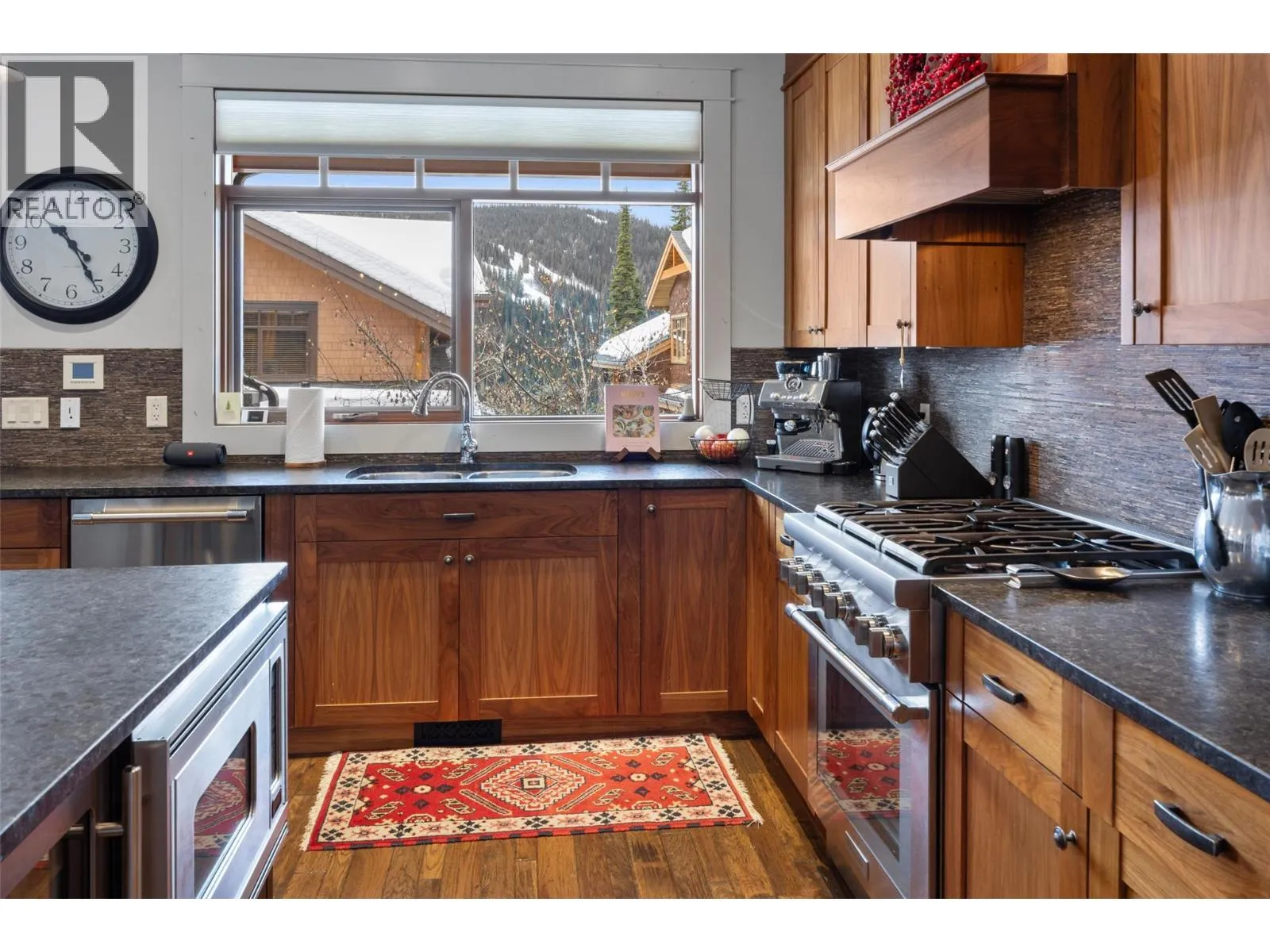 Located in the quiet East Village neighbourhood and highly sought- after, Bridge Gate offers mountain living at its finest, within a peaceful alpine setting - just a short walk or quick drive to the vibrant Sun Peaks Village with restaurants and shops. Ideally positioned along the 15th fairway of the Sun Peaks Golf Course, this property offers year-round recreation with ski-in/ski-out access in winter and golf course views in summer. Offering 4 bedrooms and multiple living areas, spacious media room and separate ski room- creating plenty of room for family and guests. Exquisite attention to finishing and detail with custom designed gourmet kitchen with granite and superior commercial appliances, impressive dining and bright living area with post & beam features, picture windows, beautiful wood flooring and stunning rock fireplace. Large 2 car garage provides plenty of extra storage. The master suite is luxurious and attractive with spacious walk-in closet, private sundeck and pampering ensuite with soaker tub. Whether youâre looking for a full-time mountain home, recreational retreat, or investment opportunity, this exceptional Sun Peaks townhome delivers space, comfort, and true four-season resort living. GST n/a; largely furnished. (id:27476)