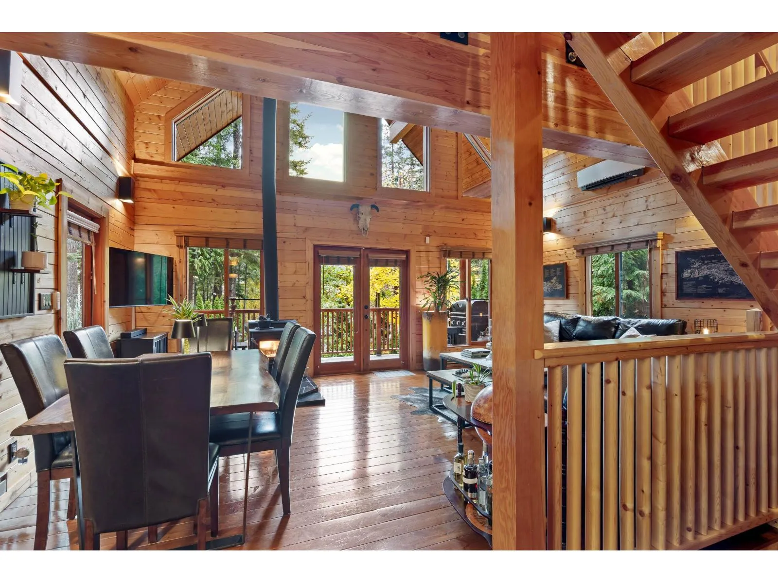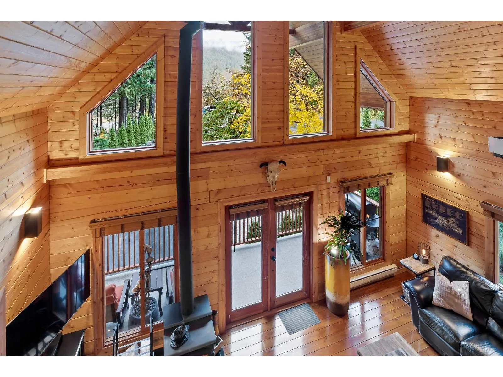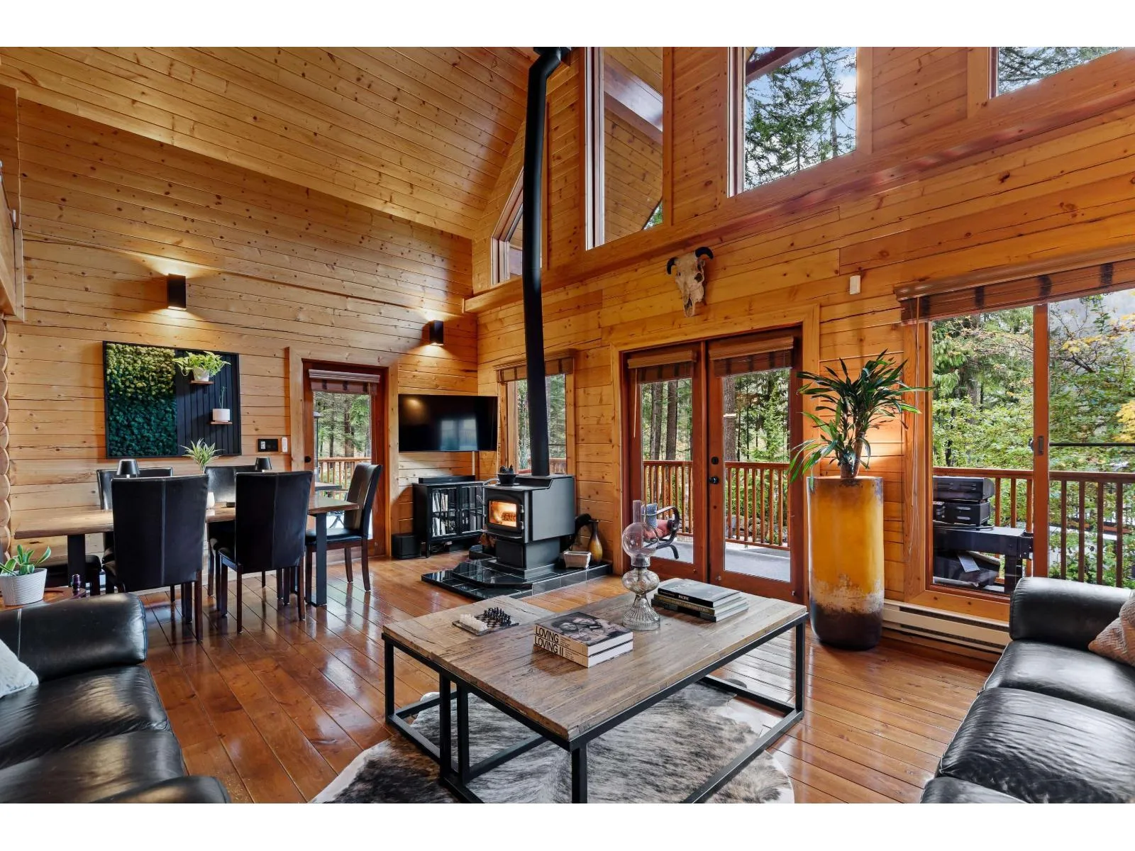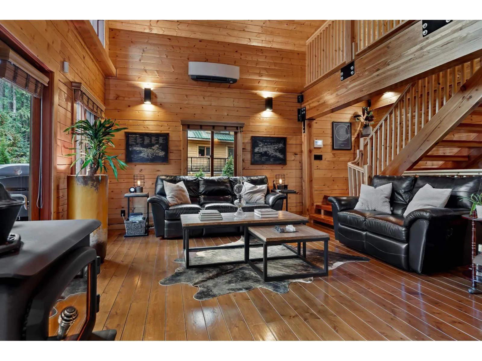 Exceptional Custom built log home on a private, gated freehold 1/3-acre in Sunshine Valley. Designed for four-season living, minutes to Hope and Manning Park, with hiking, snowmobiling & biking at your door. Beautifully crafted in & out with metal-clad roof, solid fir doors/stair treads, wood-frame windows, full remote controlled heat/AC & Generac backup generator. The main floor features a stunning great room with 24-ft vaulted ceilings, exposed beams, and floor-to-ceiling windows, plus a chef's kitchen with granite counters, stainless appliances, and large island. The lower level is an entertainers dream- with custom bar, billiards, media room & more. Detached garage for toys. This is an excellent investment opportunity with Airbnb permitted, rental details available, don't miss it! (id:27476)
