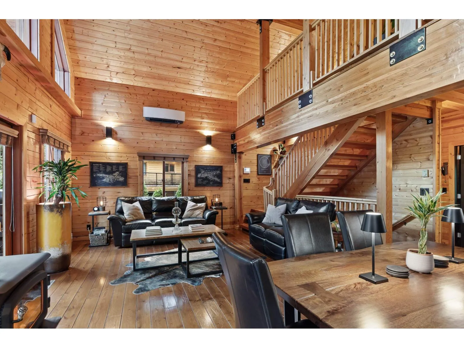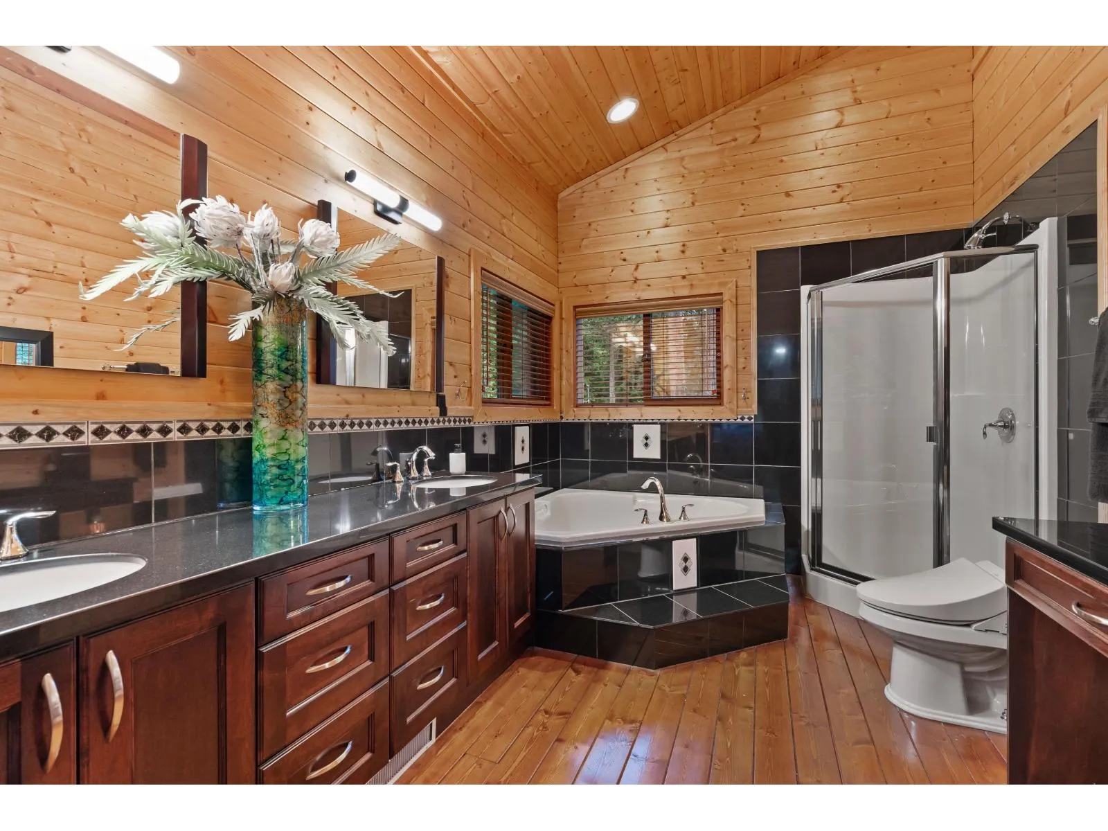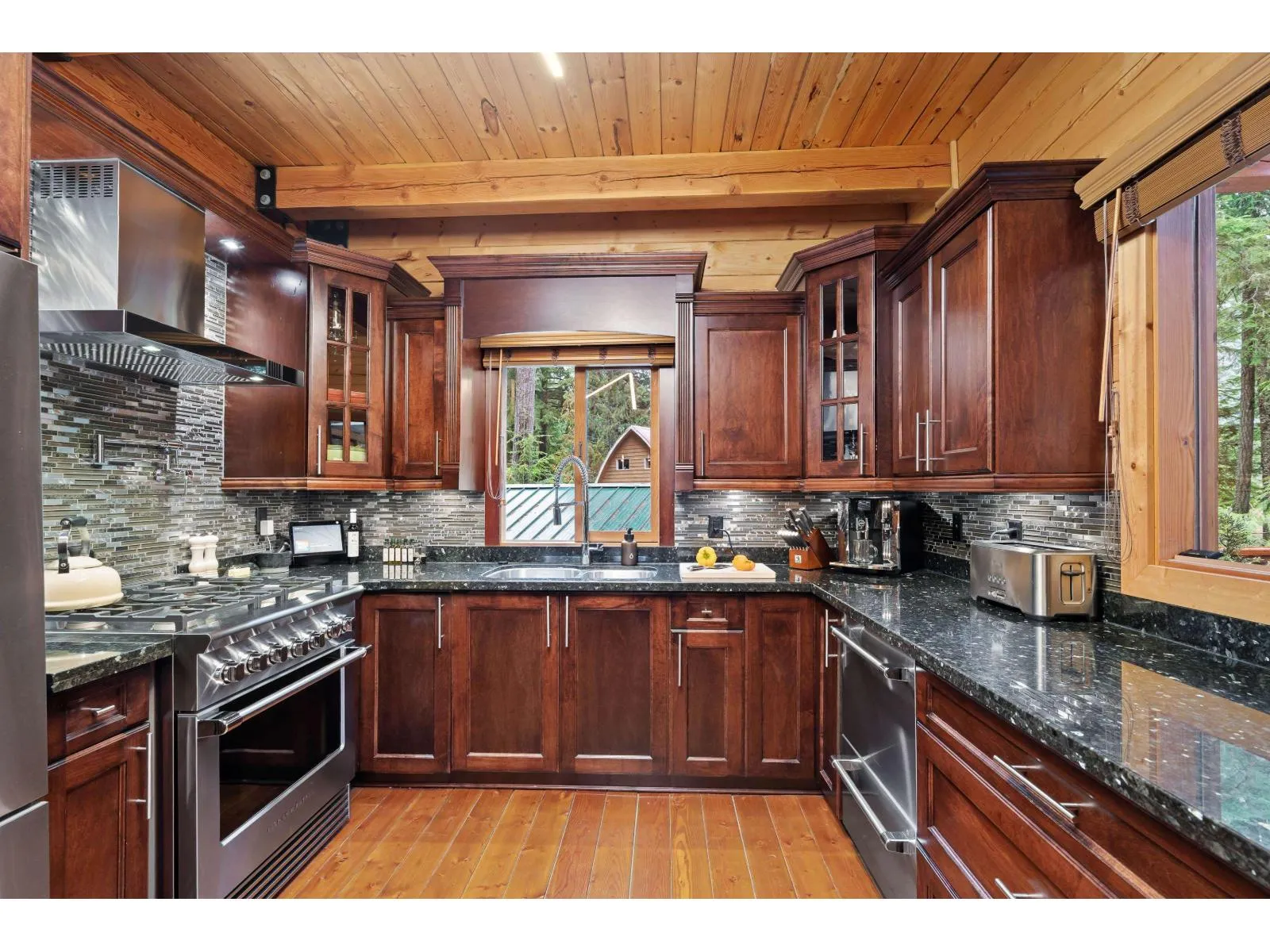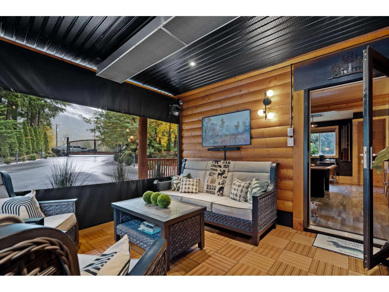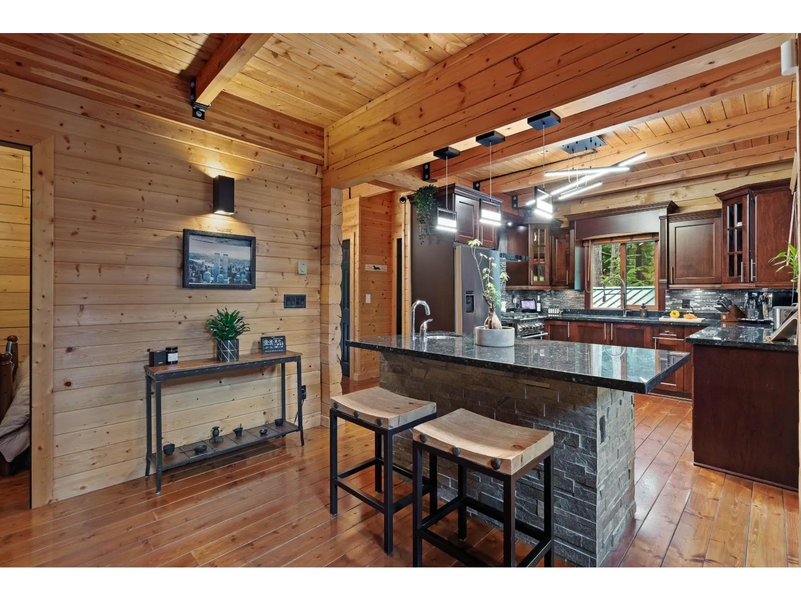 Exceptional Custom built log home on a private, gated freehold 1/3-acre in Sunshine Valley. Designed for four-season living, minutes to Hope and Manning Park, with hiking, snowmobiling & biking at your door. Beautifully crafted in & out with metal-clad roof, solid fir doors/stair treads, wood-frame windows, full remote controlled heat/AC & Generac backup generator. The main floor features a stunning great room with 24-ft vaulted ceilings, exposed beams, and floor-to-ceiling windows, plus a chef's kitchen with granite counters, stainless appliances, and large island. The lower level is an entertainers dream- with custom bar, billiards, media room & more. Detached garage for toys. This is an excellent investment opportunity with Airbnb permitted, rental details available, don't miss it! (id:27476)