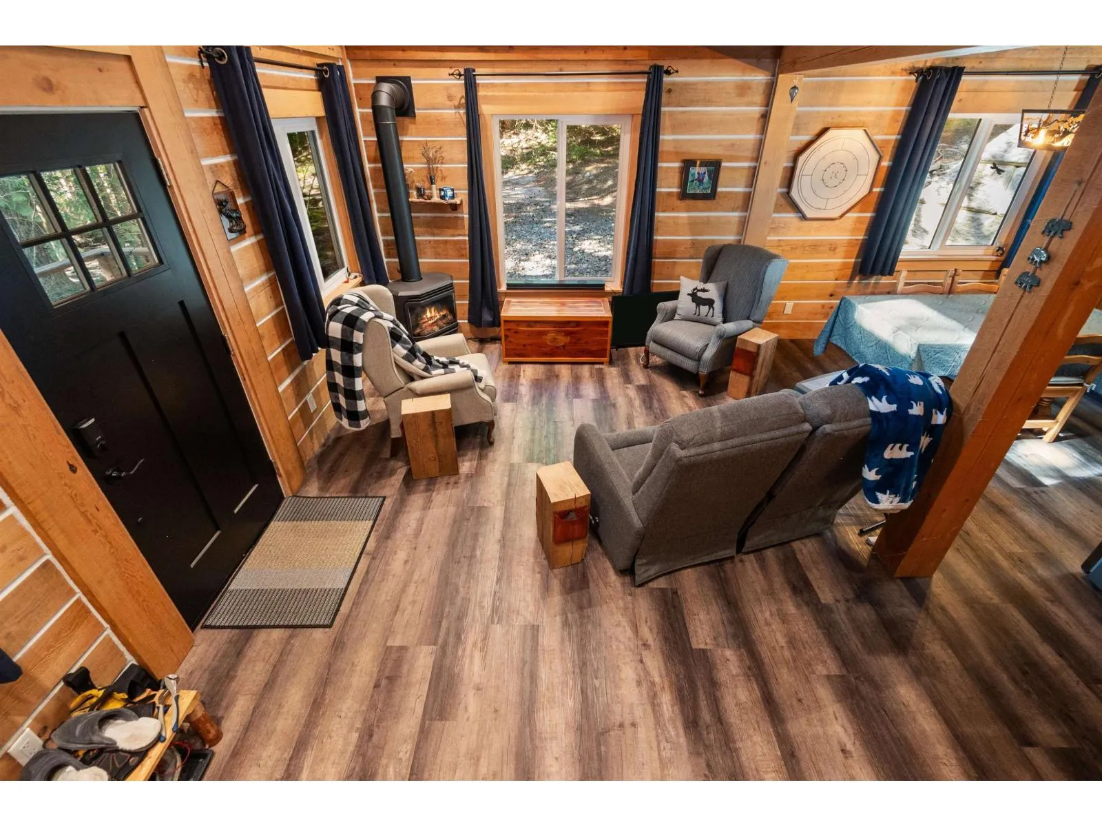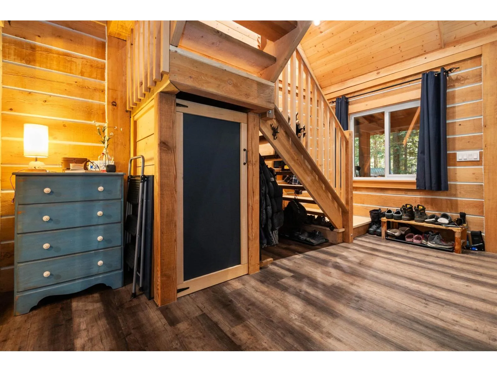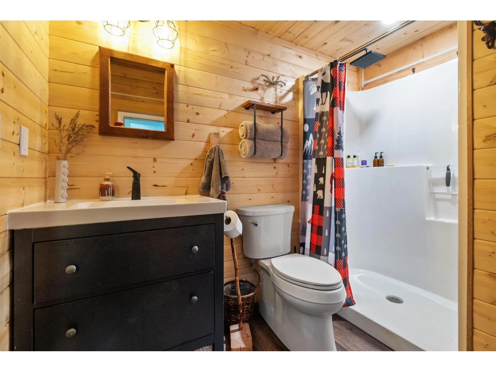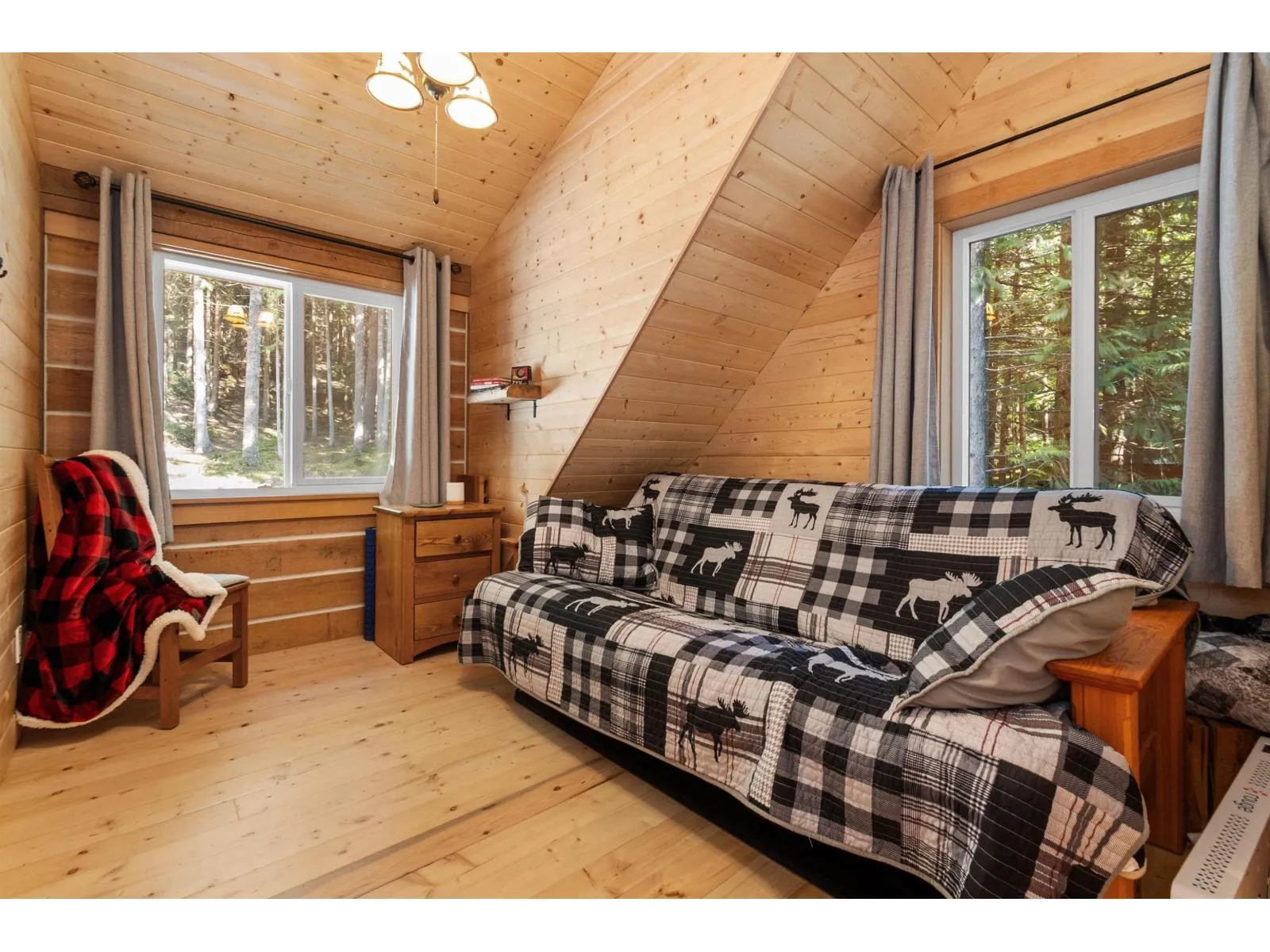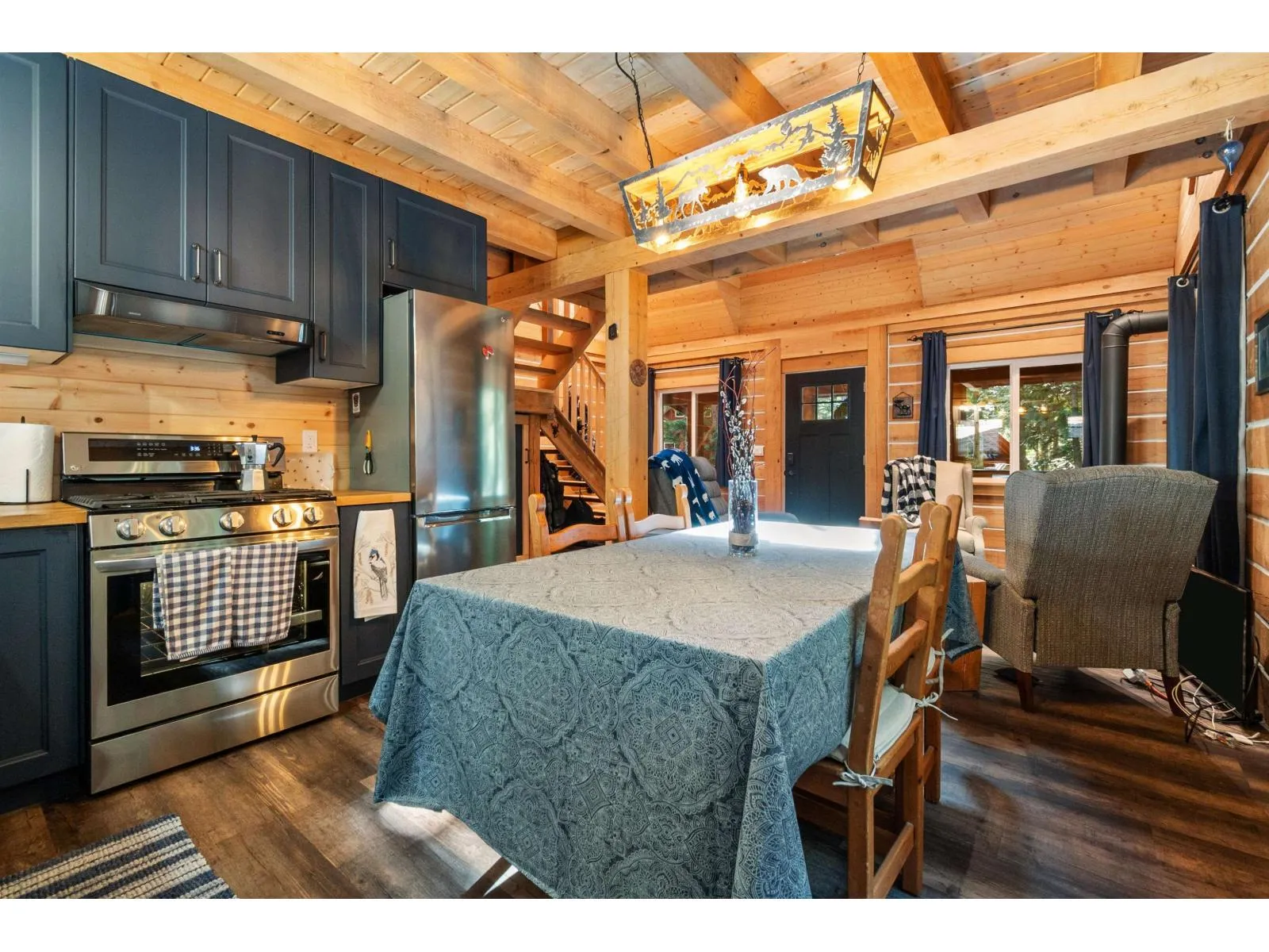 Nestled away on ¾ acre this forested retreat is idyllic mountain escapism at its best. 3yr-old cabin 869sqft w/ 2bed 1bath & fully finished 133sqft powered bunkhouse perched amongst the trees. Main home w/ triple pane windows & extra insulation. Fully covered front porch welcomes you to open concept living/dinning room & kitchen w/ propane wood stove, space for full dining room setup & gas range kitchen w/ soft close cabinets, lazy susan, & pull-out storage. Upstairs 2 sizable bedrms each w/ 2 windows. Entire home flush w/ natural light from extra windows meant to extenuate forest surroundings. 3pc bathrm on main w/ stora?ge, hot water on demand. Retaining wall in back creates flat oversized patio area perfect for gatherings & campfire. Ample parking for guests & toys.? Short term rental (id:27476)