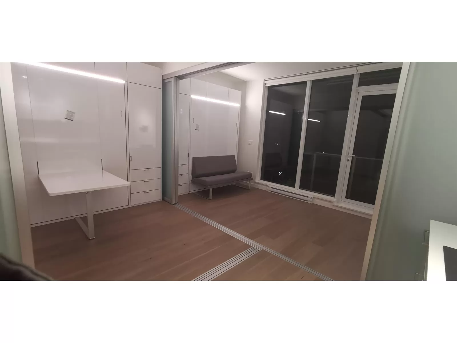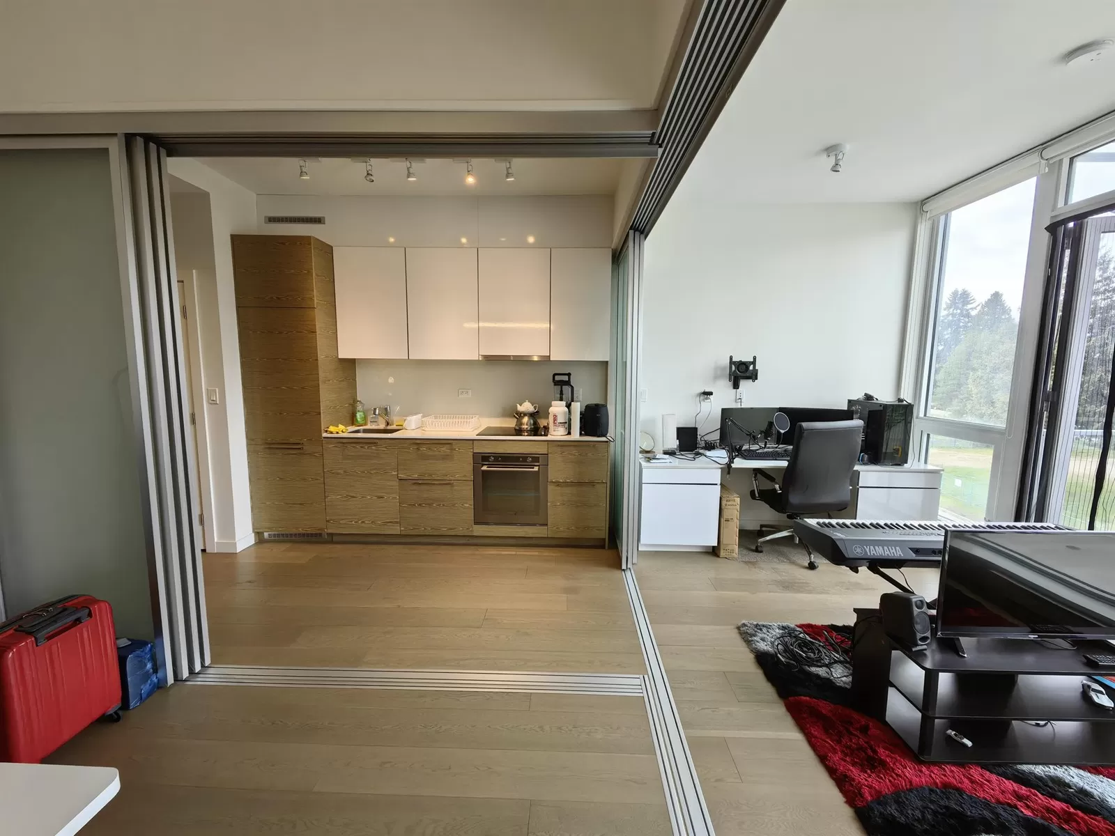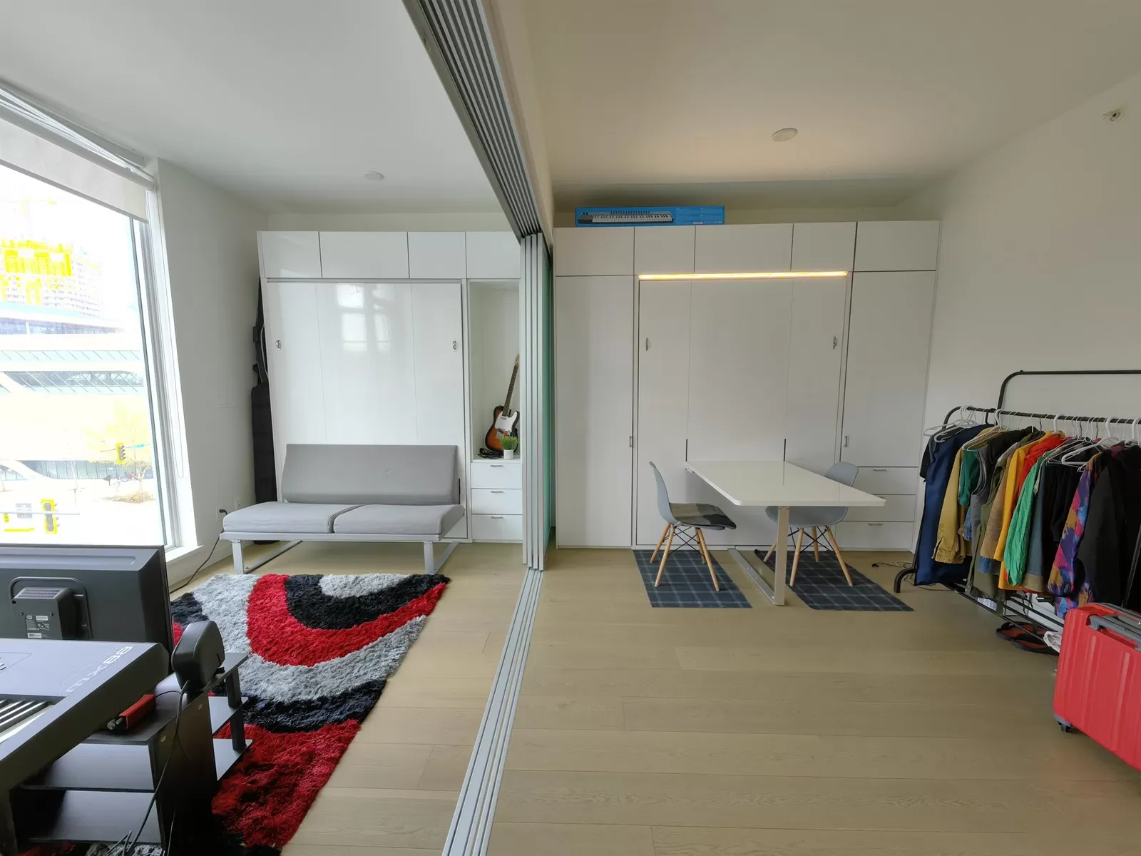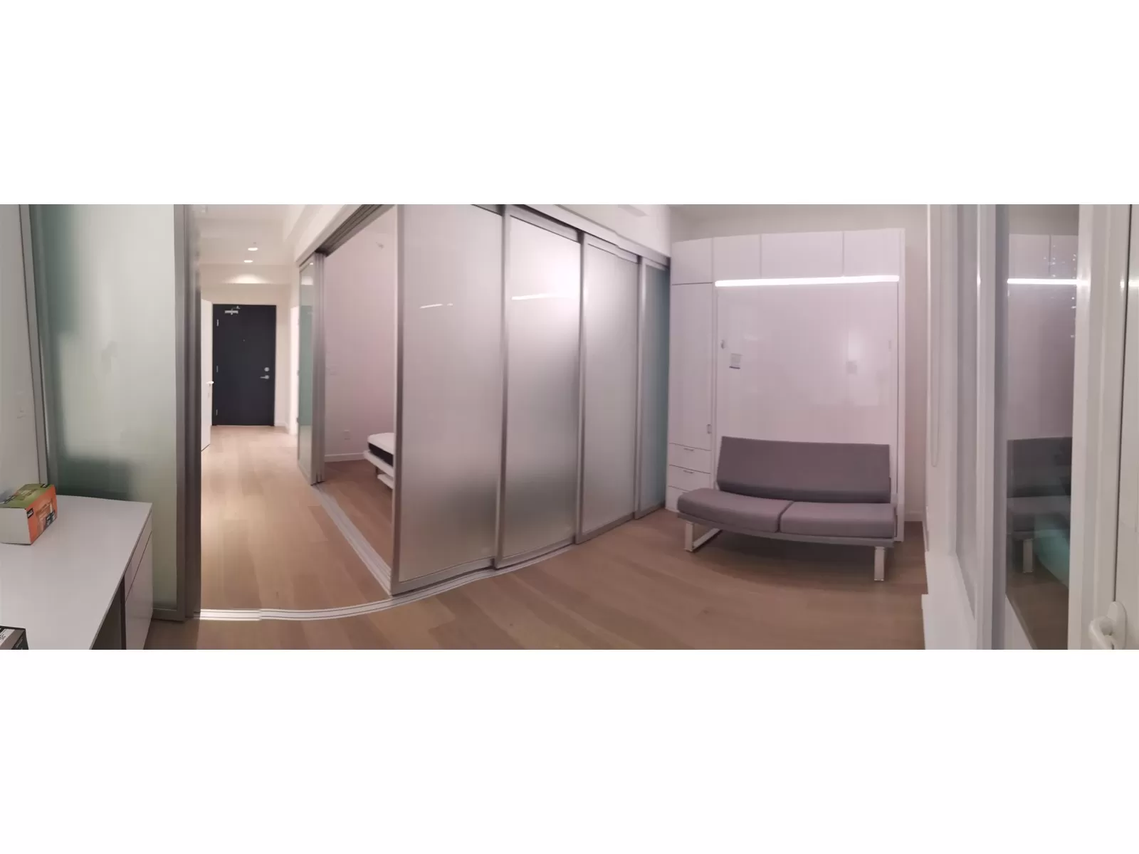 Prime on Plaza! Excellent unbeatable location! Steps from Skytrain , SFU and KPU campuses . The unit includes stainless steel appliances , 2 pull out murphy beds and dining table and sofa with 1 storage locker! Sliding walls to make it 2 bedrooms. Over-height ceilings , hardwood engineered floors ,high-efficiency Low-E windows , custom roller blinds and built-in LED lighting. Amenities include a gym, yoga studio, massage room, sauna/steam room, entertainment rooms with kitchen, business center, study room and a rooftop patio and garden . Call or text for a showing. (id:27476)