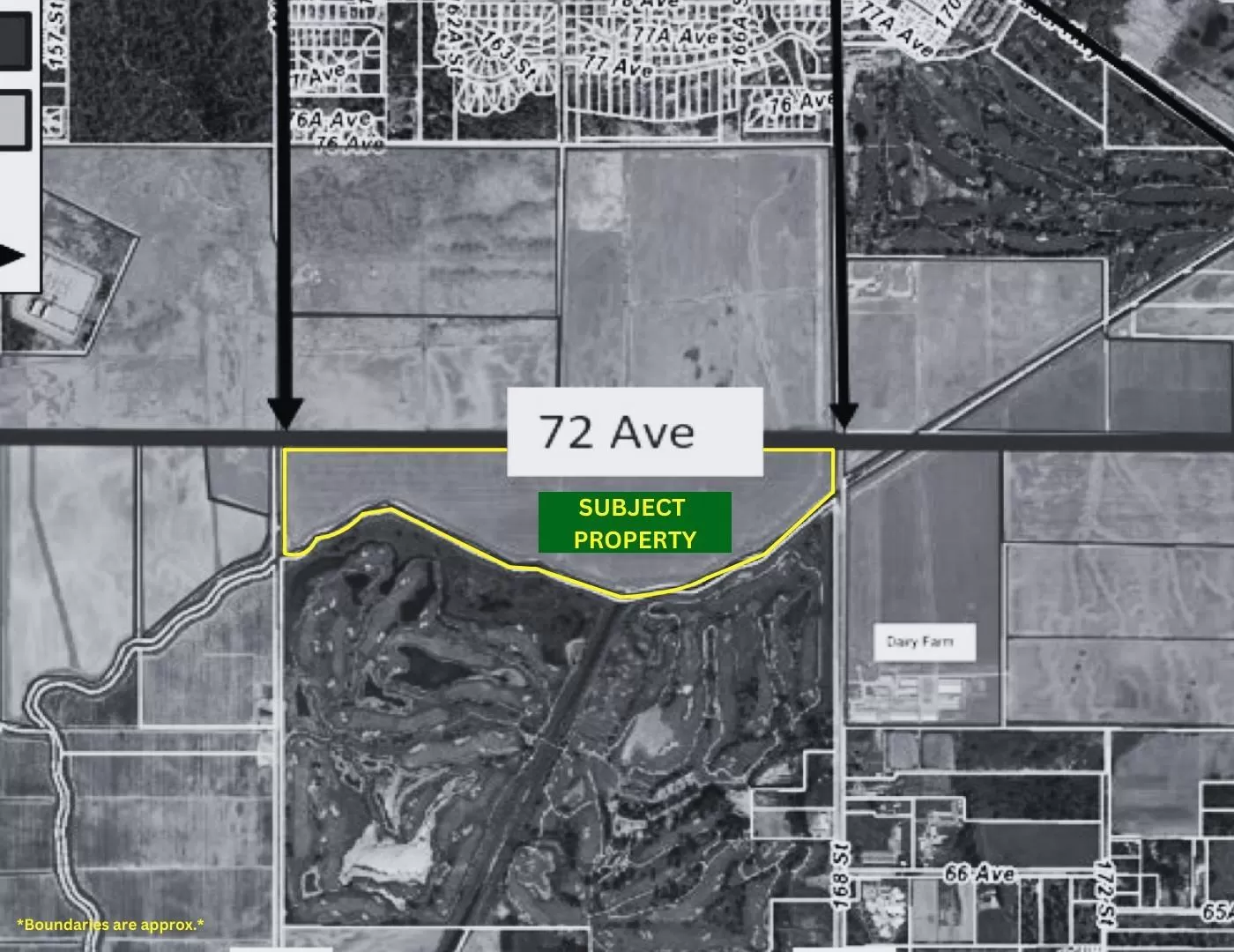 Incredible opportunity for the future here! 126 acres in the very Heart of Surrey with 140 m of frontage along 168th St. This property is prime land that borders famous Northview Golf Course and the Serpentine river. This property stretches from 168th all the way to 160th and will soon have a 4 lane truck route with approx. 1.6 km of frontage along 72nd Ave expansion (Surrey's largest transportation investment in it's history)! It is estimated that 37,000 vehicles will pass by daily!! Think long term for a nursery, garden center, off farm gate sales, or build your estate home with room to park your trucks and toys! Bring your ideas to this generational property that will never be replaced. (id:27476)