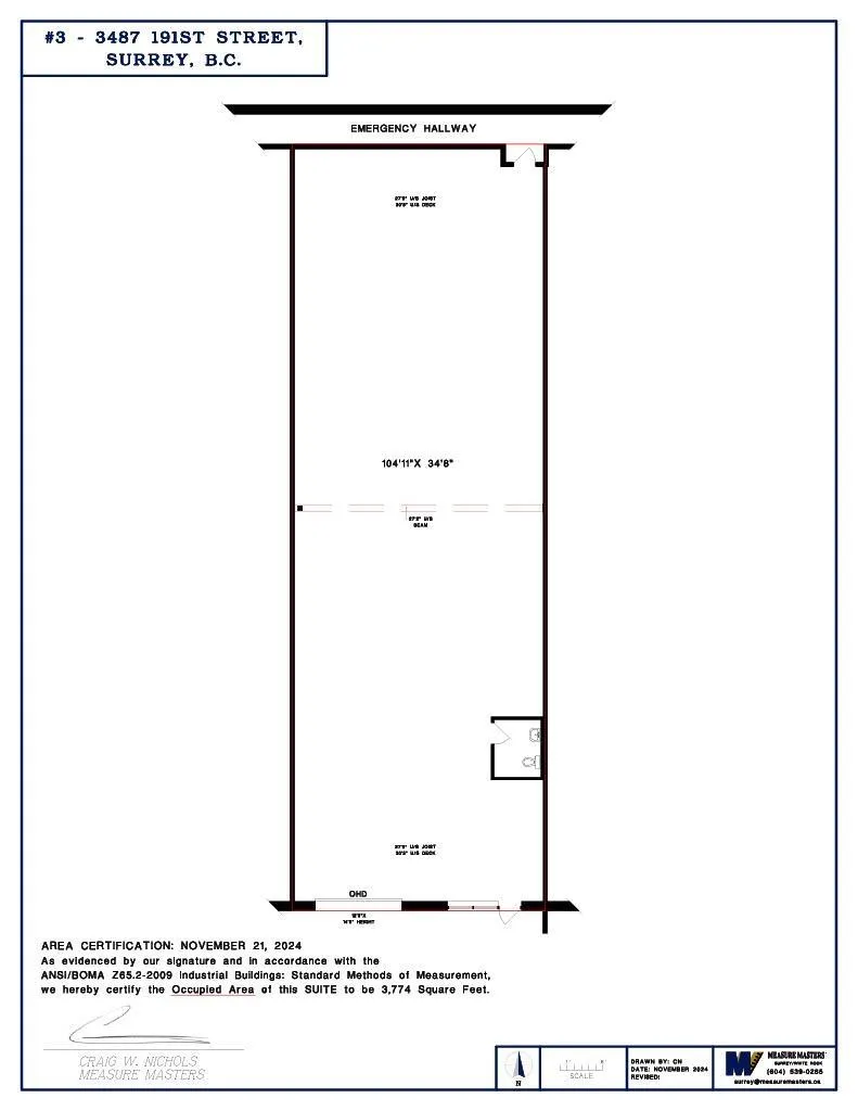 Built in 2019, this fenced and secured warehouse complex is well maintained and centrally located in the highly desirable Campbell Heights Business Park in Surrey, BC. The strata unit features 3,774 SF of designated warehouse space, 120/208 V - 3 phase @ 150 A power, 27'9" clear to the bottom of the roof joists and a 14' high x 12' wide grade level roll up loading door. Highway 10, Highway 15, Highway 99 and the Canada/United States border crossings are only a few short minutes away. The CD zoning allows the property to accommodate a wide variety of light industrial, warehousing, and accessory uses. 7 parking stalls plus a grade loading bay are a bonus for units of this size! Talk to the listing agent regarding outside storage possibilities. The demising wall is now complete and the unit is move in ready. Sorry, no automotive or truck repair / painting businesses. (id:27476)