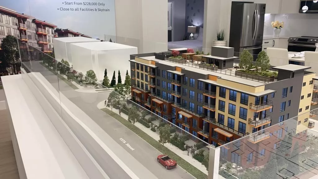 This stunning 1 Bed plus Den, 1-bathroom apartment spanning 640 sqft, being built by Red Brick, is located in the sought-after Surrey central area. The apartment boasts a 66 sqft balcony and one parking stall. It's conveniently located within walking distance to SFU/KPU, Surrey central mall, Skytrain stations, parks, and other amenities. The apartment features an open-concept floor plan with high-quality appliances and finishes. The building offers a rooftop garden, guest house, and gym, as well as a bike room. low deposit. (id:27476)
