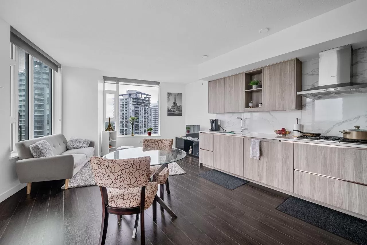 Experience luxury living at Park Boulevard by Concord Pacific! This stunning corner unit offers 2 bedrooms, 2 bathrooms, beautifully finished with high ceilings, stainless steel Bosch appliances, quartz countertops, and custom cabinetry with motion-sensor LED lighting. Enjoy breathtaking sunset views from the 30th floor, with strata fees covering cooking gas and central cooling/heating. The Boulevard Spa boasts a pool, tepidarium, steam room, sauna, experience shower, and sundeck, while additional amenities include a badminton court, fitness center, sports lounge, and on-site business center. Located next to King George SkyTrain Station and minutes from SFU, UBC, KPU, Holland Park, and Surrey Central Mall. (id:27476)