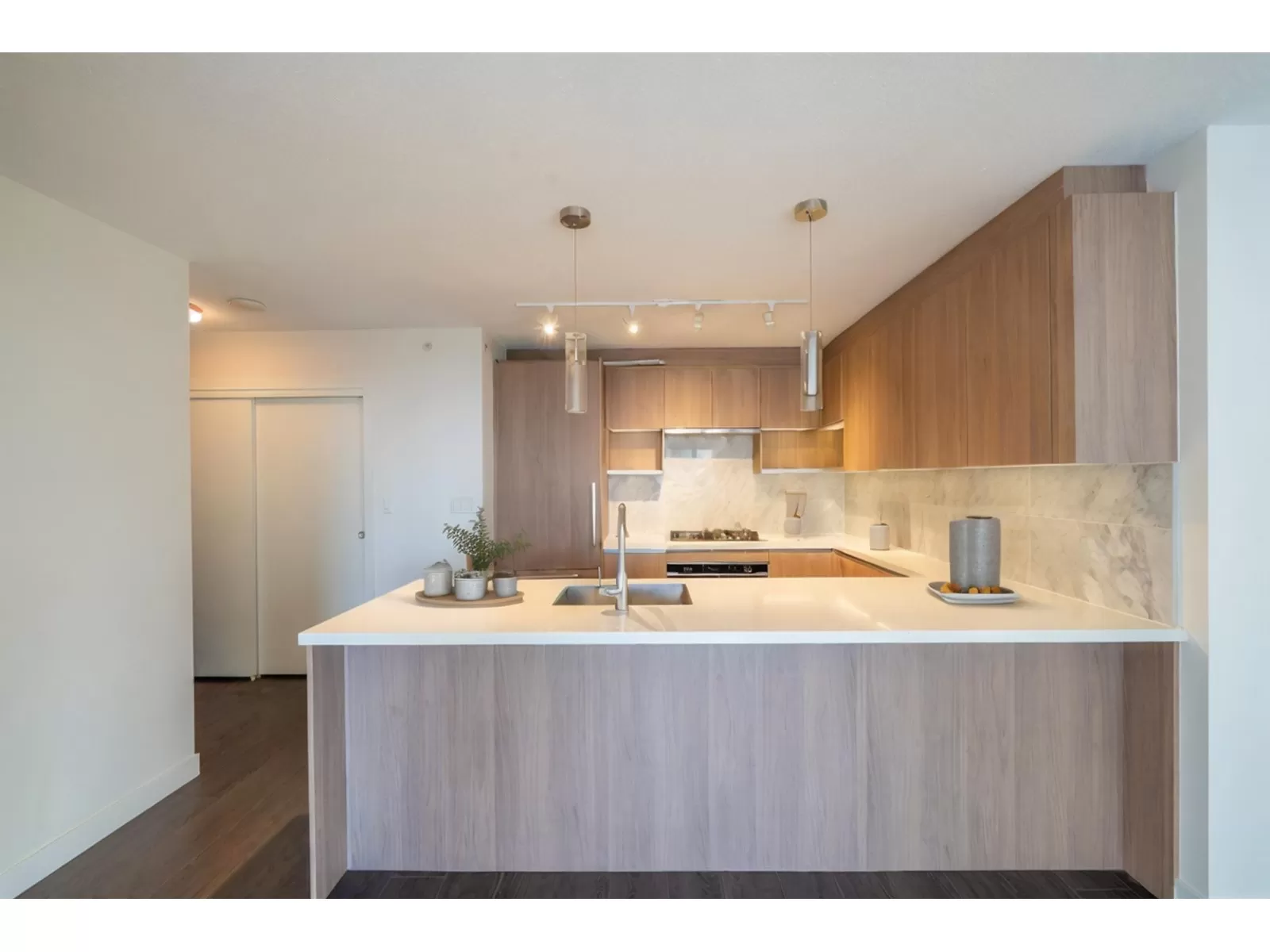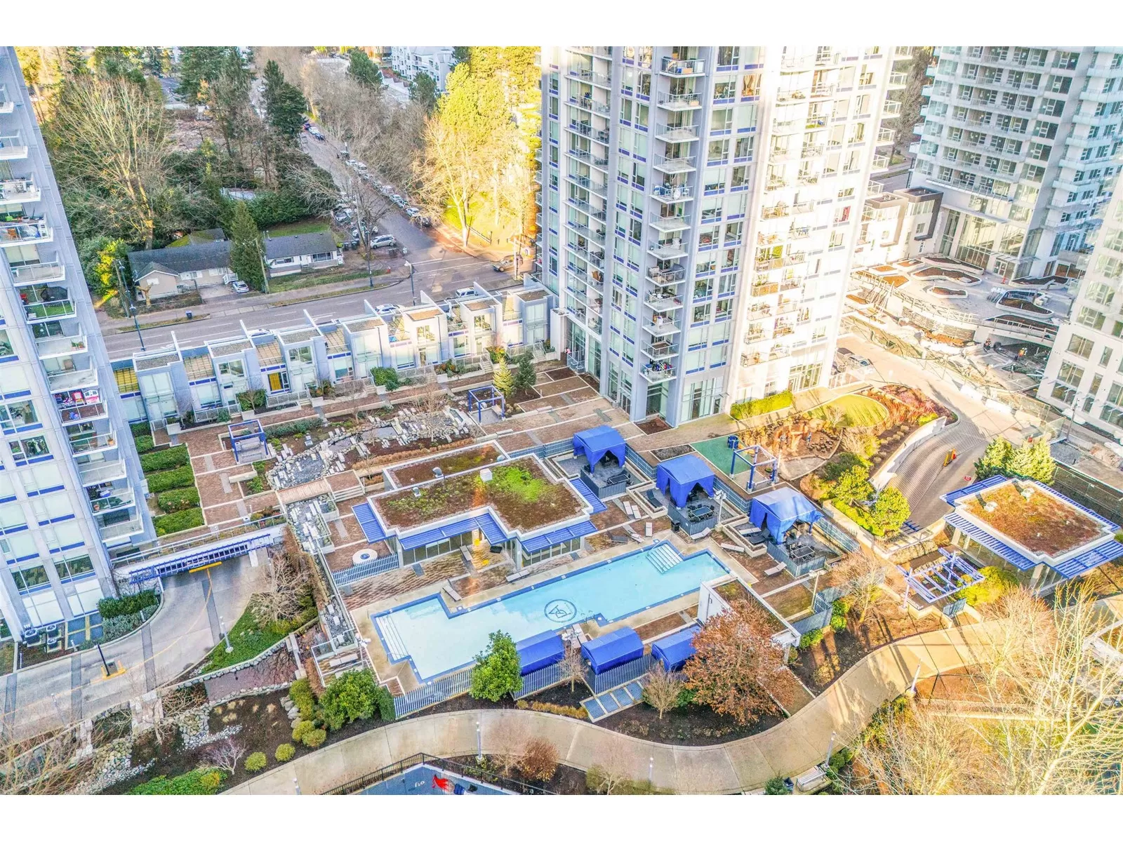 Enjoy ultimate convenience with this stunning 2-bedroom, 2-bathroom corner unit, just a 5-minute walk to the Skytrain station-making it easy to access all of Surrey and Vancouver. Perfectly situated near key amenities like Central Mall, Holland Park, SFU Surrey Campus, City Hall, and the public library. This bright home features big windows filling the space with natural light. The high-end kitchen boasts a marble-style tile backsplash, a European Bloomberg gas cooktop, a built-in oven, and sleek quartz countertops with an under-mounted sink. Within steps, you'll find SFU, Walmart, T&T, dining, shopping, and much more. Unbeatable building amenities include a fitness centre, tennis court, outdoor pool, and rooftop garden-plus concierge services to make life even easier. Includes 1 parking spot and 1 locker. Ideal for young families or savvy investors looking for a prime property in Surrey Central! (id:27476)