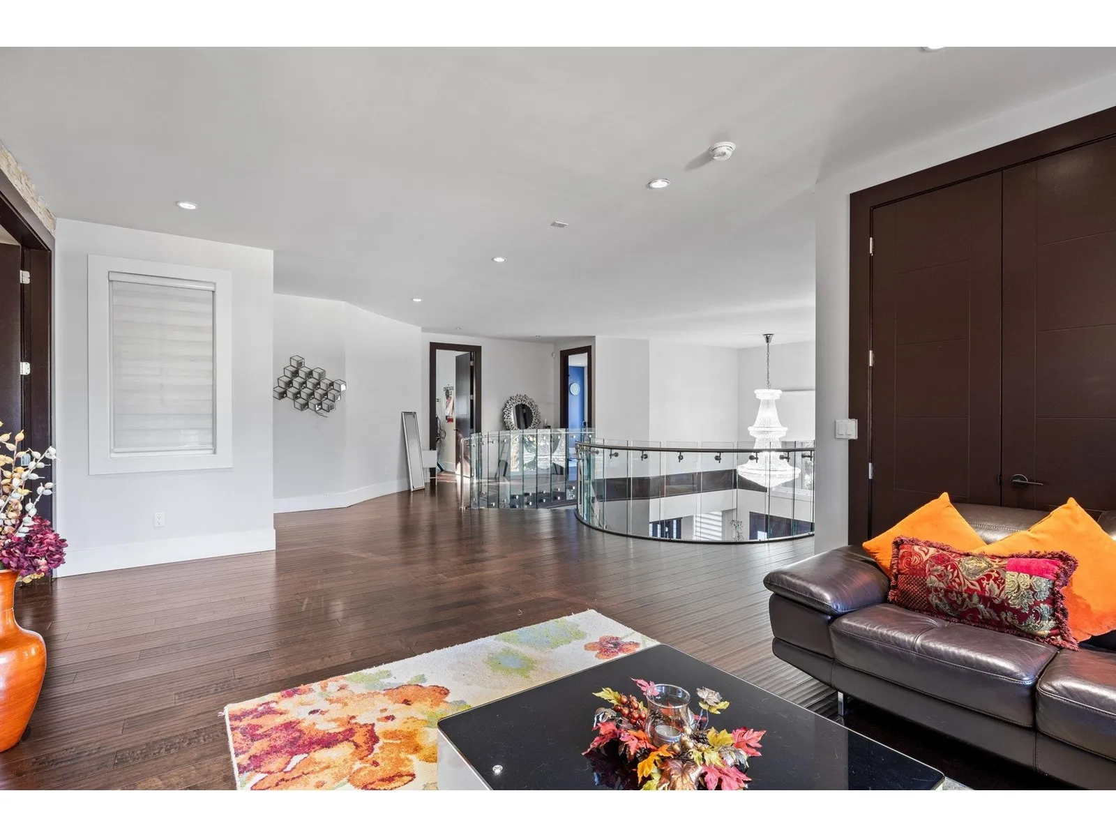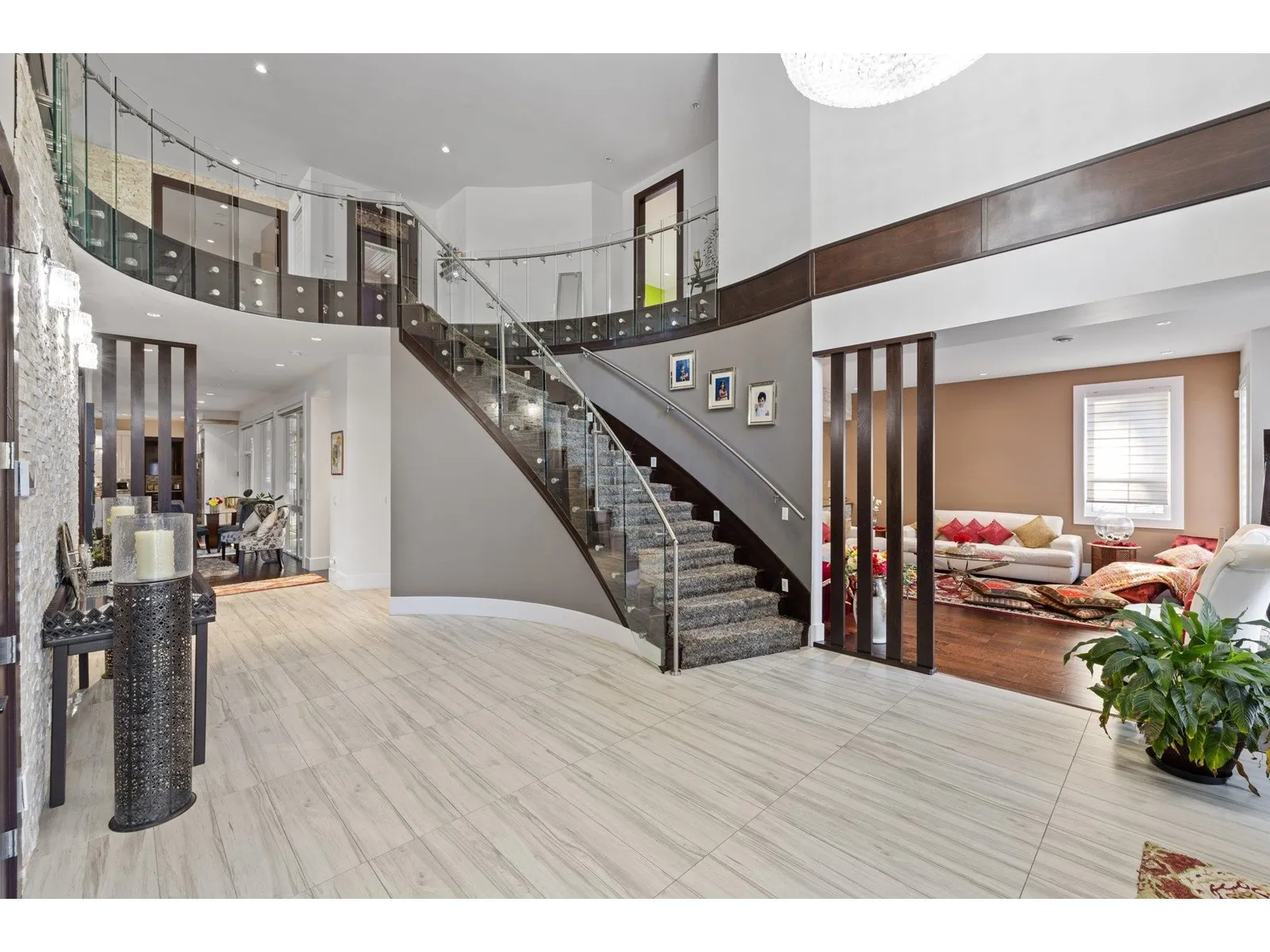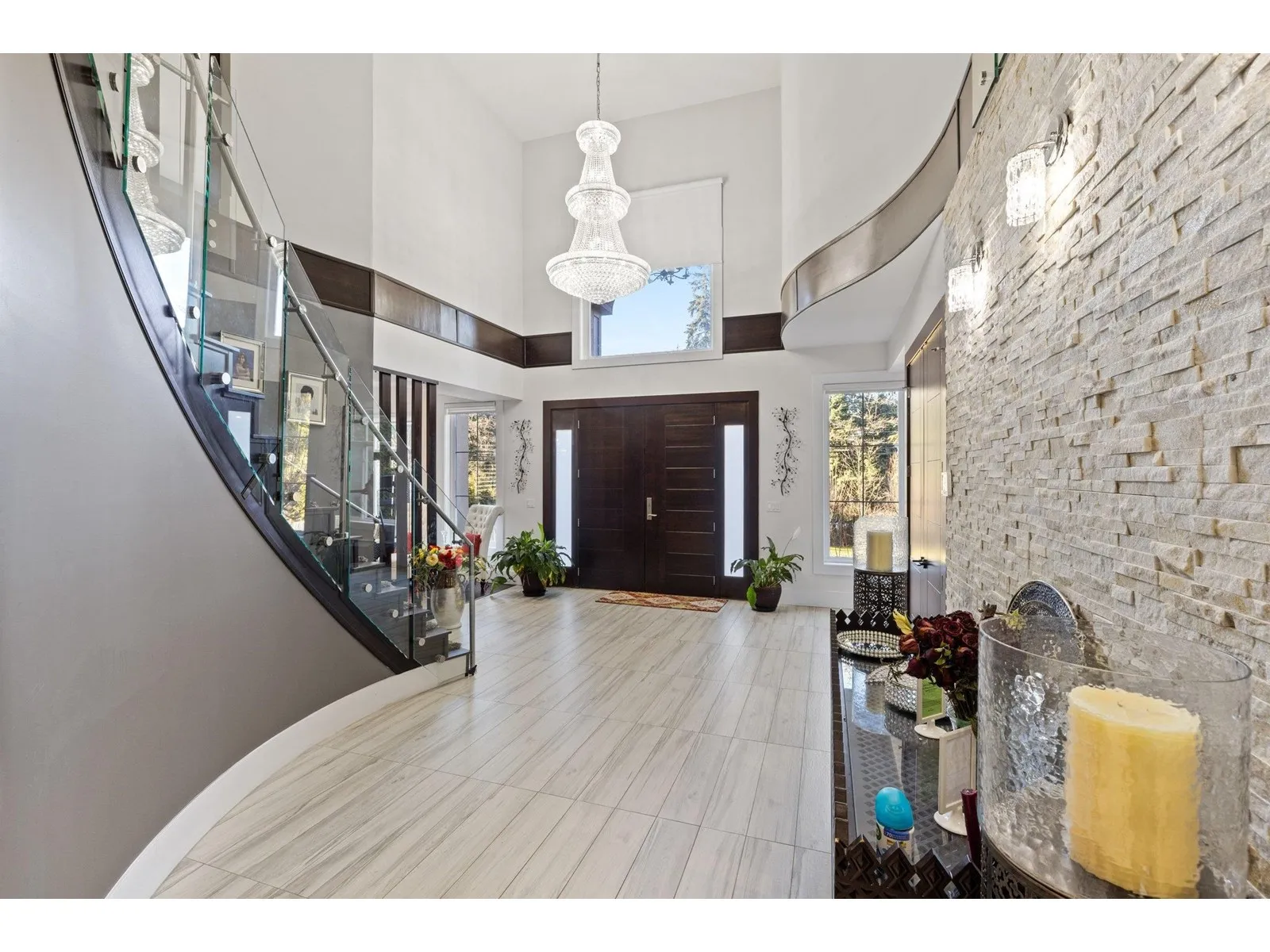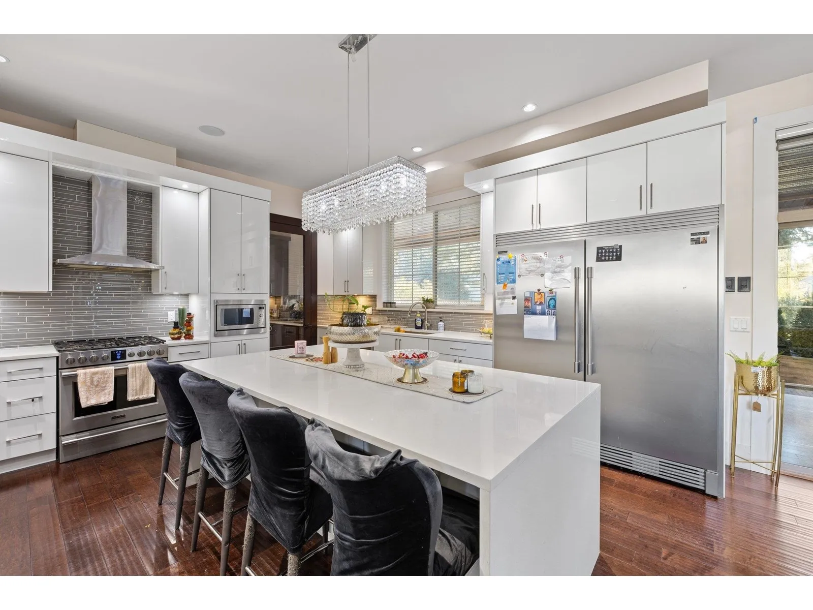 This exquisite 7,000+ sq ft home on a 0.55-acre lot showcases impeccable craftsmanship and high-end finishes. The interior features vaulted ceilings, feature walls with fireplaces, and an open-concept layout. The gourmet kitchen boasts white quartz countertops, a large waterfall island, and a WOK/spice kitchen, flowing into the bright living and dining areas. The main floor includes an office, a bedroom with an ensuite, and a covered deck. Upstairs, a spiral staircase leads to four bedrooms, all with ensuites, including a grand master suite with a private enclosed deck. Additional highlights include a two-bedroom nanny suite and a large solarium upstairs. Located in desirable Elgin Park, this is a must-see! Call today! (id:27476)