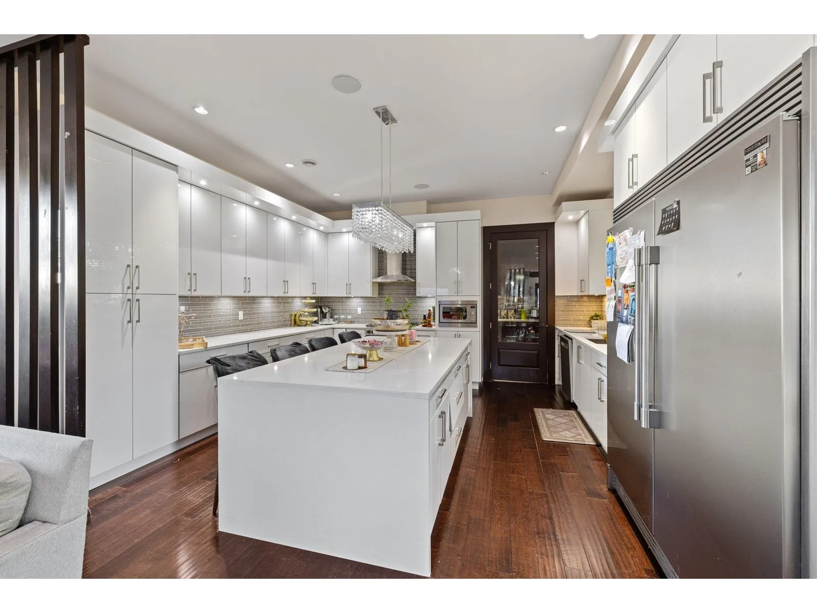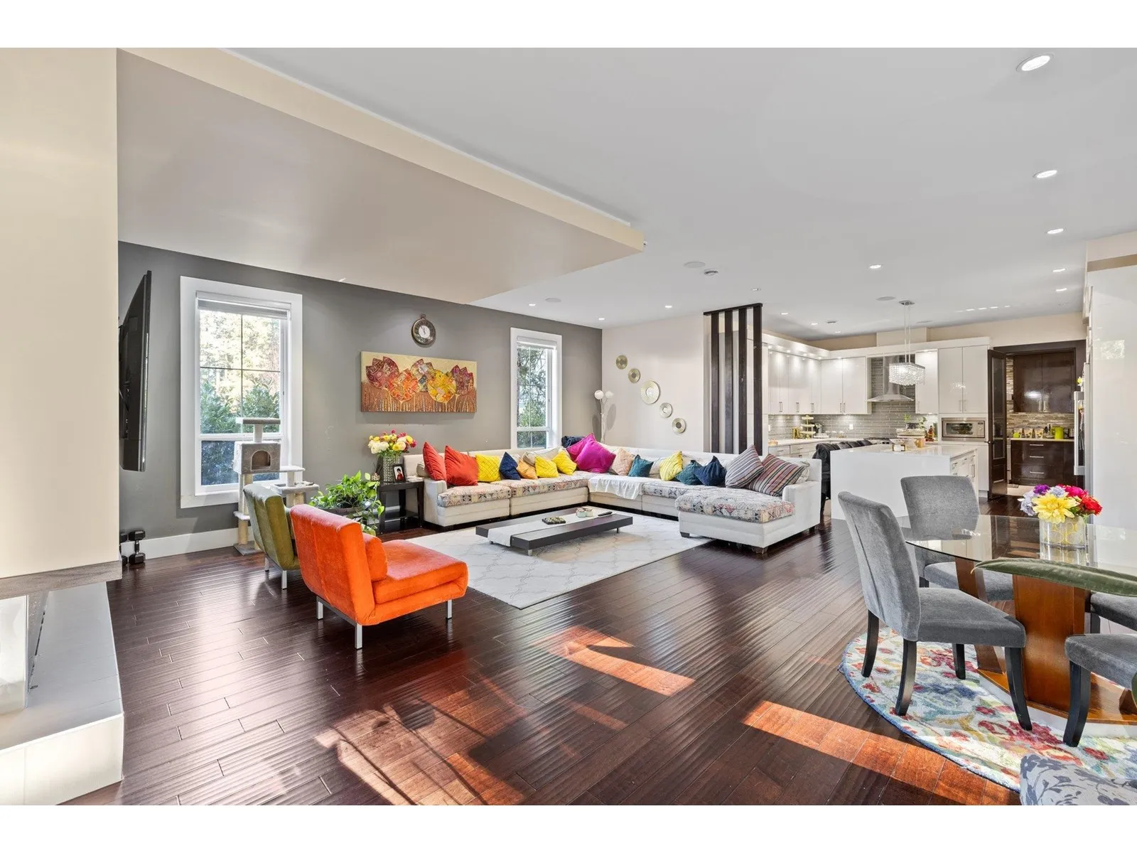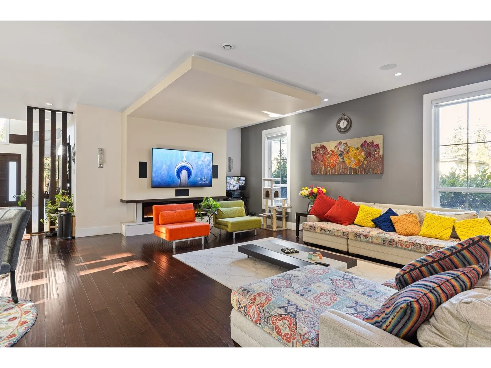 This exquisite 7,000+ sq ft home on a 0.55-acre lot showcases impeccable craftsmanship and high-end finishes. The interior features vaulted ceilings, feature walls with fireplaces, and an open-concept layout. The gourmet kitchen boasts white quartz countertops, a large waterfall island, and a WOK/spice kitchen, flowing into the bright living and dining areas. The main floor includes an office, a bedroom with an ensuite, and a covered deck. Upstairs, a spiral staircase leads to four bedrooms, all with ensuites, including a grand master suite with a private enclosed deck. Additional highlights include a two-bedroom nanny suite and a large solarium upstairs. Located in desirable Elgin Park, this is a must-see! Call today! (id:27476)