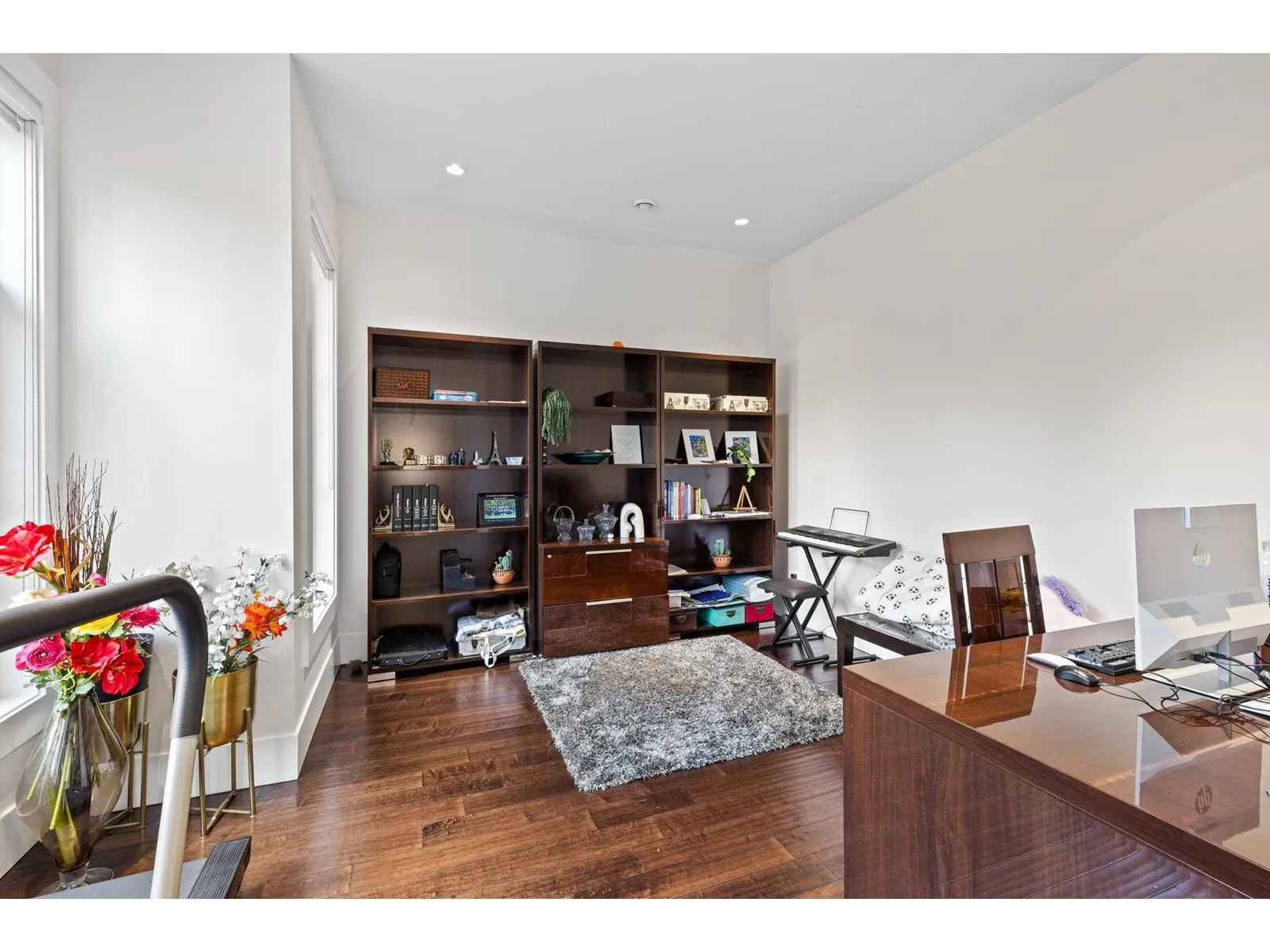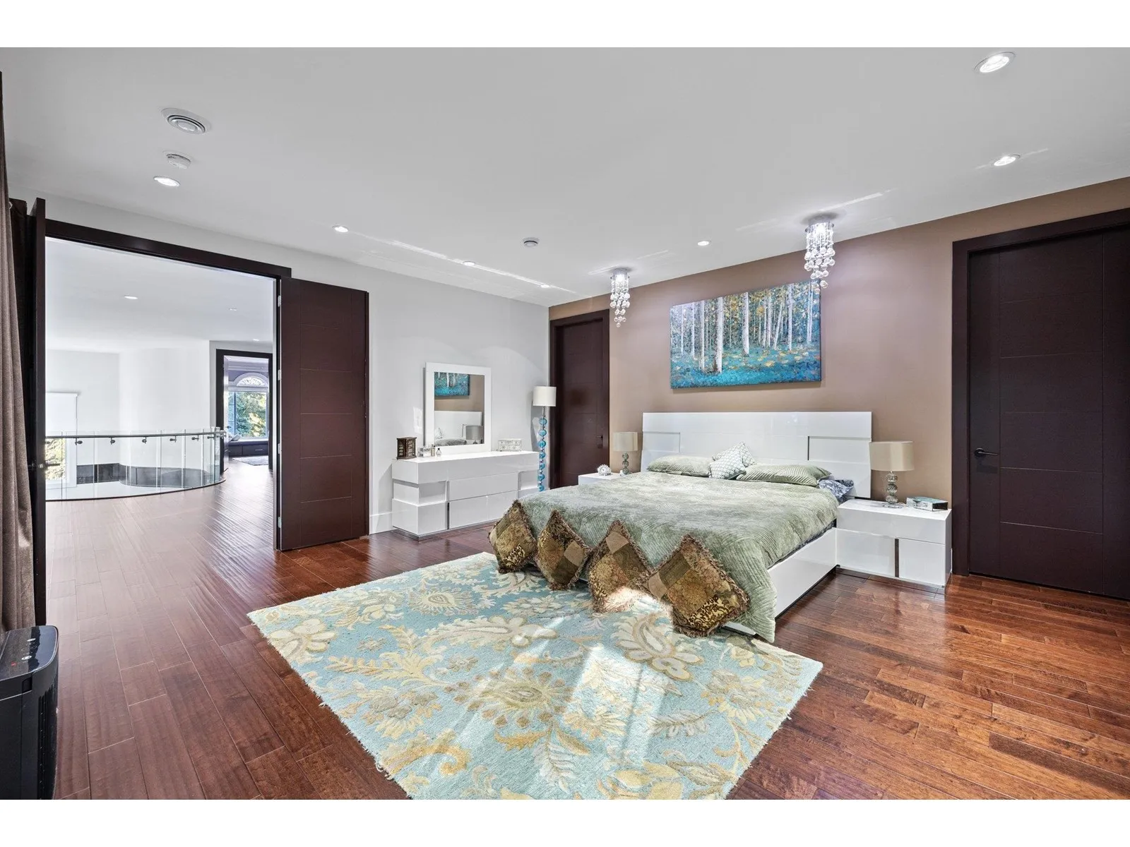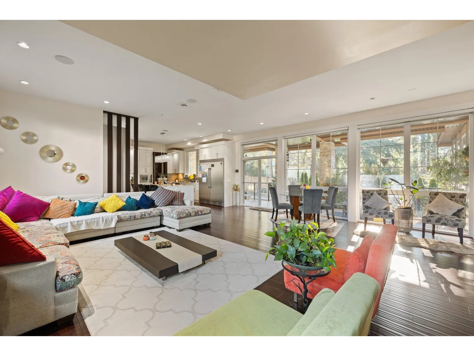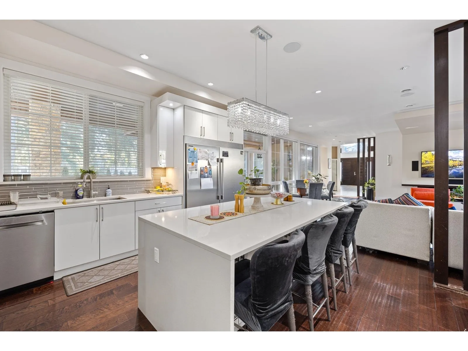This exquisite 7,000+ sq ft home on a 0.55-acre lot showcases impeccable craftsmanship and high-end finishes. The interior features vaulted ceilings, feature walls with fireplaces, and an open-concept layout. The gourmet kitchen boasts white quartz countertops, a large waterfall island, and a WOK/spice kitchen, flowing into the bright living and dining areas. The main floor includes an office, a bedroom with an ensuite, and a covered deck. Upstairs, a spiral staircase leads to four bedrooms, all with ensuites, including a grand master suite with a private enclosed deck. Additional highlights include a two-bedroom nanny suite and a large solarium upstairs. Located in desirable Elgin Park, this is a must-see! Call today! (id:27476)