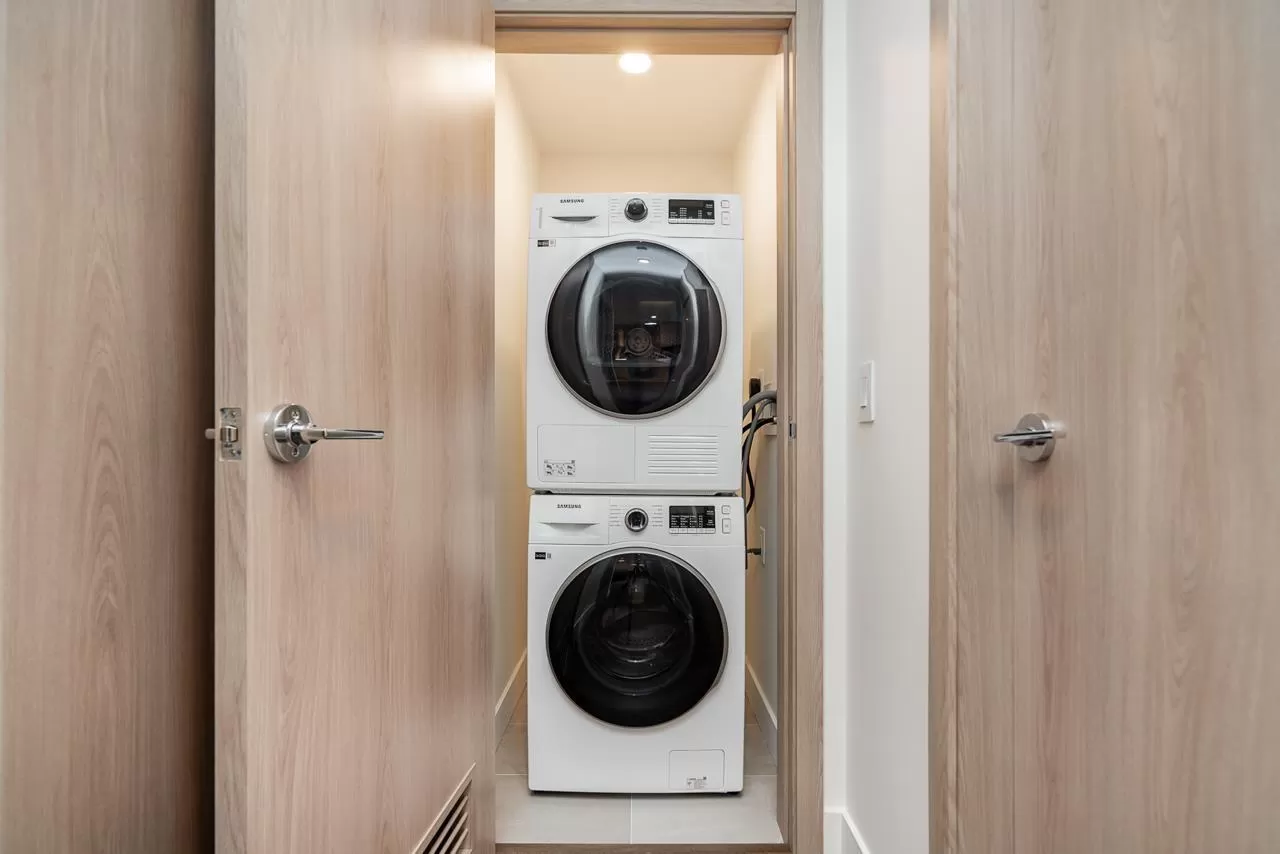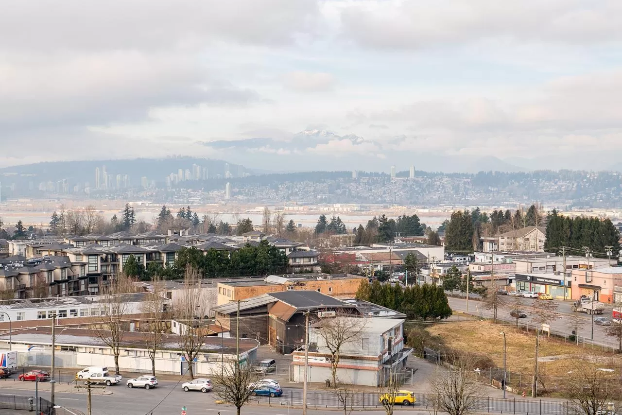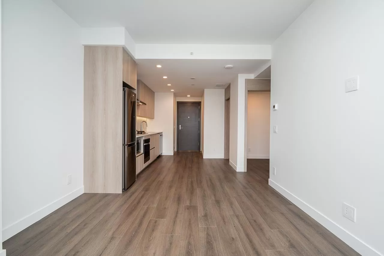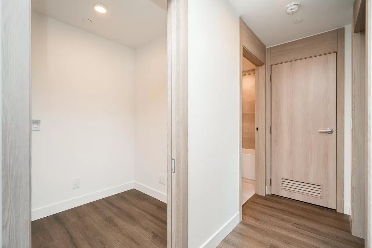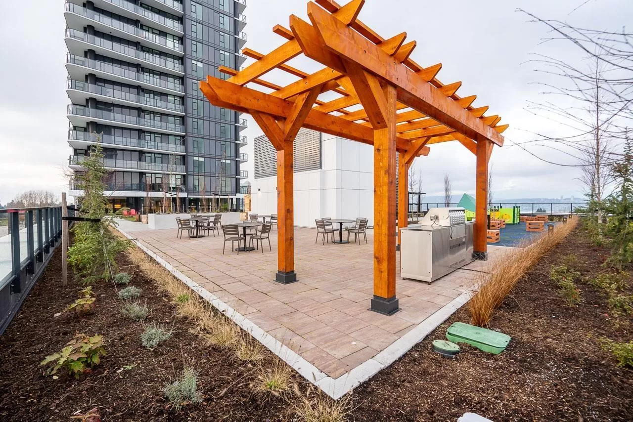 Modern Living at The Grand on King George. Stylish 1-bedroom + den, 1-bathroom condo on the 8th floor with 567 sqft of open living space and a 93 sqft balcony. Features include custom millwork doors, illuminated closet organizers, CENTRAL HEATING & COOLING, Wi-Fi-enabled Samsung appliances, GAS cooktops (included in strata fees), and efficient kitchen cabinet organizers. Enjoy 23,000 sqft of premium amenities: a private off-leash skypark, state-of-the-art fitness centre, VR room, outdoor BBQ and park area, playground, and 24/7 concierge. Conveniently located above five floors of commercial space with coffee shops, medical offices, and daycare at your doorstep. Less than 5 minutes' walking distance from Gateway Skytrain Station, schools, and easy access to Highway 1. (id:27476)