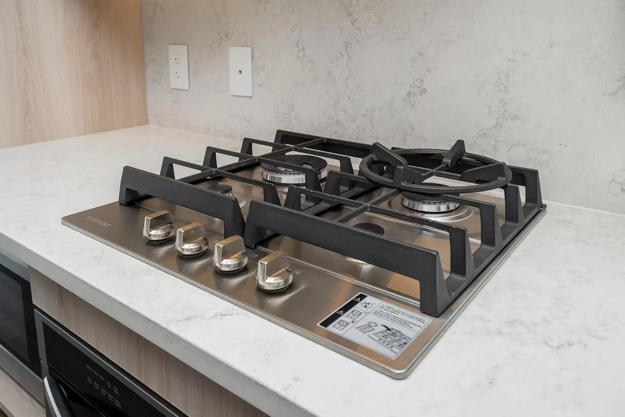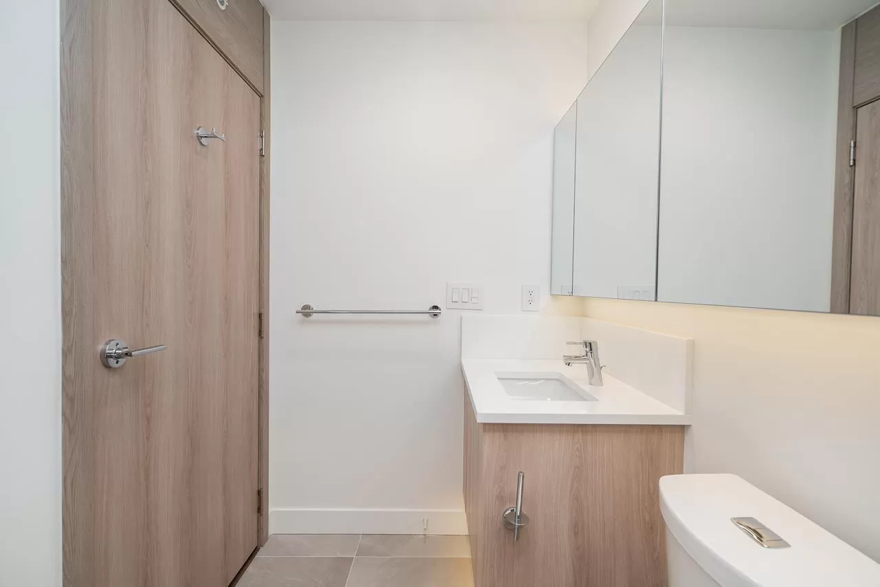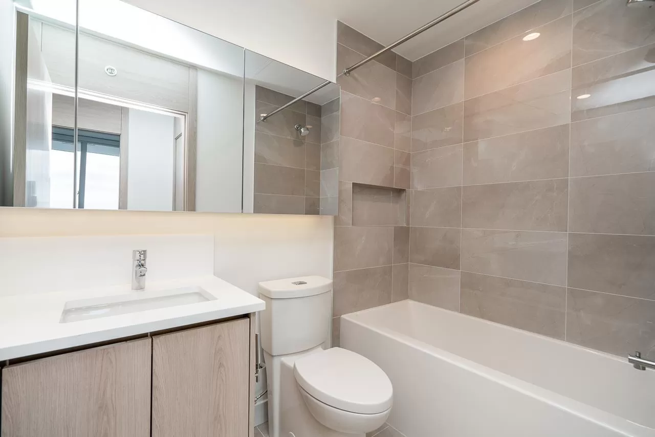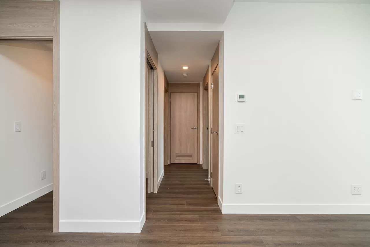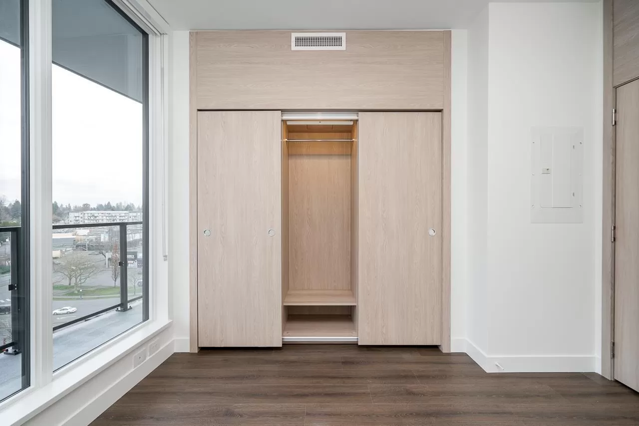 Modern Living at The Grand on King George. Stylish 1-bedroom + den, 1-bathroom condo on the 8th floor with 567 sqft of open living space and a 93 sqft balcony. Features include custom millwork doors, illuminated closet organizers, CENTRAL HEATING & COOLING, Wi-Fi-enabled Samsung appliances, GAS cooktops (included in strata fees), and efficient kitchen cabinet organizers. Enjoy 23,000 sqft of premium amenities: a private off-leash skypark, state-of-the-art fitness centre, VR room, outdoor BBQ and park area, playground, and 24/7 concierge. Conveniently located above five floors of commercial space with coffee shops, medical offices, and daycare at your doorstep. Less than 5 minutes' walking distance from Gateway Skytrain Station, schools, and easy access to Highway 1. (id:27476)
